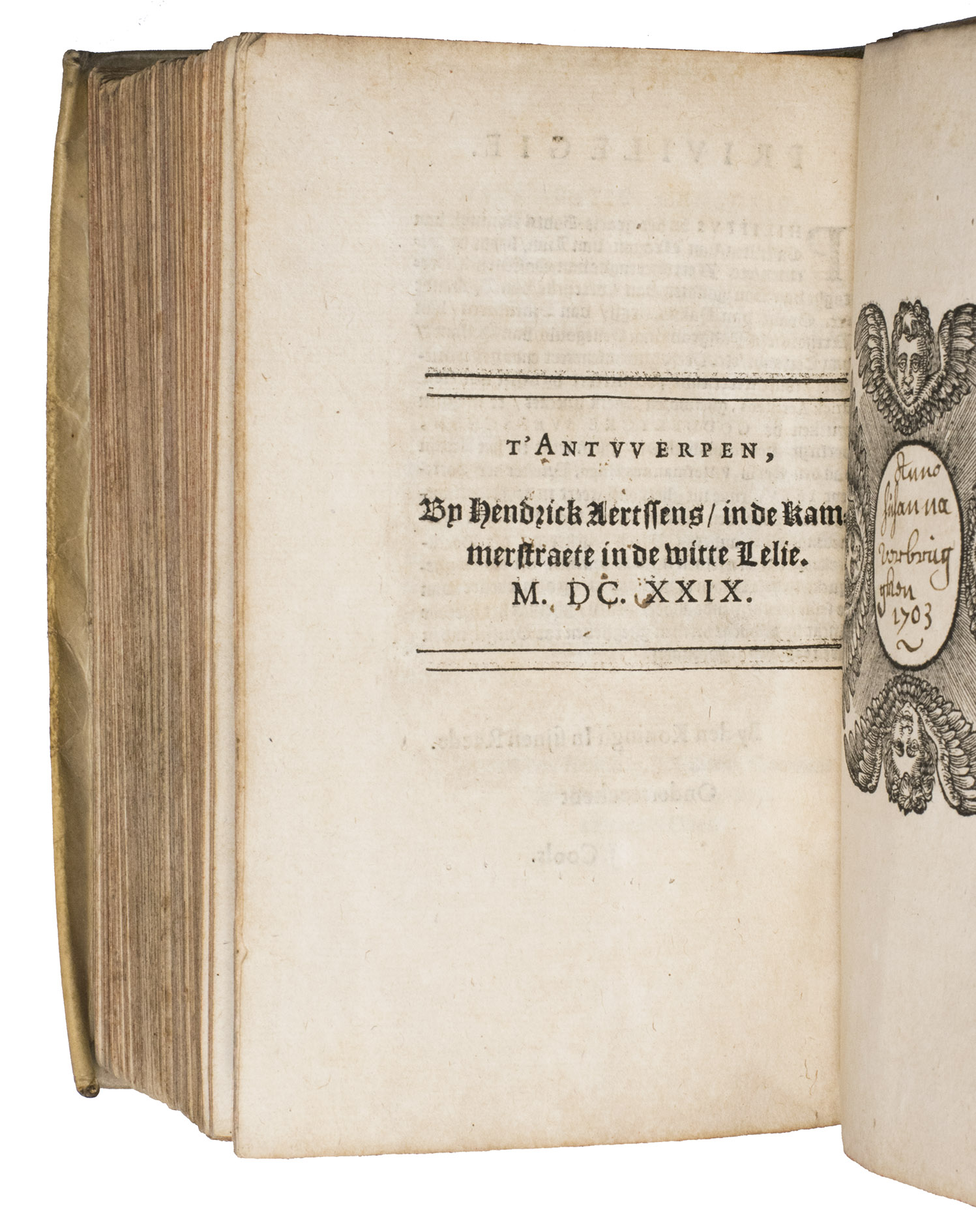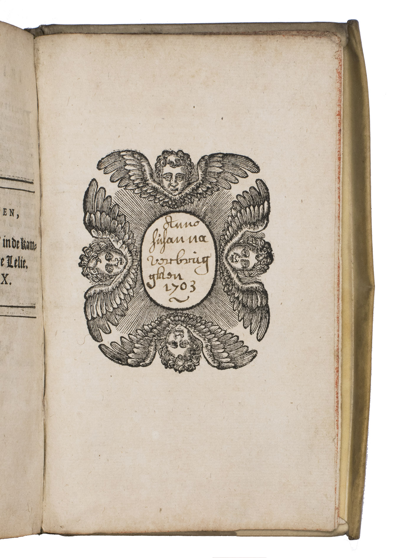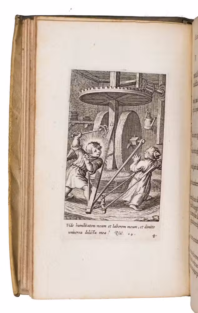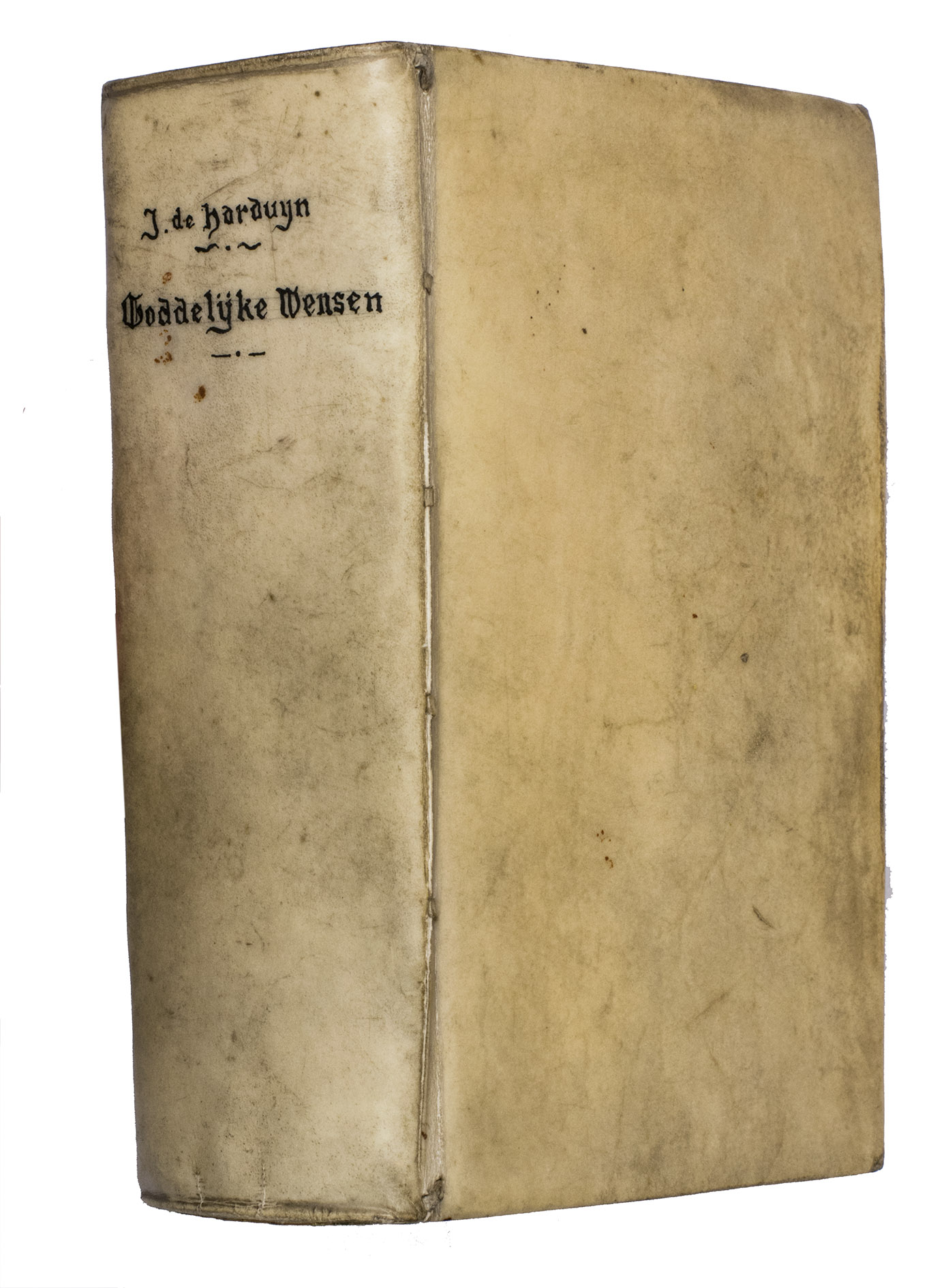 With the ownerships entry of Susanna Verbrugghen, dated 1703, in the printer's device on the final page. The vellum is slightly soiled. Internally very clean, with only some browning on the final few leaves and an occasional stain. Otherwise in very good condition. Landwehr, Emblem & Fable books, 357; Nijhoff, Cat. 677 (1946), no. 670 ("very fine copy"; price f. 75!); STCV 3136615; De Vries, no. 129; USTC 1002001; cf. O. Dambre, Justus de Harduyn. Een biografische en letterkundige studie (1926); id., Nabeschouwingen over Pia Desideria en Godeelycke wenschen, in: Spiegel der Letteren, 2 (1958), pp. 59-65; Insolera, La spiritualité en images aux Pays-Bas Méridionaux dans les livres des 16e et 17e s. (1996), pp. 170-176; A. Raspa, Arwaker, Hugos Pia Desideria and Protestant Poetics, in: Renaissance and Reformation, 24/2 (2000), pp. 63-74.