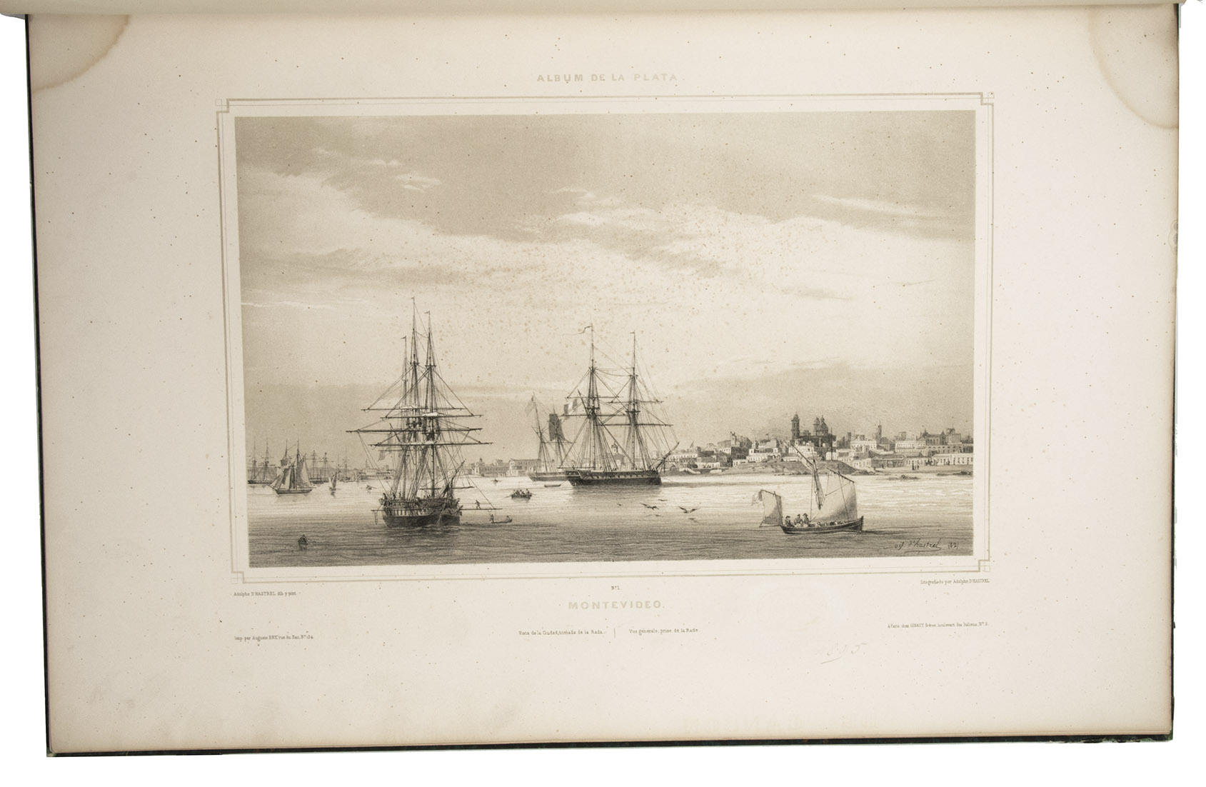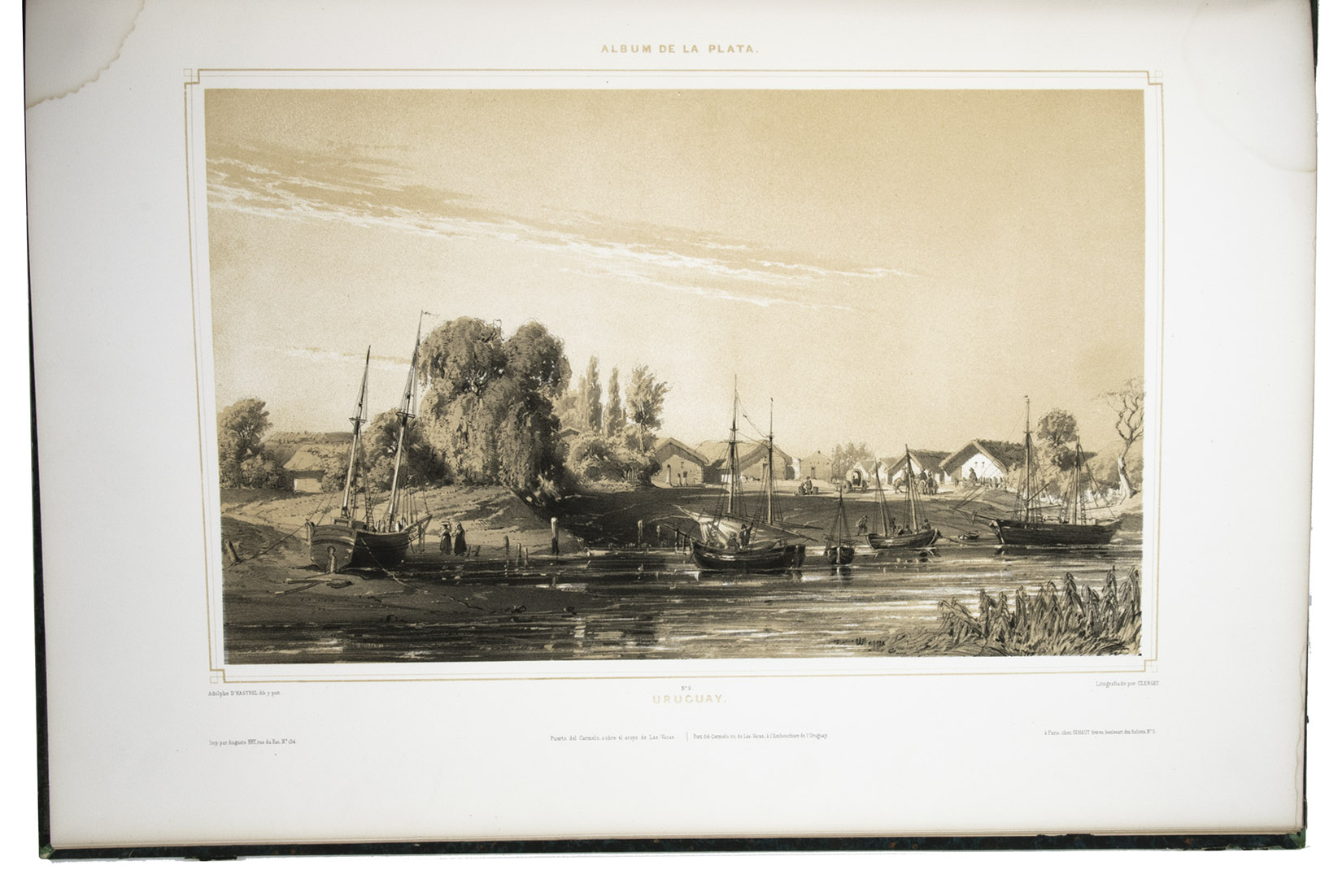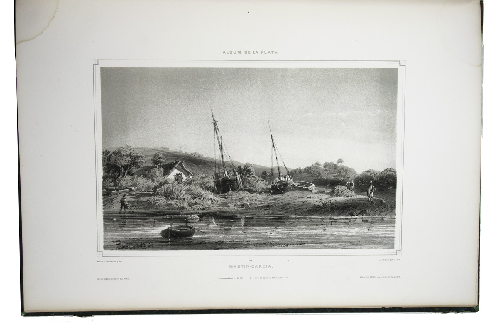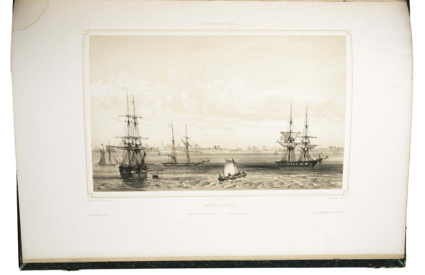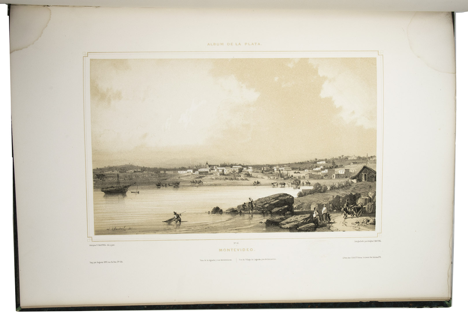 Beautiful album, containing a series of 12 numbered tinted lithographs of sights in Argentina and Uruguay, including many ships and harbours, drawn by Adolphe d'Hastrel and lithographed by D'Hastrel himself, Cicéri, Muller, Bayot, Sabatier and Clerget. Each has a caption in Spanish and French. Adolphe d'Hastrel (1805-1874), born in Alsace, spent his youth in Tours and surroundings. He started drawing at an early age, concentrating on the Alsacian landscapes. Later he concentrated on America. The three plates that D'Hastrel lithographed himself are signed and numbered in the stone, 41-43. This series of lithographs is of great ethnological interest.