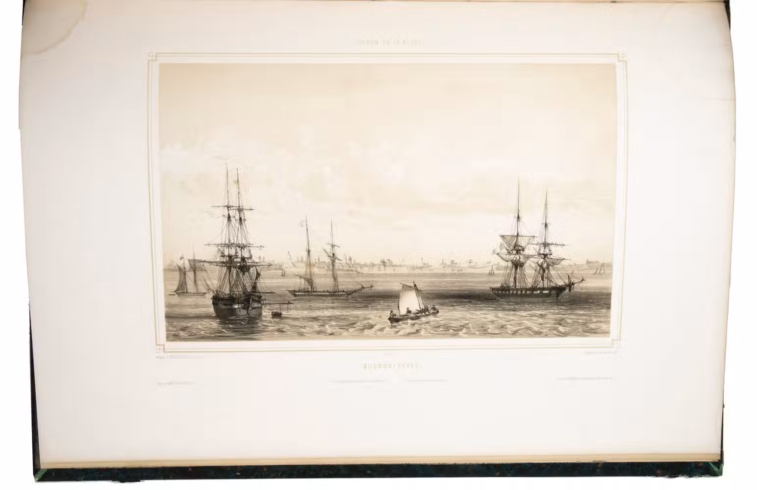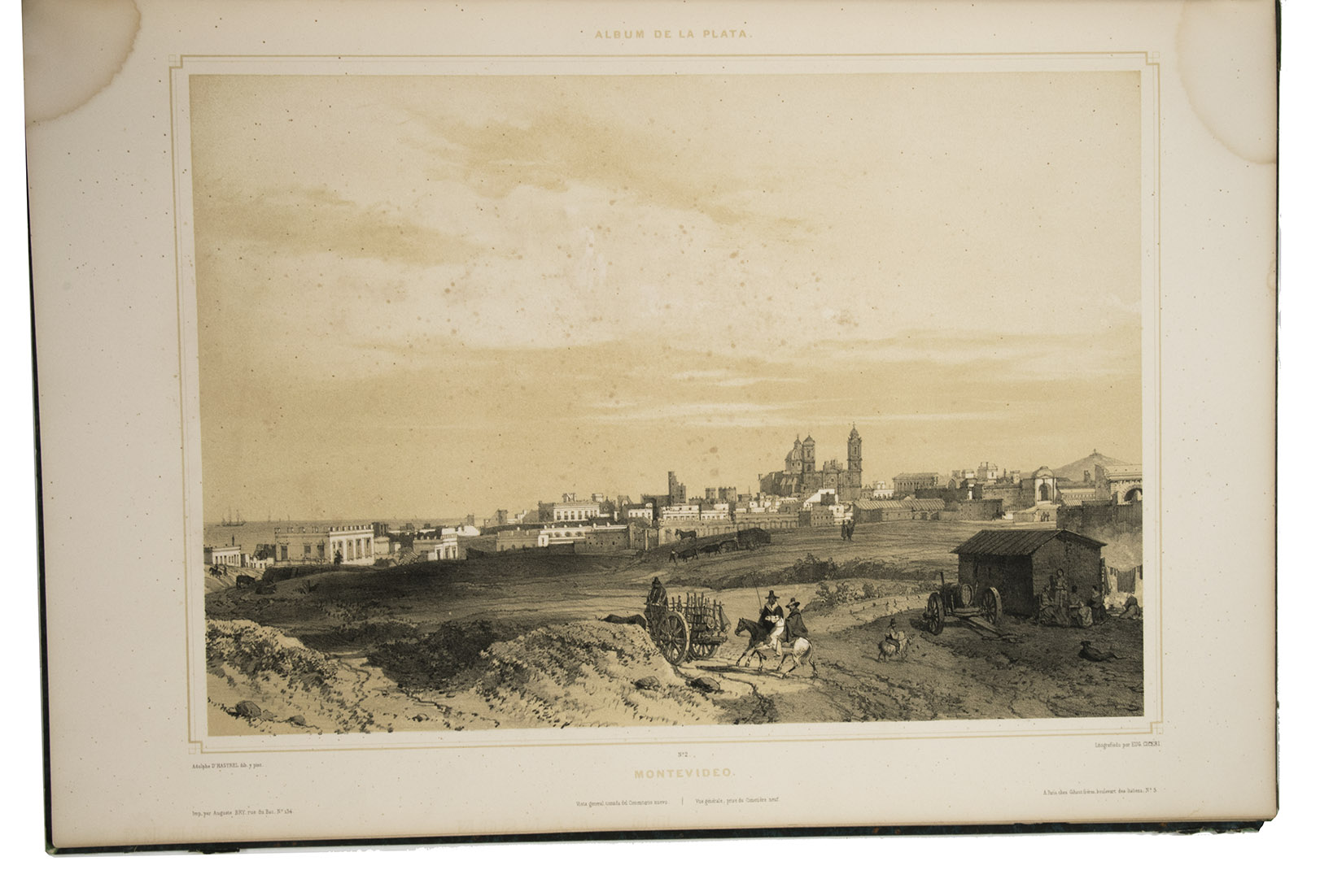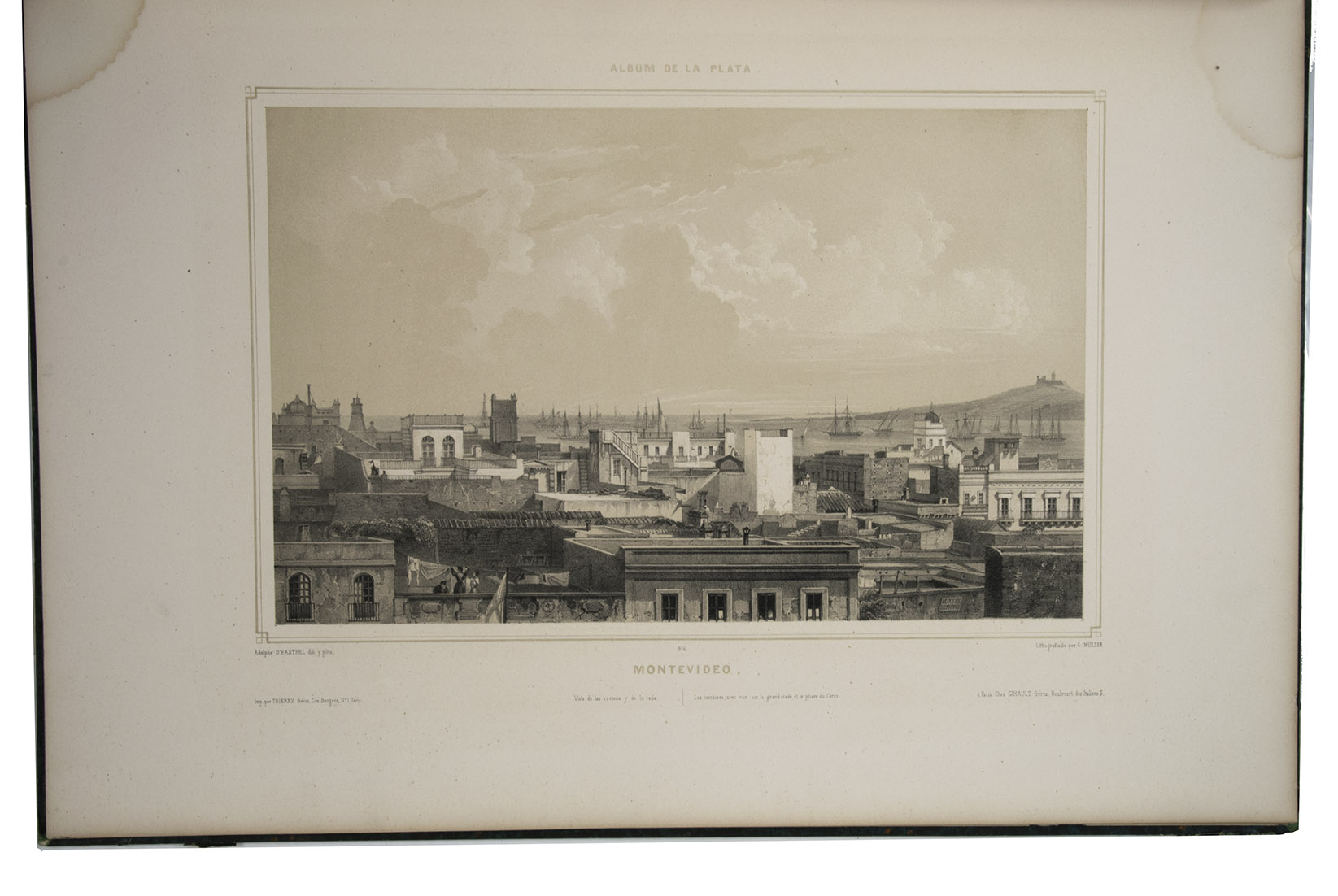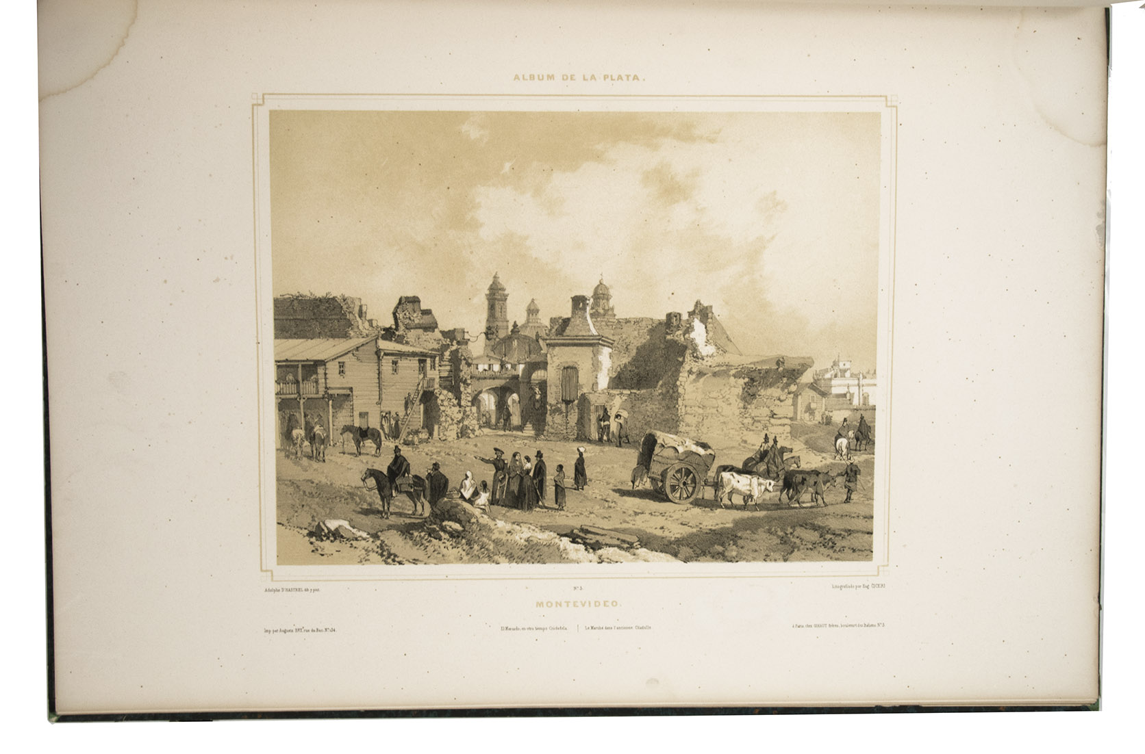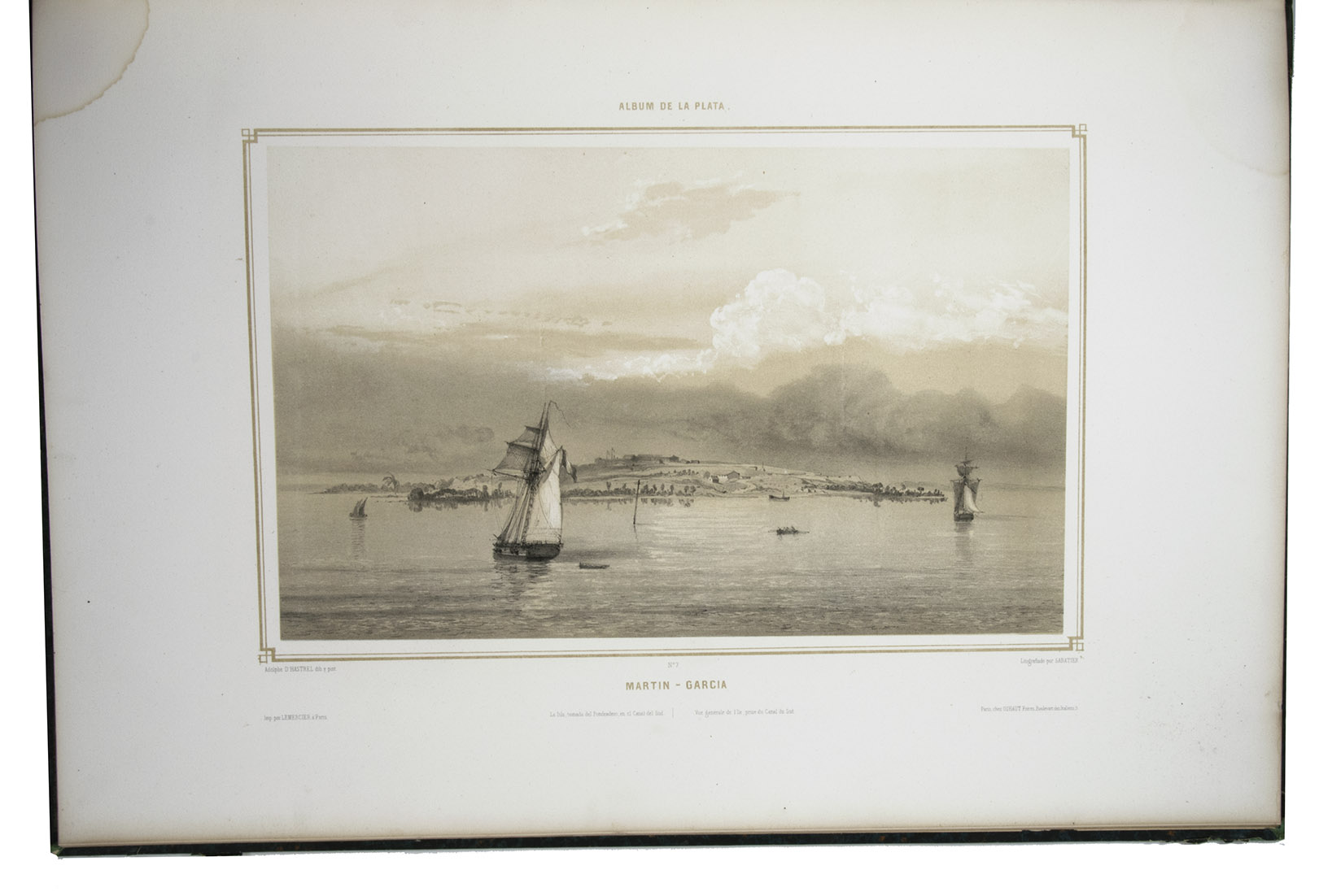 Beautiful album, containing a series of 12 numbered tinted lithographs of sights in Argentina and Uruguay, including many ships and harbours, drawn by Adolphe d'Hastrel and lithographed by D'Hastrel himself, Cicéri, Muller, Bayot, Sabatier and Clerget. Each has a caption in Spanish and French. Adolphe d'Hastrel (1805-1874), born in Alsace, spent his youth in Tours and surroundings. He started drawing at an early age, concentrating on the Alsacian landscapes. Later he concentrated on America. The three plates that D'Hastrel lithographed himself are signed and numbered in the stone, 41-43. This series of lithographs is of great ethnological interest.