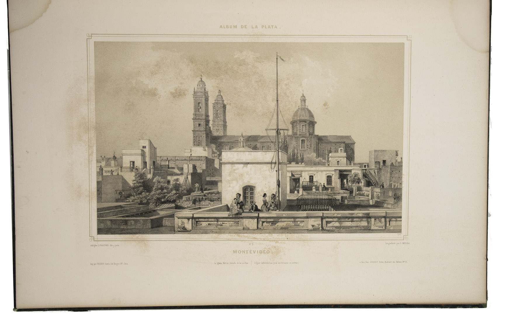 Paris, Gihau(l)t frères (printed by Auguste Bry, Lemercier and Thierry), [1846]. 1mo (55 x 38 cm). 12 tinted lithographs (22 x 35 cm), depicting views in and around Montevideo, Buenos Aires, etc. Mid-19th-century binding, rebacked in green morocco. 12 lithographed plates.