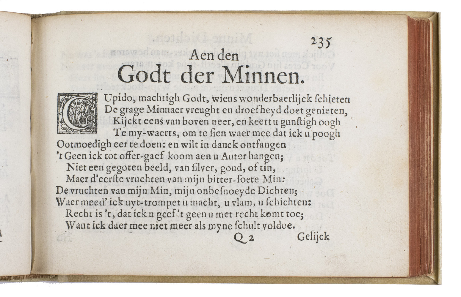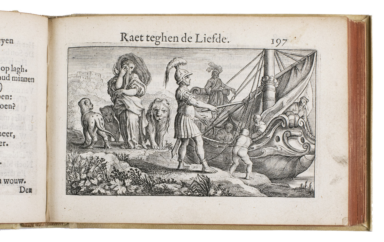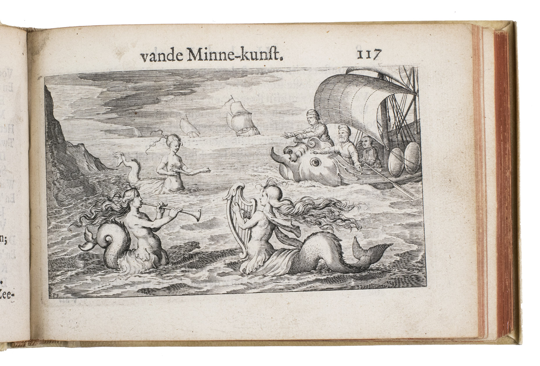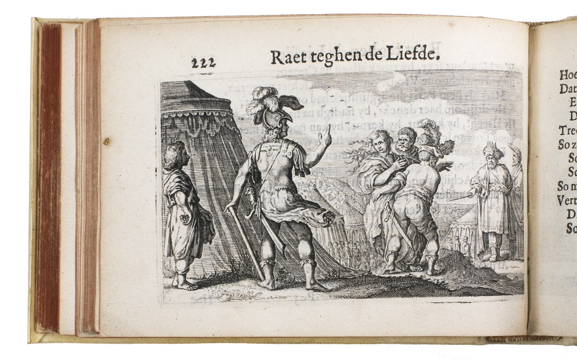 The first contains a poetic adaptation of Ovid's Ars Amatoria, beautifully illustrated with 12 plates, including the frontispiece with the motto "sine Cerere et Baccho friget Venus", by one of the gifted artists of the Golden Age of Dutch book illustration, Pieter Serwouters (1586-1657).
