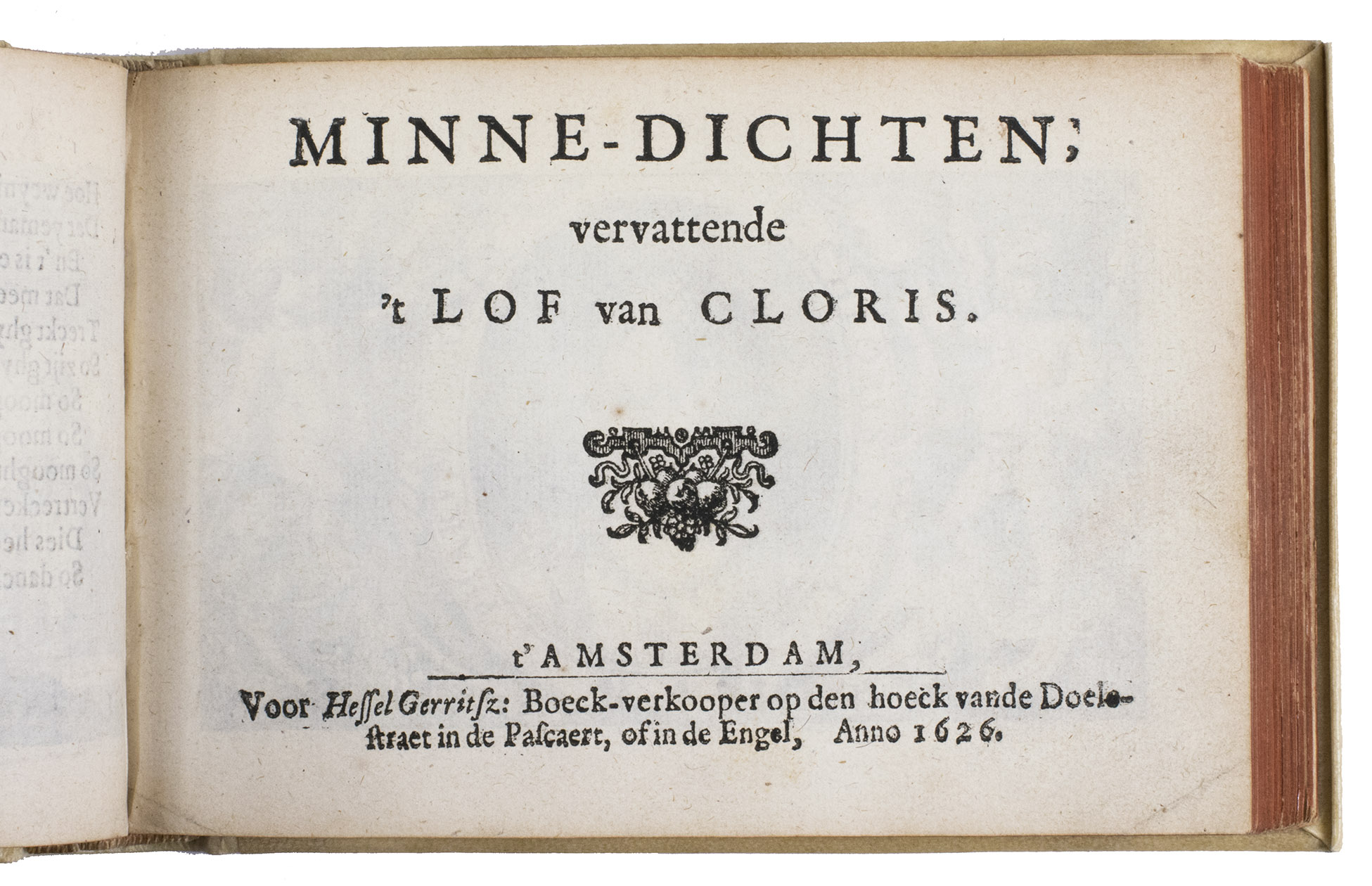 The third part forms a collection of love songs inspired by the Canzonieri of Bembo, the Amours of Ronsard, the love poems of Ovid and Horace, but also contains much original work, and includes a long laudatory poem to the nymph Cloris, with a beautiful portrait by Serwouters.