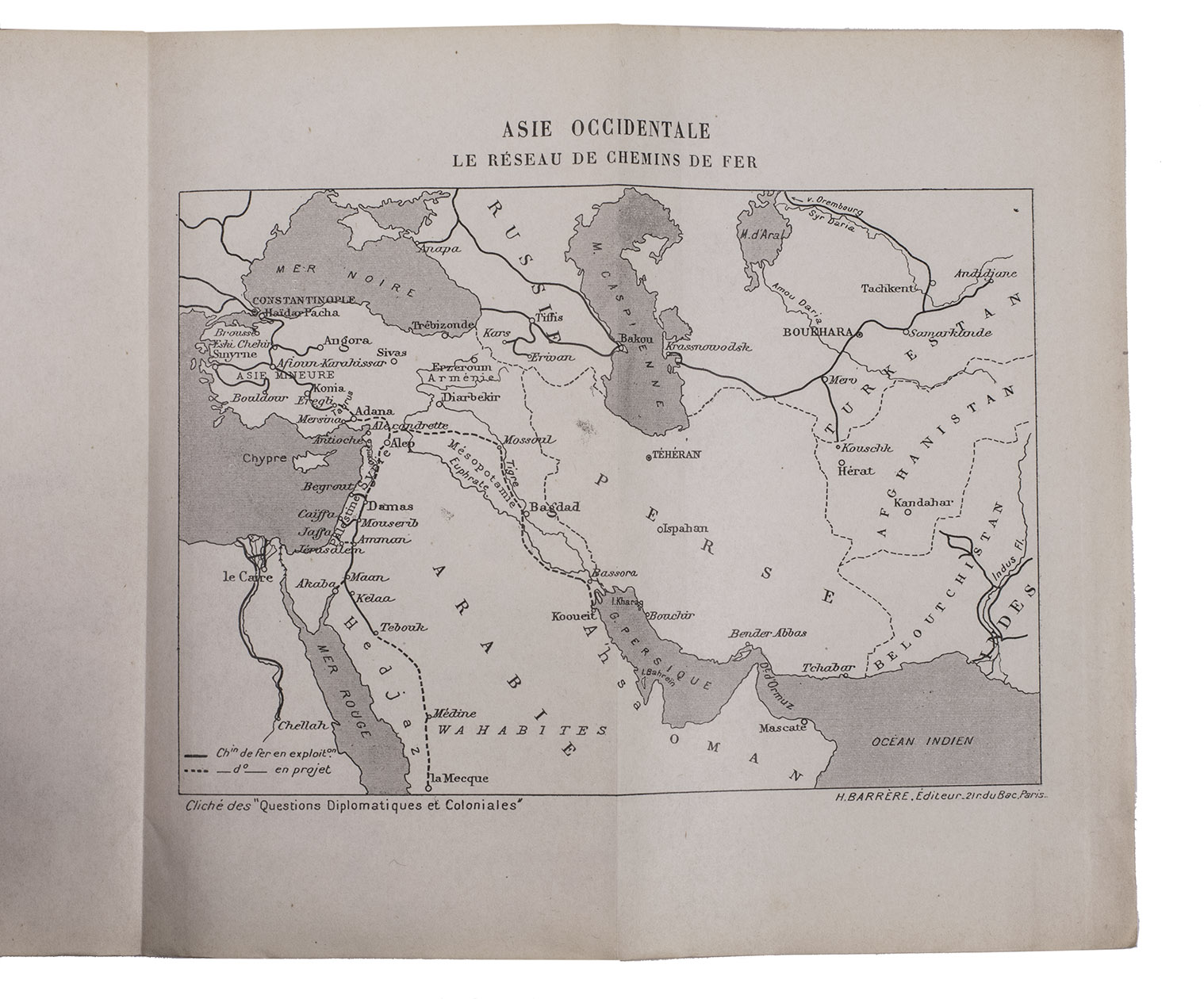 An overview of the political situation in all the countries from the Bohemian mountains to the Arabian Gulf, published just before the onset of World War I. With a preface by the French historian Anatole Leroy-Beaulieu. The part on the Middle East is divided into 3 chapters covering Western Asia, Ottoman Asia and the Bagdad railway. The railway was built from 1903 to 1940 to connect Berlin with the (then) Ottoman Empire city of Baghdad, from where the Germans wanted to establish a port in the Gulf.