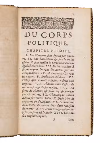The English original of De corpore politico circulated in the early 1650s, while only two French editions appeared: the first in 1652, followed by this Elzevier reprint of 1653. The present copy comes from the library of Henry Pelham (1694-1754), a leading British Whig statesman and Prime Minister from 1743 until his death, who was instrumental in stabilising national finances and consolidating governmental authority during a pivotal period in mid-18th-century Britain.
