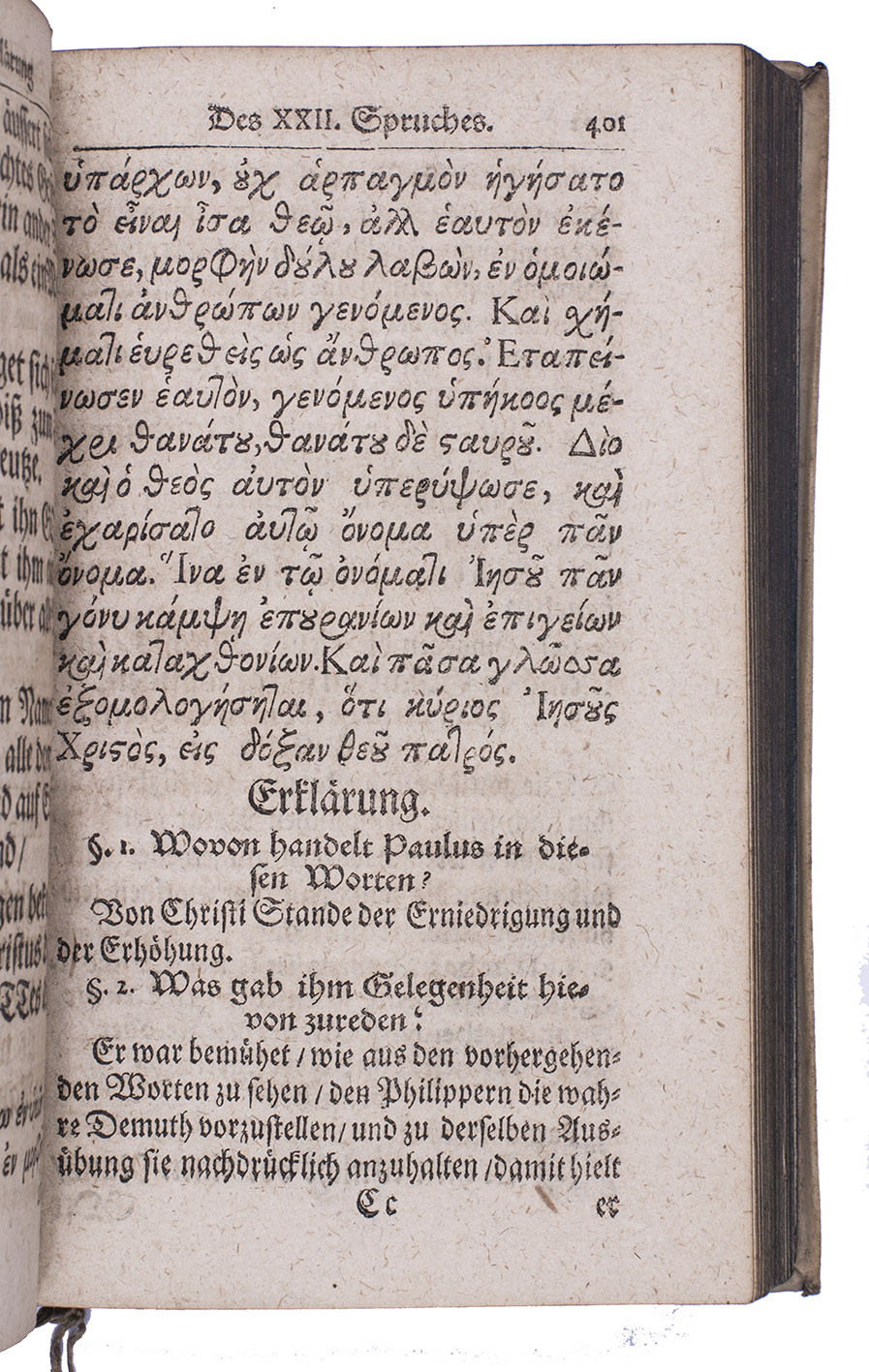 Leipzig, Friedrich Lankisch, 1705. 8vo. With an engraved frontispiece, title-page printed in red and black, a folding letterpress table and occasional lines in Greek and Hebrew type. Contemporary vellum, manuscript title on spine. [34], 704 pp.
