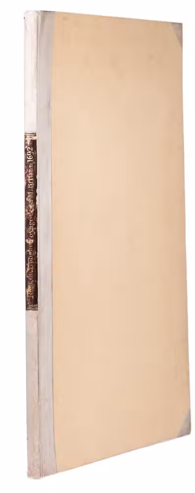 The Hague, Arnout Leers, 1692. Large folio (49.5 x 36 cm.). With an engraved portrait of King William III by Pieter van Gunst after J. Brandon, 11 full-page engraved plates (32.5 x 44 cm) and 4 half-page engraved plates (32.5 x 21.5 cm., including the engraved title-page) all finely engraved by Romeyn de Hooghe. Later half vellum and yellow paper side, with a brown leather title-label lettered in gold on the spine. [14] ll.