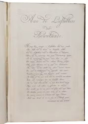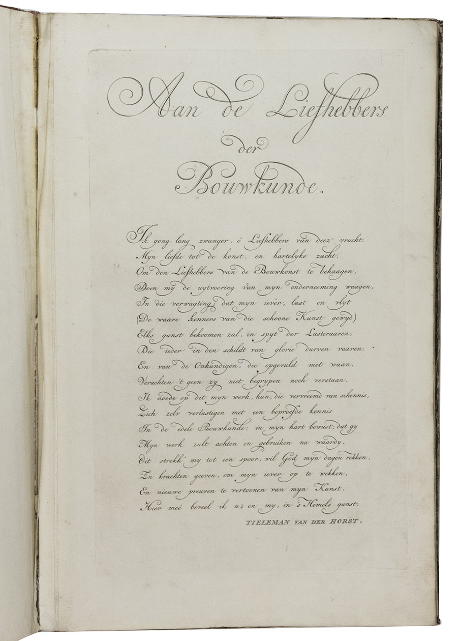 The text-volume has the large bookplate of W.A. van der Hidde. Text with a few marginal stains, binding rubbed. Plates with a few minor stains, mostly on first five leaves and the binding heavily rubbed. Internally still a very good copy of Horst's famous staircase book, with the rare text-volume. Ad 1: BAL 3929; Berlin Kat. 2253; STCN (9 copies); not in Fowler; ad 2: STCN (6 copies).