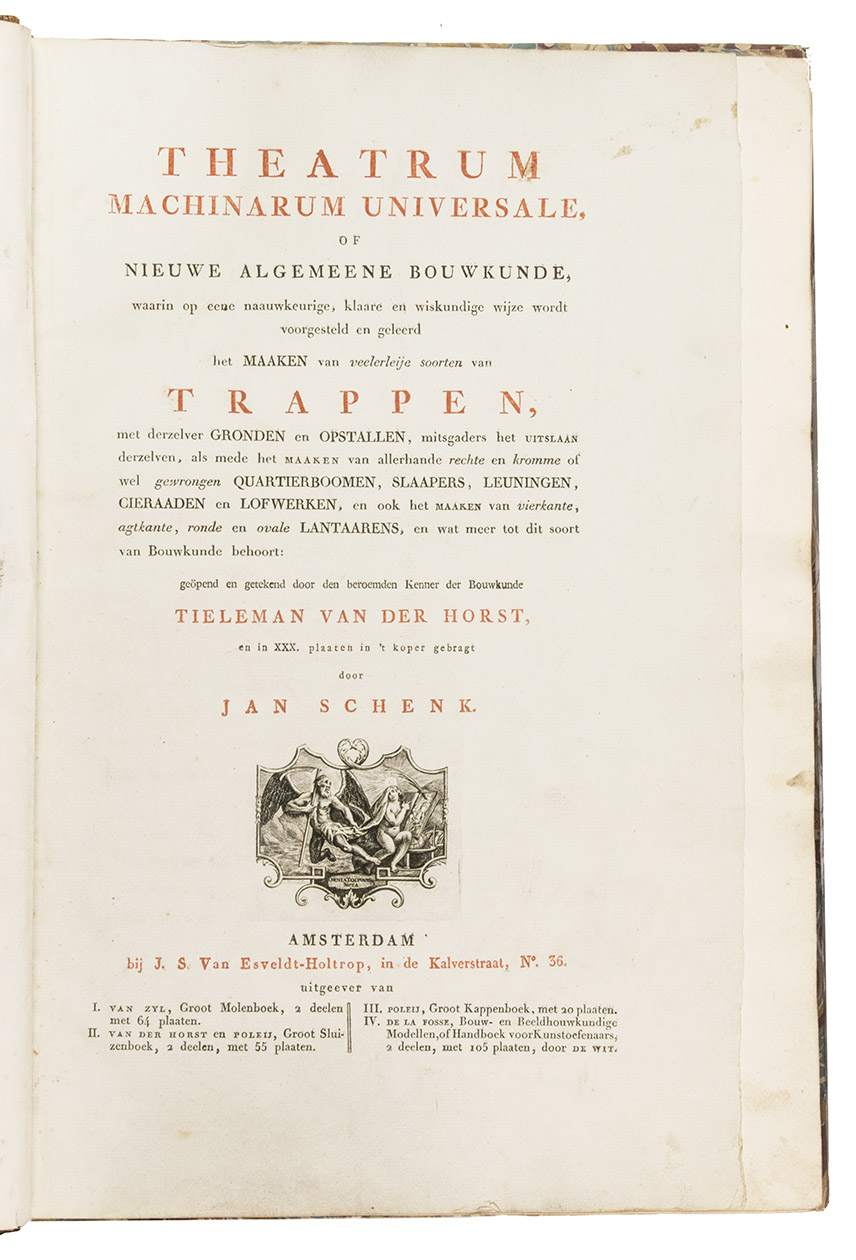 Theatrum machinarum universale, of nieuwe algemeene bouwkunde, waarin op eene naauwkeurige, klaare en wiskundige wijze wordt voorgesteld en geleerd het maaken van veelerleije soorten van trappen, met derzelver gronden en opstallen, mitsgaders het uitslaan derzelven, als mede ... Lantaarens, en wat meer tot dit soort van bouwkunde behoort: ...