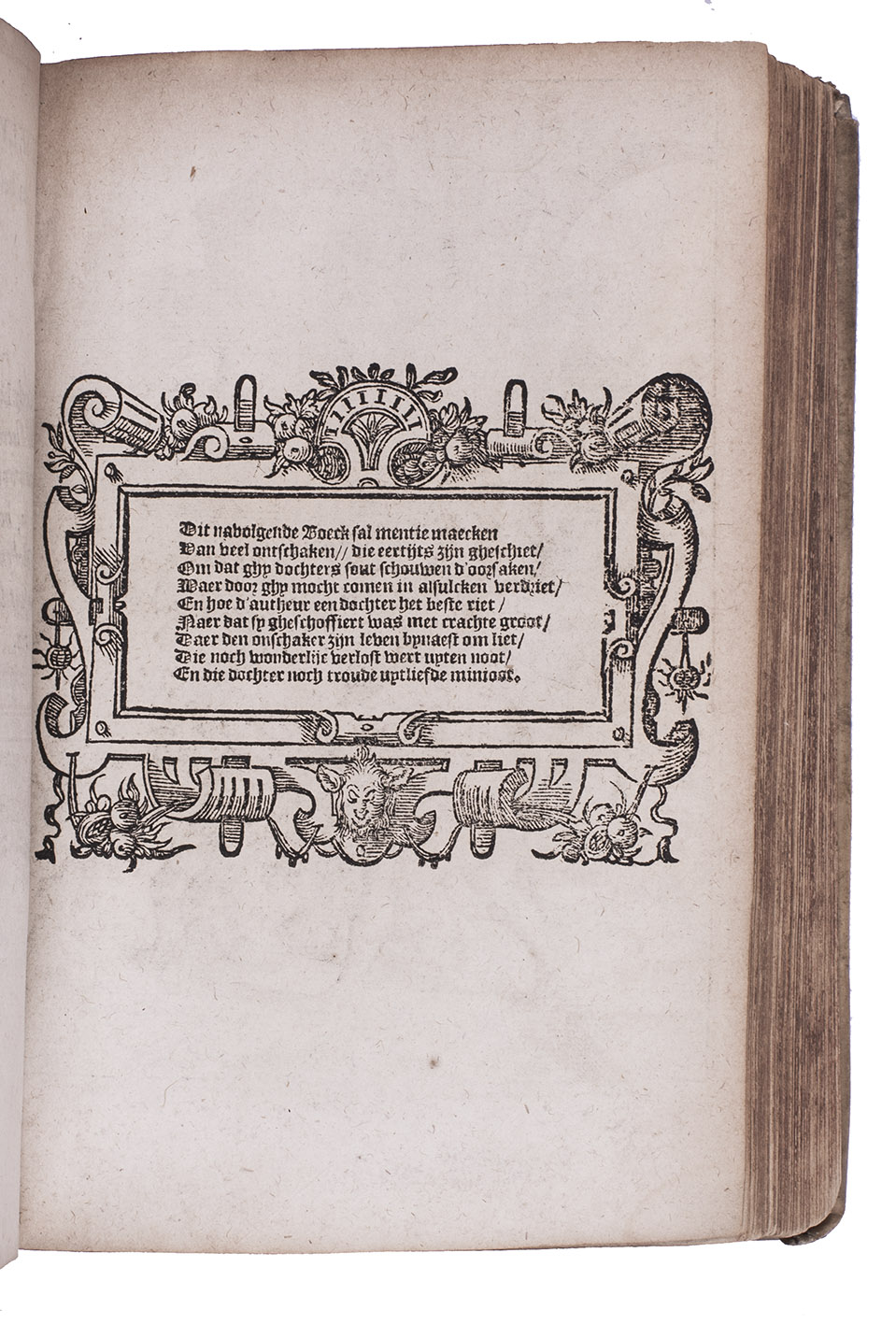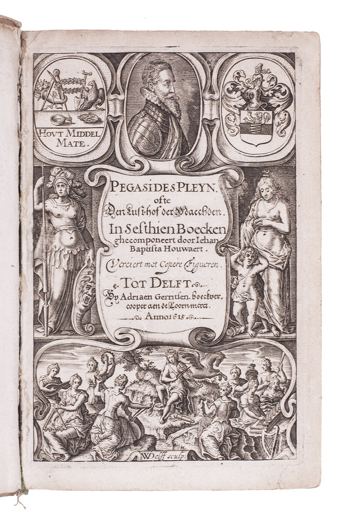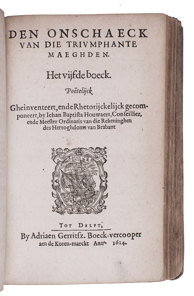 Late editions of a very popular poem for young women, the most famous work of the Belgian humanist poet Jean Baptista Houwaert (1533-1599). The poem is divided into sixteen books, offering numerous historical and legendary narratives packed with moral lessons, mostly intended for young girls and unmarried women. A few books are addressed to married women and widows, and only the last book is devoted to "the duty of the polite men". Other books are captioned "the treasure of the honest maiden", "the manners of gracious maidens", "the marriage of modest ladies", etc. According to the author the work could be seen as a manual for life.