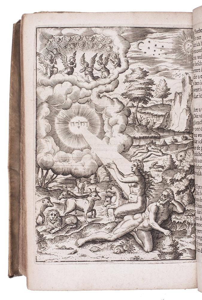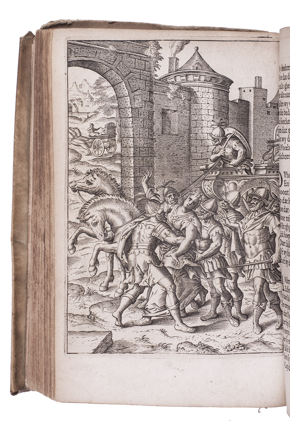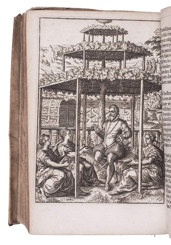 Volume 1: Delft, Adriaen Gerritsen, 1615 (colophon: 1614); volume 2: Leiden, Jan Paets Jacobszoon, 1611. 8vo. Volume 1 with an engraved title-page by Jan Wiericx and 8 full-page engravings by Jan Wiericx; volume 2 with the main text set in civilité type. Uniform contemporary vellum. XLVI, [2], 867, [1]; 464, 1-471, [1 blank] pp.
