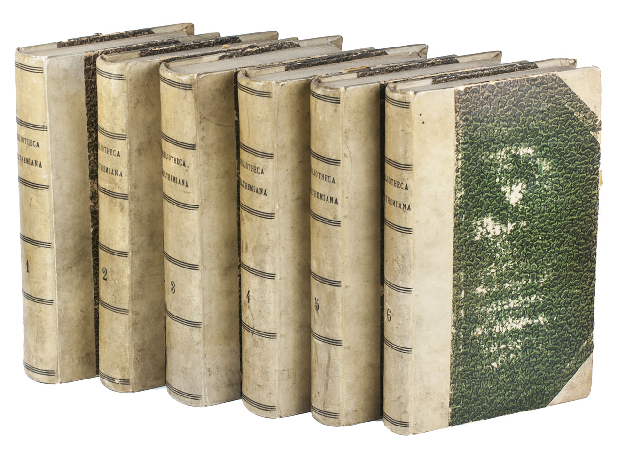 With library stamp ("Libro di F. Lecaldano") on title-pages. Foxed and the binding with the sides rubbed. Otherwise a good set. Taylor, Book catalogues, pp. 246-247.