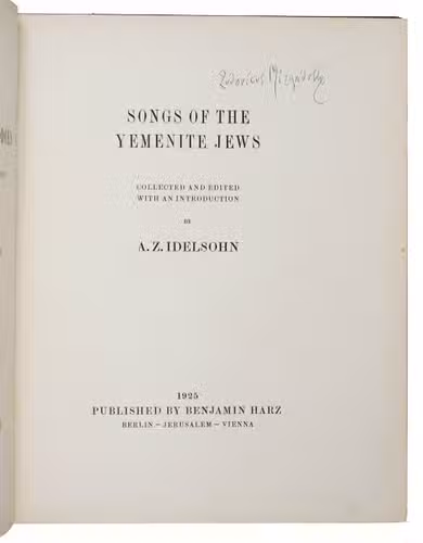 Songs of the Yemenite Jews. Collected and edited with an introduction. Thesaurus of Oriental Hebrew melodies.