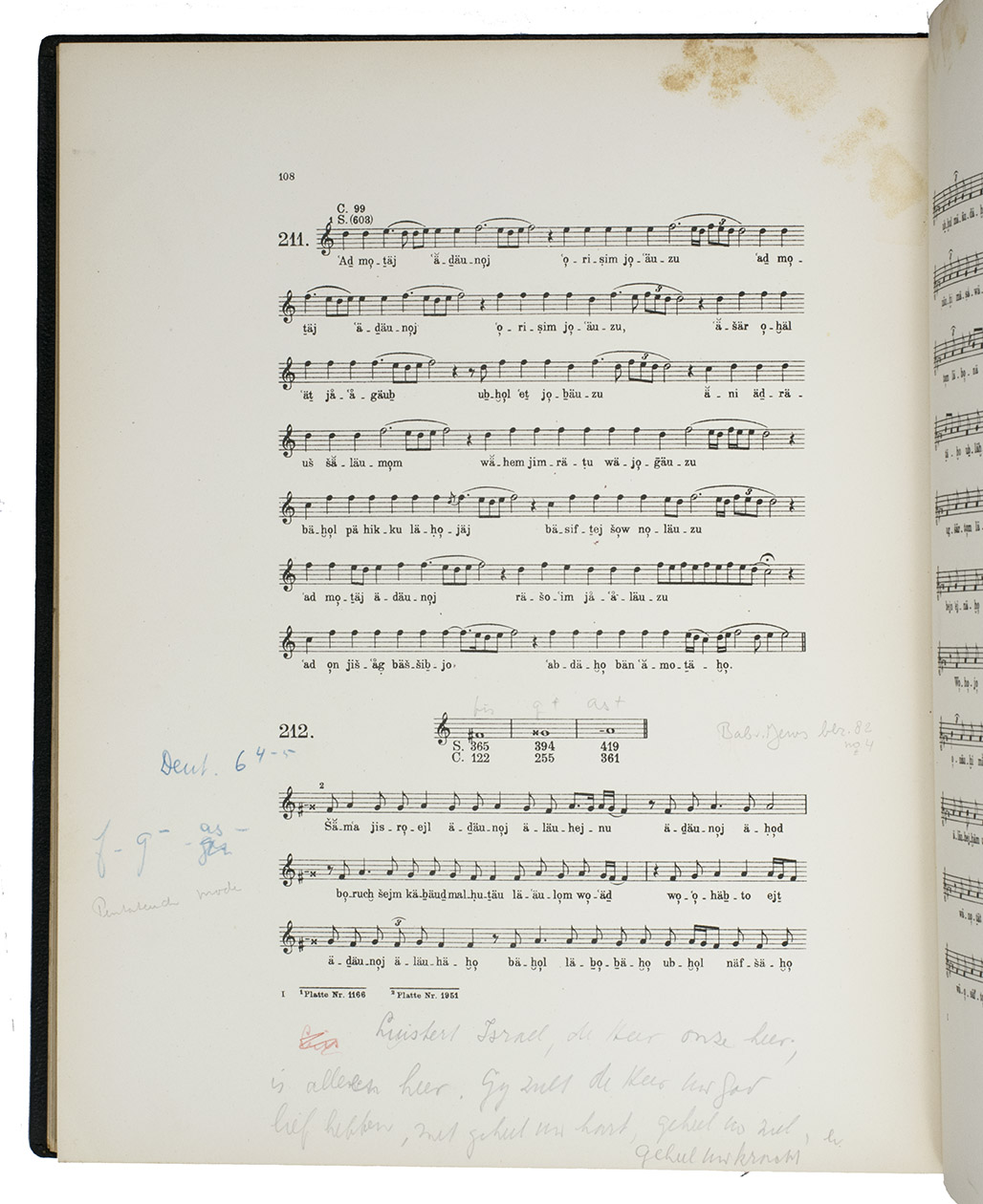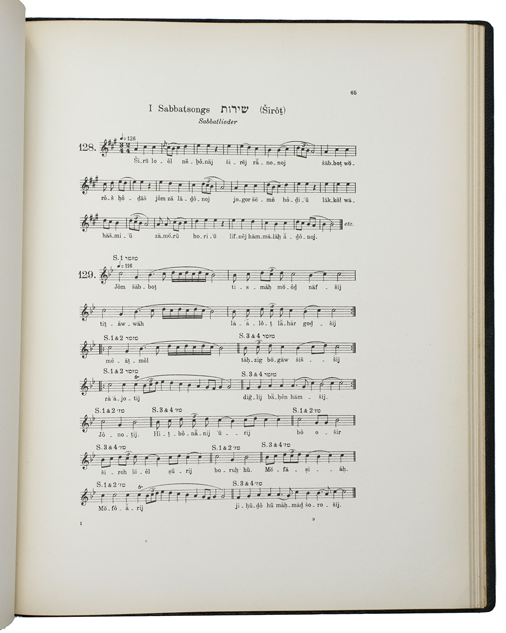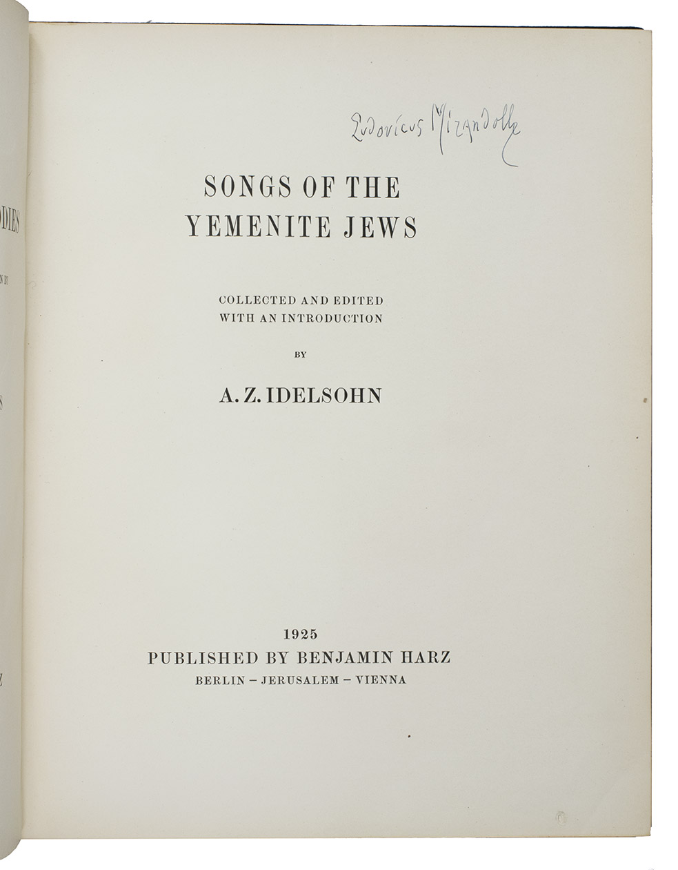 Abraham Idelsohn (1882-1938) is widely considered the pioneer of modern Jewish musicology. Born in todays Latvia, he travelled extensively and recorded the musical traditions of the diasporic Jewish communities. Over the course of 20 years, Idelsohn surveyed the musical traditions of various Jewish communities in Palestine and throughout the Diaspora, including Babylonian, Persian, Bukharian, Oriental Sephardi, Moroccan, German, Eastern European, and Hassidic communities, and published the final volume of his collection in 1932. The two volumes offered here form part of his monumental and very rare work, collecting the songs of the Yemenite and Babylonian Jews. Idelsohns survey and catalogue of the songs encompass Synagogal and Non-Synagogal songs, comprising of songs for the Sabbath, feasts and high feast, working days as well as lamentations, penitential songs and songs for other occasions and folk songs. In his monumental work, he presented an extensive introduction to the musical culture of the Jewish tribes and extensive commentary on the variations within the chant. Idelsohns works were printed by Breitkopf & Härtel in Leipzig, the worlds oldest music publishing house and renowned for their high quality musical scores.