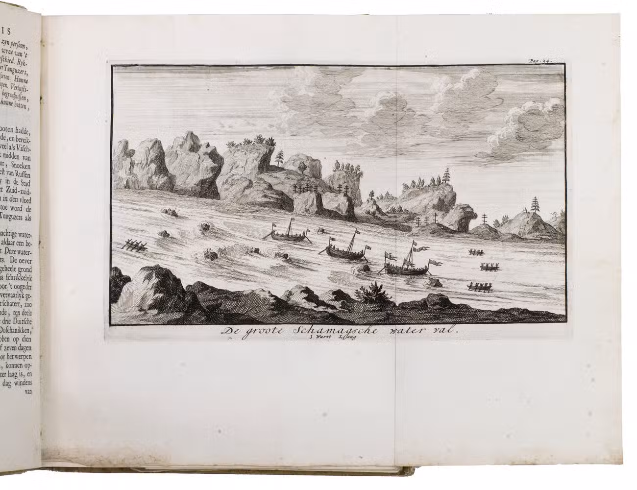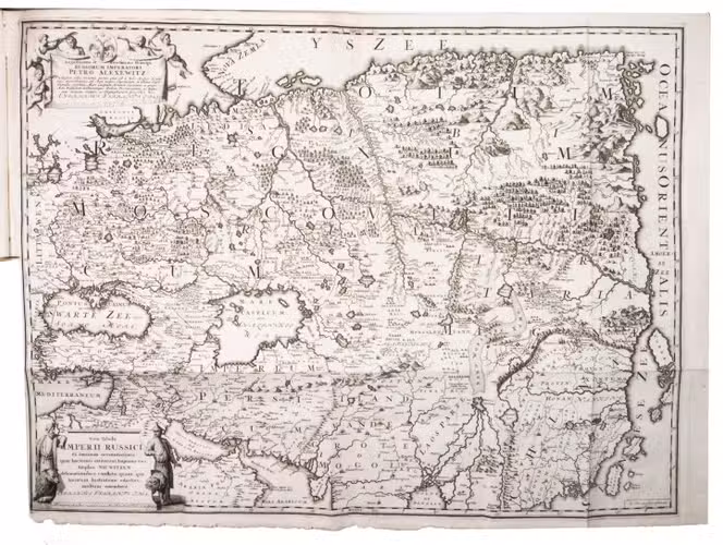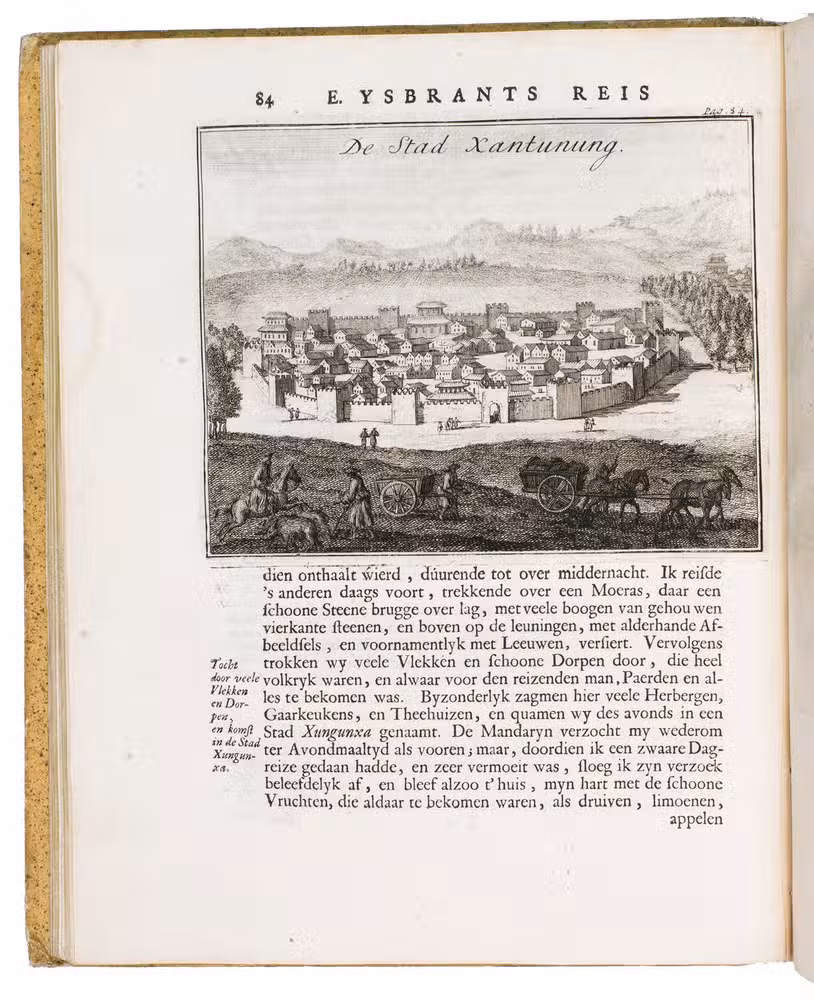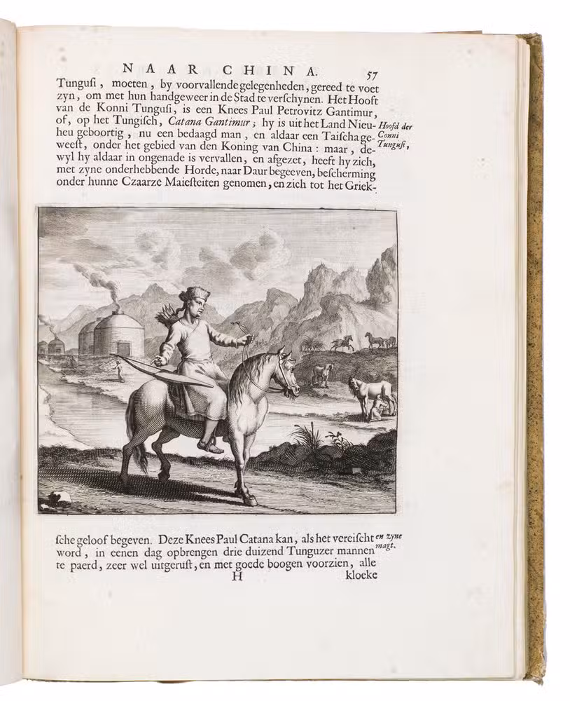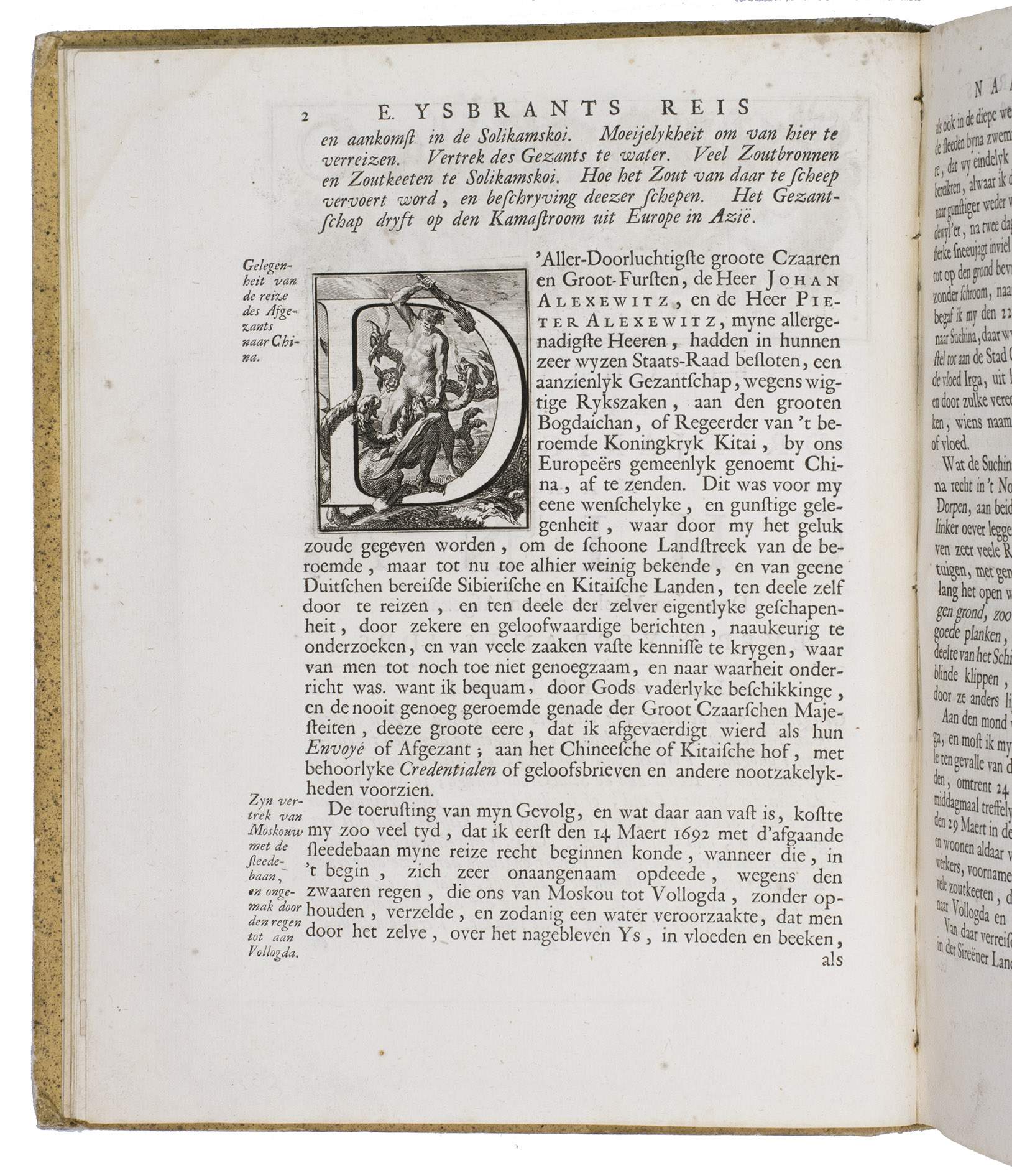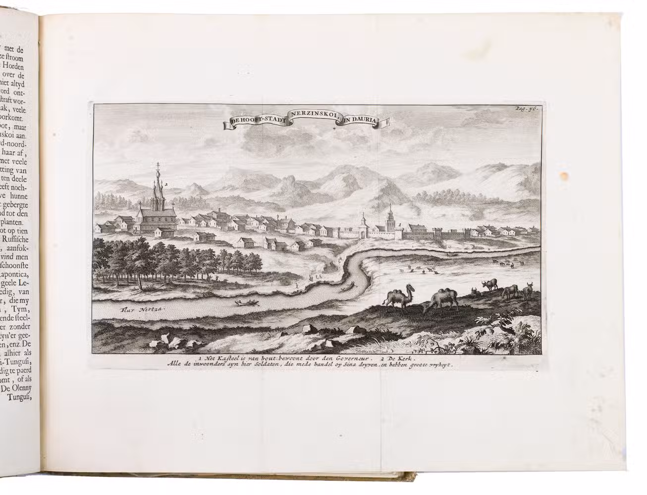 The map Ides used for his journey had been created by Dutch cartographer, wroter, diplomat, and Amsterdam mayor Nicolaas Witsen (1641-1717) in 1687. Ides supplemented and improved it during his travels. After his return, Ides sent Witsen the new map and the transcription of his travel journal. Witsen translated it into Dutch and published it in 1704, with the corrected map. The work became popular and was soon translated into French, English and German. The present copy is the second Dutch edition, published a few years after the first.