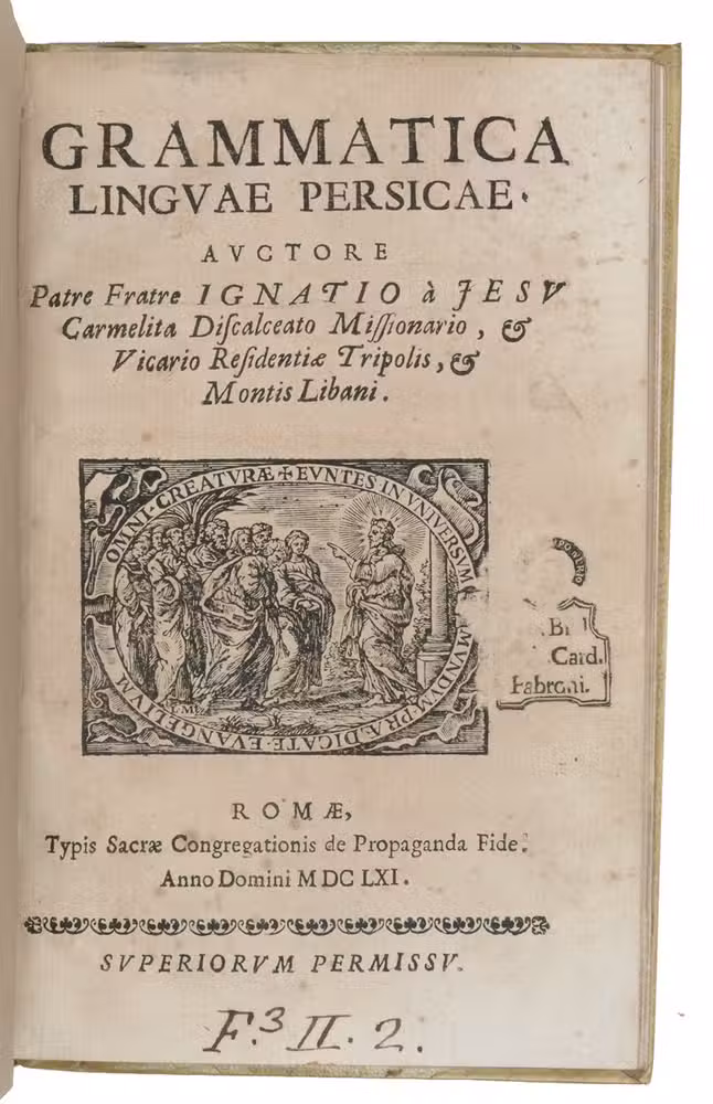 Grammatica linguae Persicae. Auctore Patre Fratre Ignatio à Jesu Carmelita Discalceato missionario, & vicario residentiae Tripolis, & Montis Libani.
