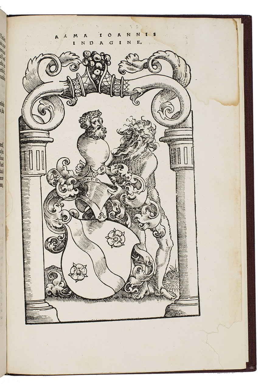 (Colophon: Strasbourg, Johann Schott, 1534). Folio (31 x 21.5 cm). With a large woodcut portrait of the author on the title page, the author's full-page woodcut coat of arms on the recto of the otherwise blank last leaf, about 93 woodblock illustrations (including 3 hand blocks and a few square astrological diagram blocks used repeatedly with varying content). 20th-century half maroon goatskin morocco. 126, [1], [1 blank] pp.