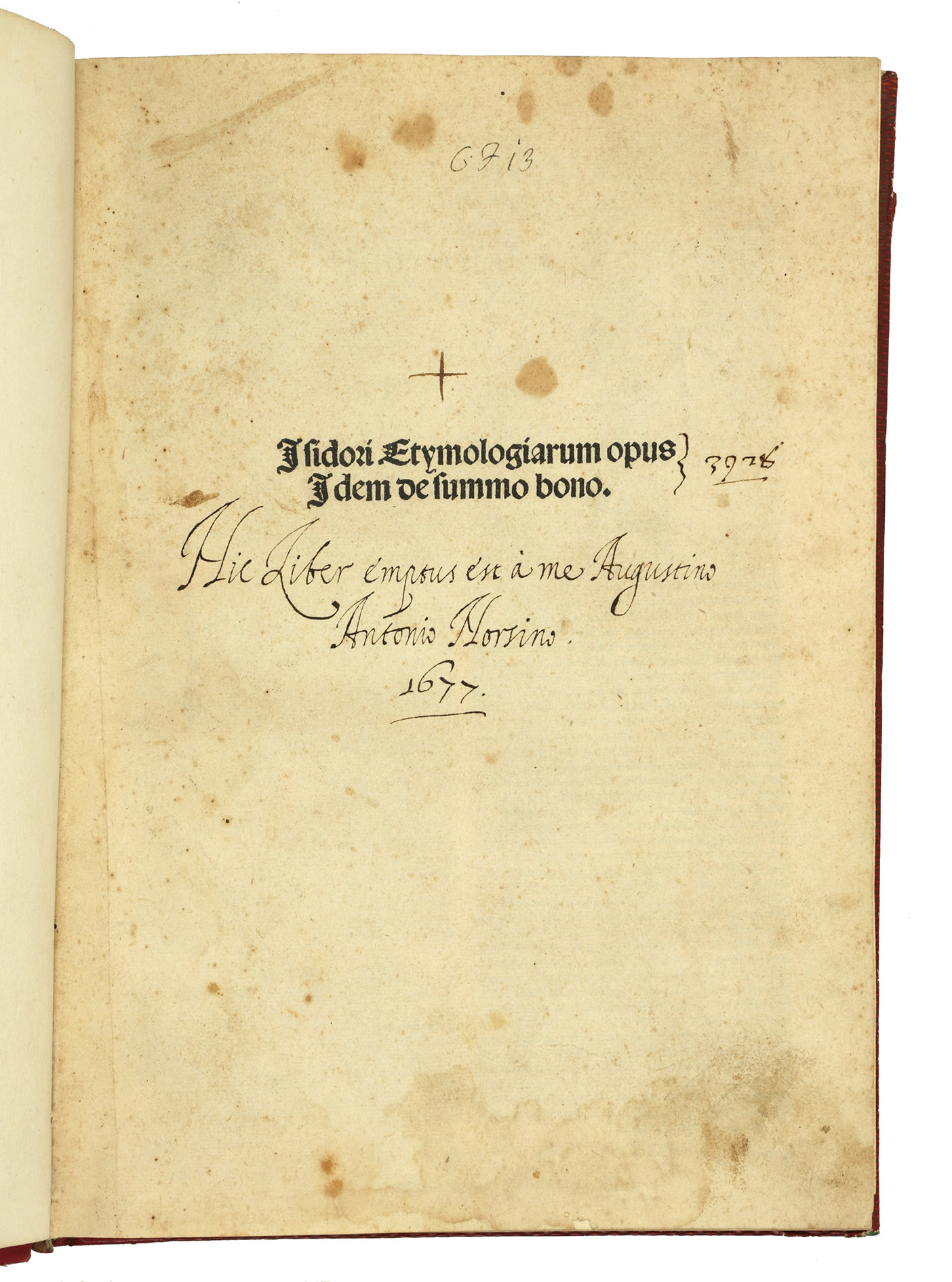 With ownership inscription of Antonio Morsino on the title page and leaf 2, and the bookplate of the famous bibliographer and collector Max Brun mounted on the front pastedown. The binding is slightly rubbed, the edges and corners of the boards are slightly bumped, the cloth is slightly faded at the head of both boards. The work is slightly browned and stained throughout, with some leaves affected more than others, water marks on some of the leaves, a few notes and underlinings in ink and pencil, the genealogical tree woodcut and leaf 2 of the first foliation have been slightly trimmed at the bottom. Otherwise in good condition. EDIT 16, CNCE 35696; Hain-C. 9277; Goff I-188; Sander 3528; vgl. DSB VII, 97 ff., Garrison-M. 6787 u. MGG VI, 1435 f.