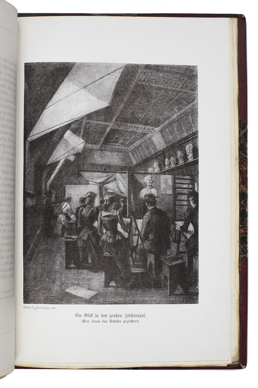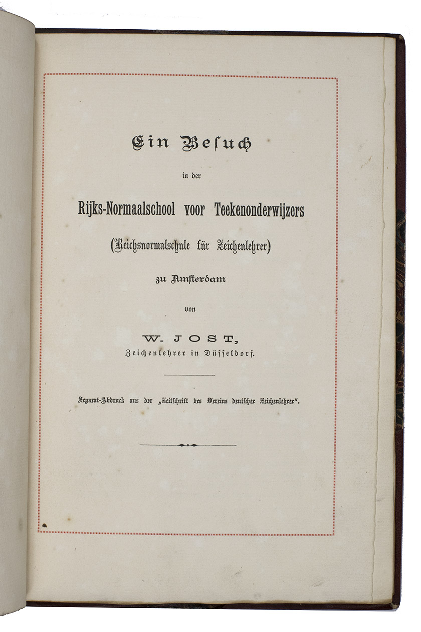 Offprint of an interesting article by the drawing-teacher W. Jost with his observations made during a visit to the Art academy, school for drawing teachers, in Amsterdam and Jost's meeting with the director W. Molkenboer, now the Rijksacademie. The article was first published in the periodical Zeitschrift des Vereins Deutscher Zeichenlehrer. One of the lithographs depicts a drawing by Leonie Molkenboer, the daughter of the director.