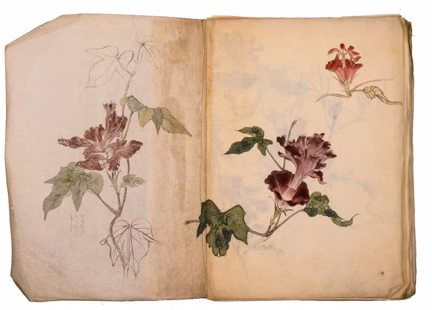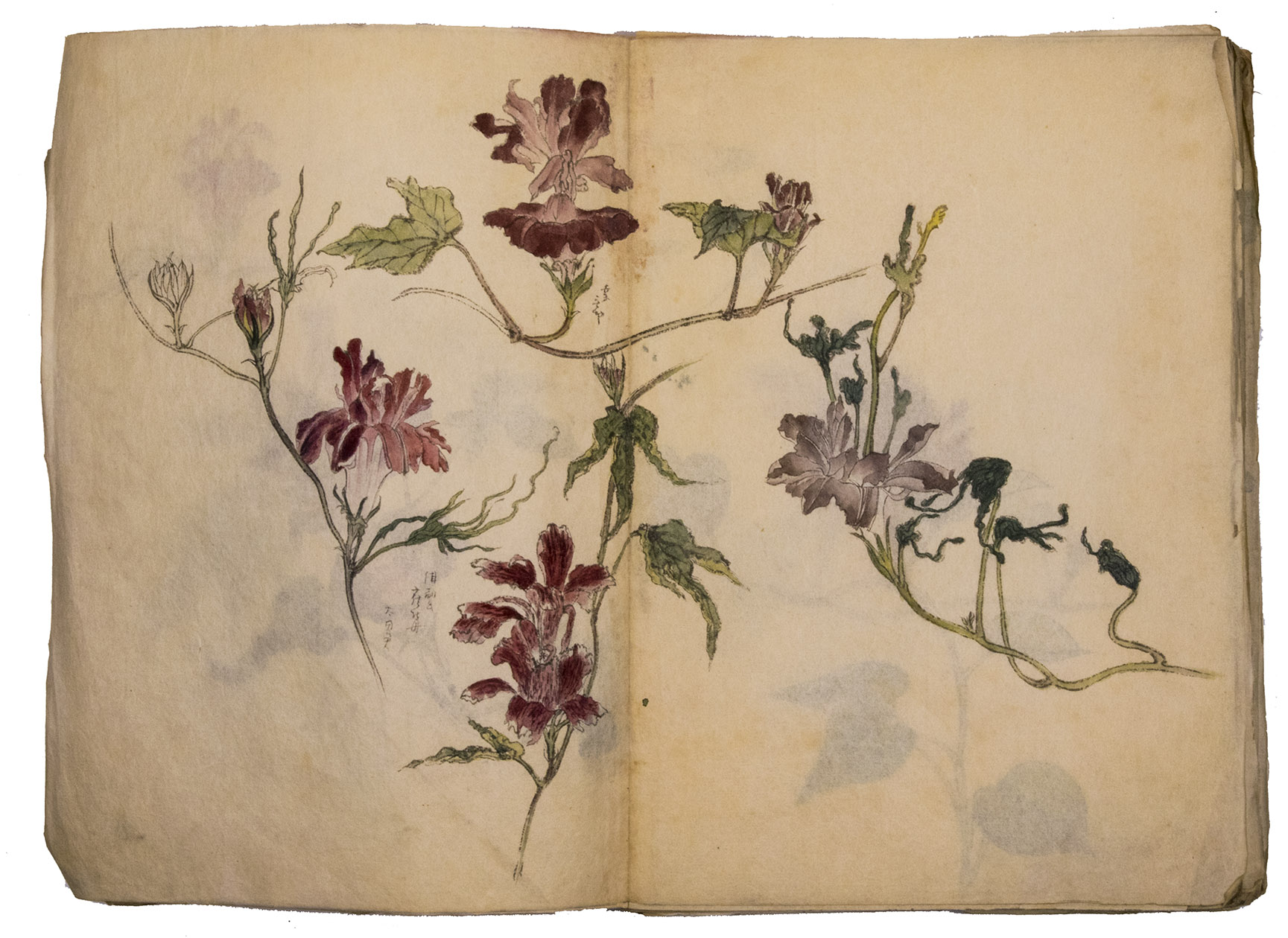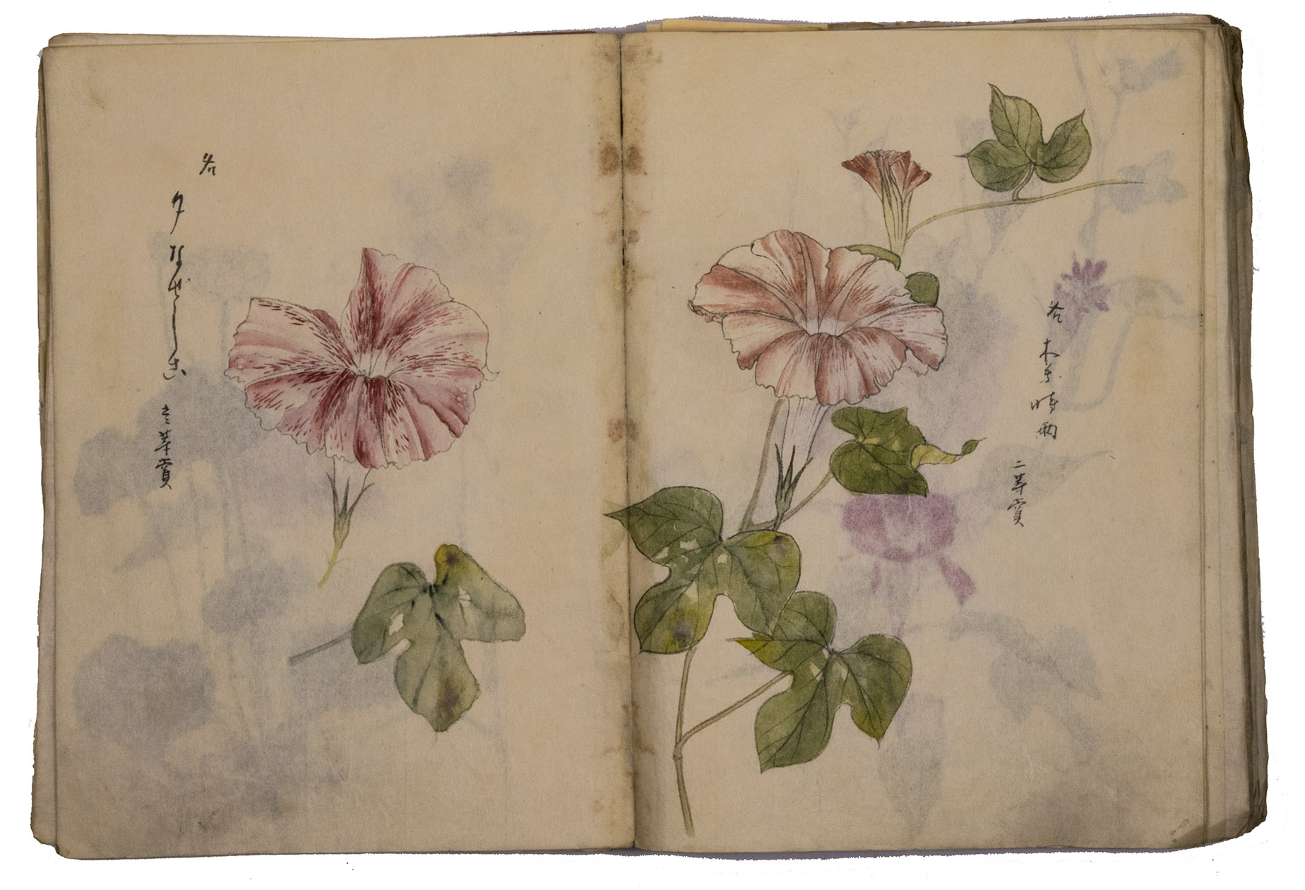 Beautiful, detailed and accurate Japanese colour drawings, mostly botanical, on 85 double-page spreads