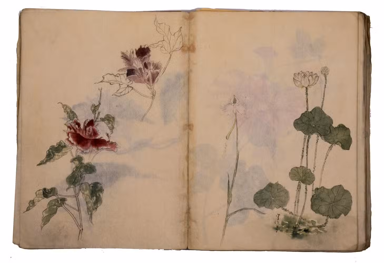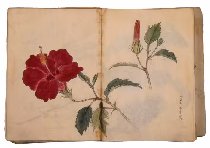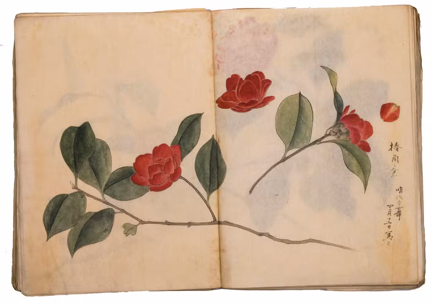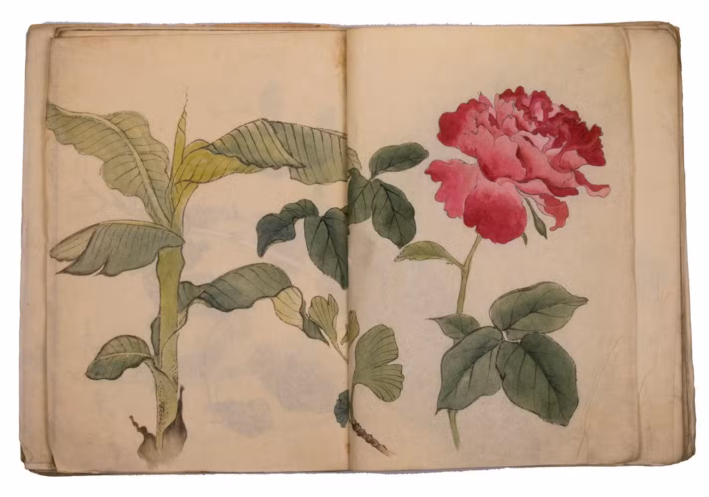 Beautiful, detailed and accurate Japanese colour drawings, mostly botanical, on 85 double-page spreads