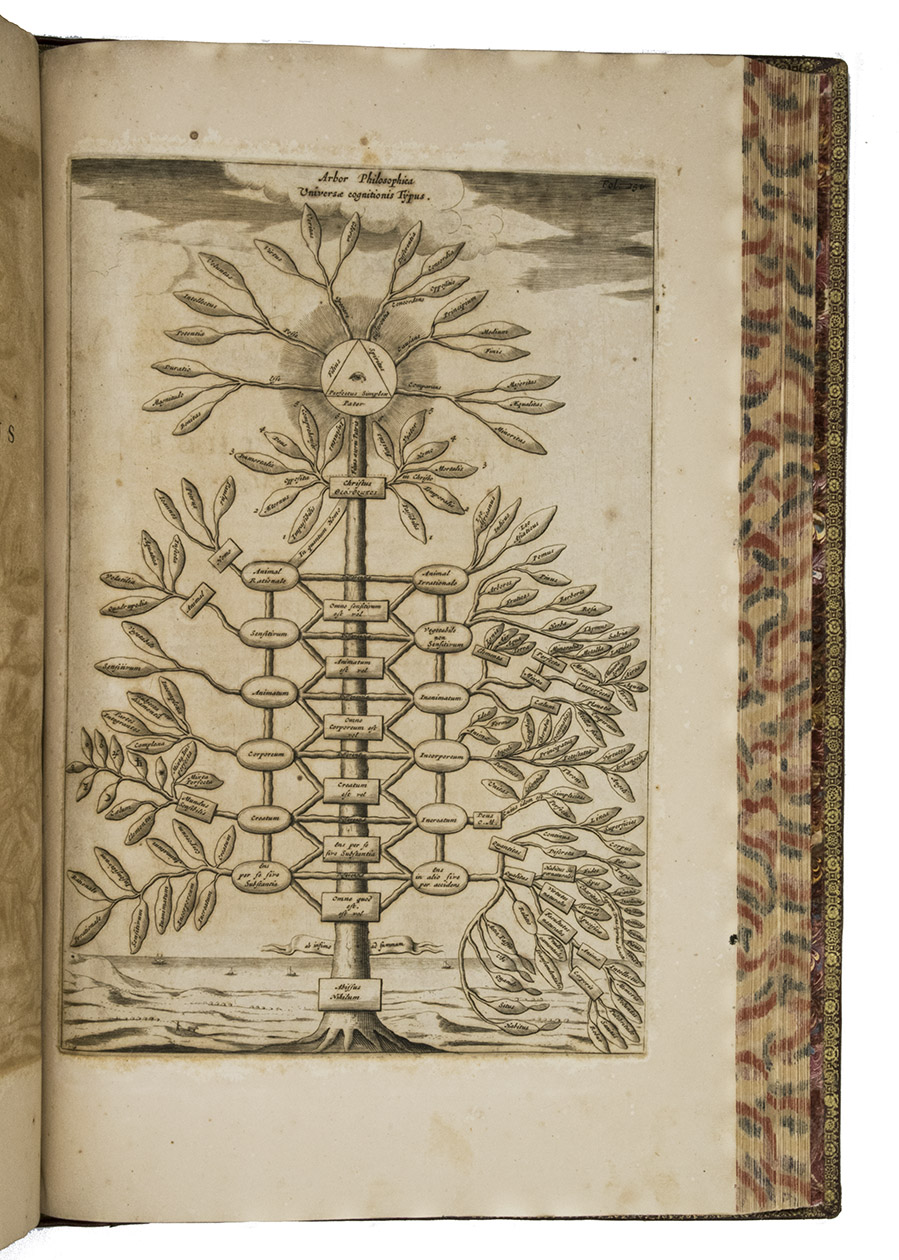 First edition of a 17th-century attempt to organise all knowledge of the universe into a classified system with nine primary categories (represented by icons made for the present edition) and to discover an underlying universal language, the most ambitious work (and one of the most extensive) of the great eccentric Jesuit genius Athanasius Kircher (1602-1680): a bizarre mixture of philosophy, science, religion and fantasy.