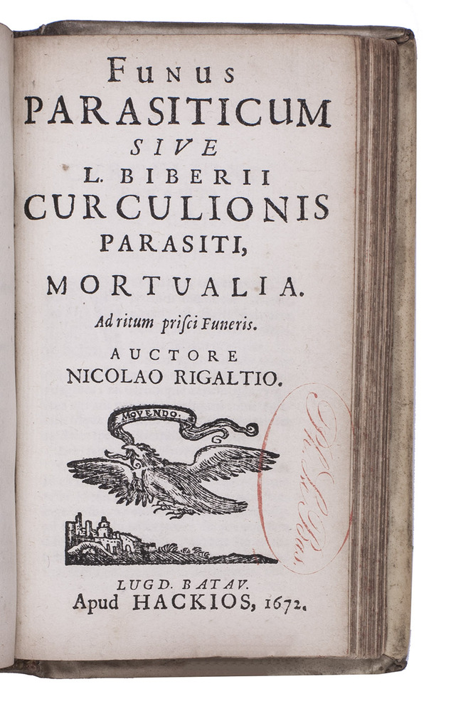 De funeribus Romanorum libri quatuor.Including: RIGAULT, Nicolas. Funus parasiticum sive L. Biberii curculionis parasiti, mortualia. Ad ritum prisci funeris.