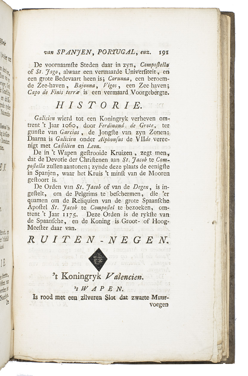 Second and last issue of the rare first and only edition of a heraldic game for young noblemen to learn the heraldry, genealogy, geography and history of the main European kingdoms, duchies, counties, electorates and other states. This was considered very important, since many of these young men were to one day take part in political and governmental activities. The game is to be played with a pack of ordinary playing cards and a map of the world spread over the playing table. Each player takes a turn by randomly drawing a card and describing the genealogy, heraldry, geography and history of the region that the book associates with that card. One of the players serves as arbiter and when a player fails to give a correct and sufficient description, he must pay a fine. The book itself provides the information for describing the heraldry, genealogy, geography and history of the regions it associates with the cards. The preface presents not only the rules of the game, but also several variant versions, and it concludes with a general educational text on heraldry and the lay-out and symbolism of coat-of-arms.