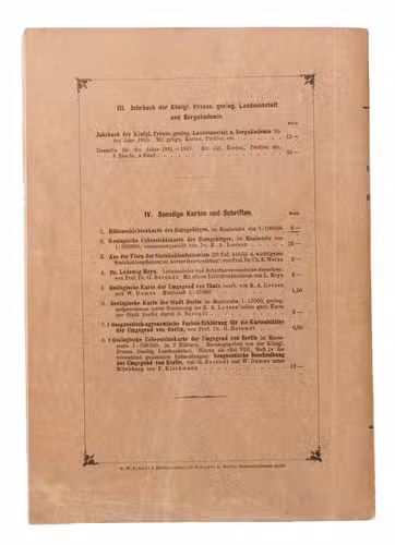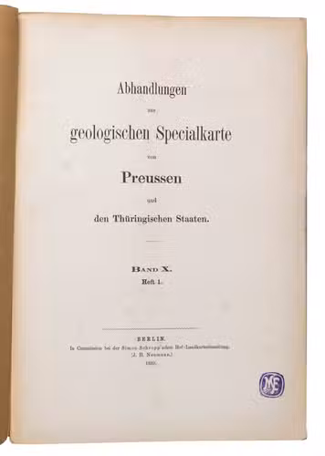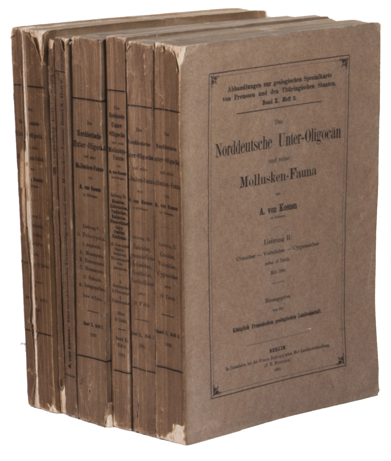Berlin, Königlich Preussischen geologischen Landesanstat, Im Vertrieb der Simon Schropp, 1889-1894. 7 parts (bound in 7). Large 8vo (25.5 x 17.5 cm). With 101 folding plates. Original printed brown paper wrappers, with the title on the spine (printed for volumes 1-6, manuscript for volume 7). 1458 pp.