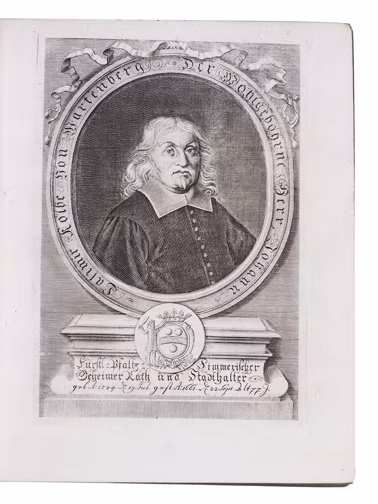Berlin, Johann Michael Rüdiger, 1704. With richly engraved allegorical frontispiece by I.W. Heckemaur, title-page printed in red and black, full-page engraved portrait of the author, and woodcut vignette on separate title for the genealogy of the House of Kolbe von Wartenberg.