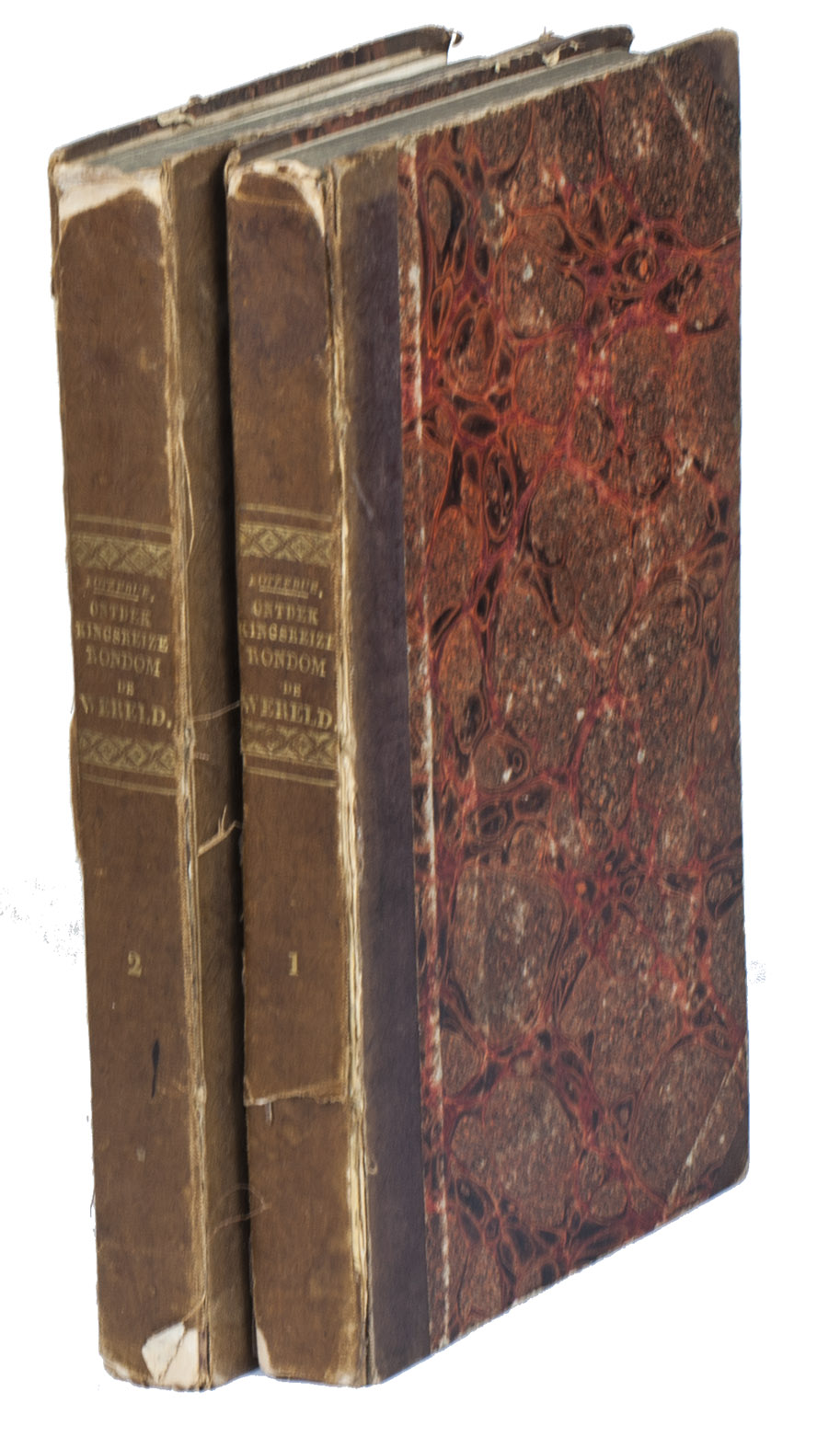 Haarlem, widow of Adriaan Loosjes, 1830. 2 volumes. 8vo. With a lithographed frontispiece in each volume, and 3 folding engraved maps. Contemporary half cloth. VII, [1], 254; [6], 274 pp.