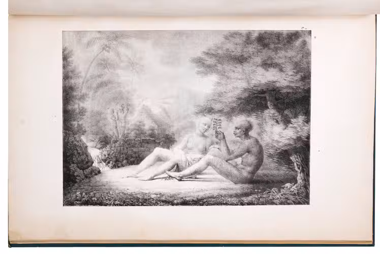 With a paper label (R. D. P.) on the front pastedown of volume 1 and the atlas, a manuscript shelf mark ("A. 14. R. 2.") on the first flyleaf of the two text volumes. The edges and corners of the boards of the text volumes are slightly scuffed. Some of the leaves are somewhat foxed around the margins. The joints of the boards of the atlas are slightly weakened, without affecting the structural integrity of the binding. The first and last few leaves are browned, with a water stain in the lower outer corner of the first few leaves, not affecting the images. Otherwise in good condition. Borba de Moraes I, 442; Forbes I 530; Hill 167-168; Sabin 38332; O'Reilly and Reitman 732 & 4728.