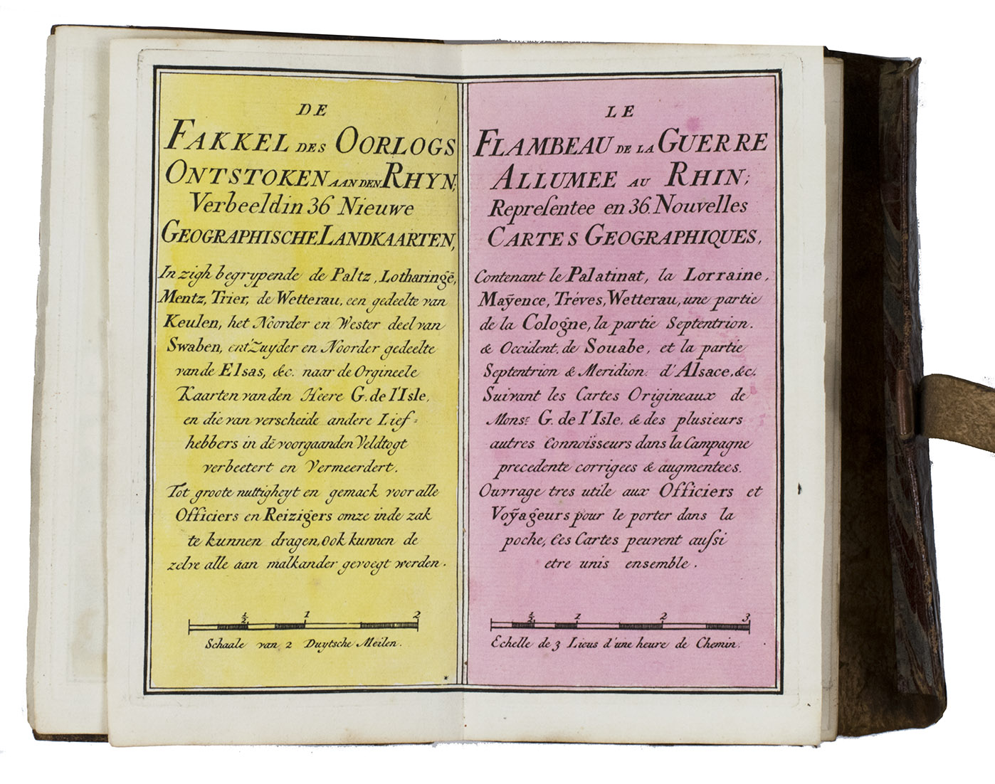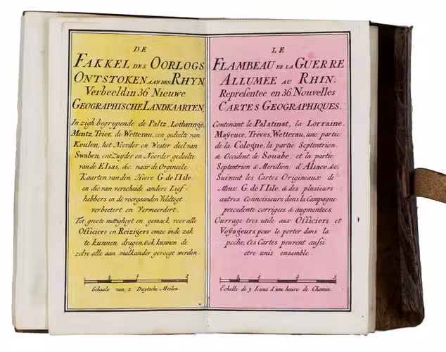 Le flambeau de la guerre allumee au Rhin; representee en 36 nouvelles cartes geographiques, ... = De fakkel des oorlogs ontstoken aan den Rhyn; verbeeld in 36 nieuwe geographische landkaarten, ...