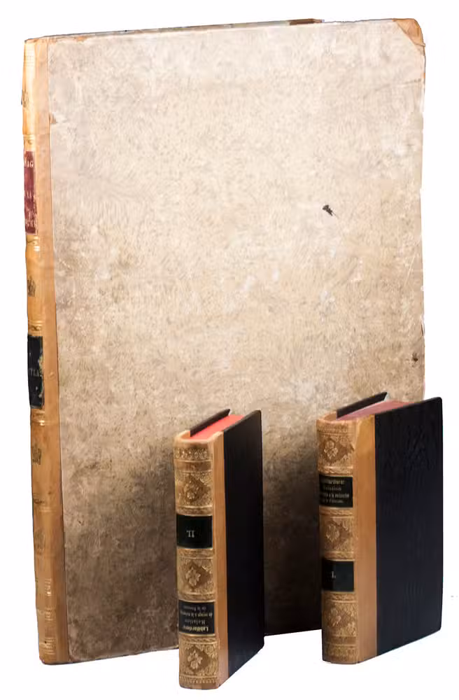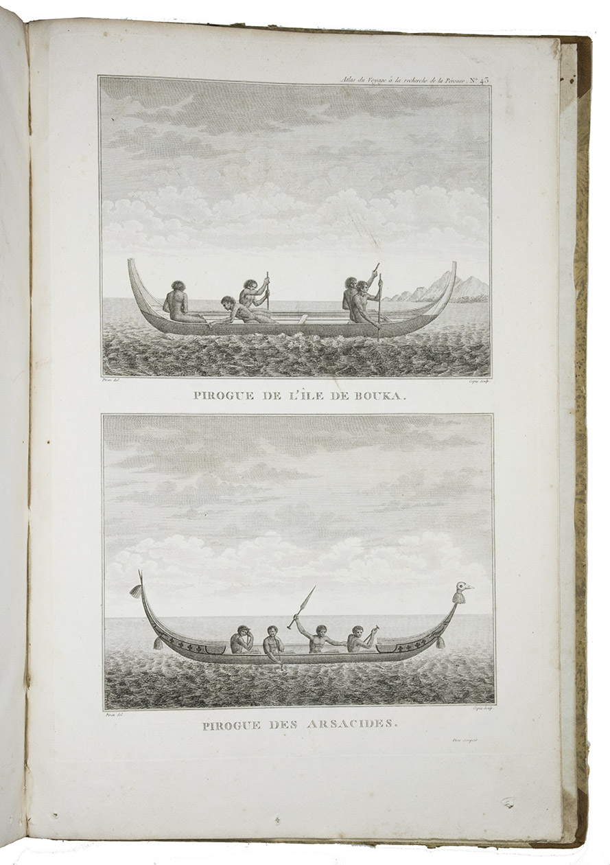The first(?) octavo edition of a famous account of an important expedition to Australia and the surrounding islands, published in the same year as the first quarto edition, together with the very rare 1811 second edition of the atlas volume, printed from the plates of the first edition, which had also appeared in 1799/1800. Jacques La Billardière or Labillardière (1755-1834), one of the expedition's naturalists, gives not only a report of the expedition's anthropological and natural historical findings, but also a personal account of an attempt to solve a mystery that began on 10 March 1788 when the French explorer Jean-François Galaup de La Pérouse sailed out of Botany Bay, New South Wales, and was never seen again by Europeans. His disappearance was a matter of great national concern in France.