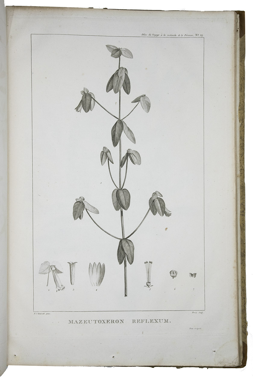 "The expedition made several important contributions to geographical knowledge, and the investigations of the naturalists into productions of countries visited were of special value" (Ferguson). Most of the illustrations were drawn by Jean H. Piron, but the 14 botanical illustrations were drawn or painted by the great botanical artist Pierre-Joseph Redouté (1759-1840).