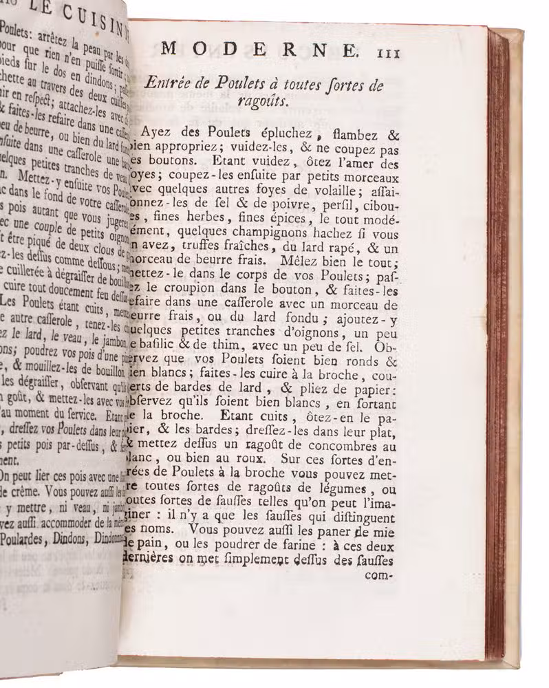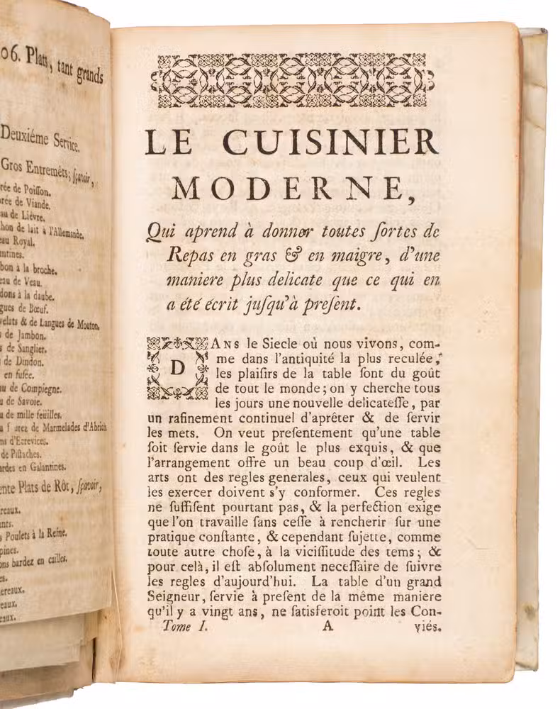 Le cuisinier moderne, qui apprend à donner toutes sortes de repas, en gras & en maigre, dune manière plus délicate que ce qui en a été écrit jusquà present; divisé en cinq volumes (...)