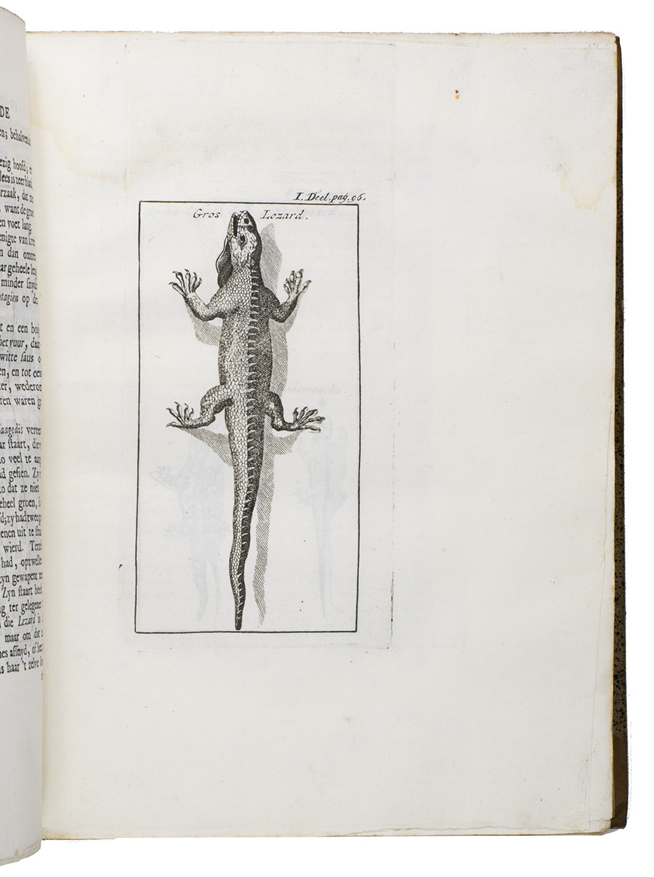 Amsterdam, Balthasar Lakeman, 1725. 4 volumes bound as 2. 4to. With 2 engraved frontispieces, 11 folding engraved maps and plans, and 83 full-page plates. Contemporary polished half calf. [2], 18, 350; [1 blank], [1], 404; [2], 235, 254; [1 blank], [4], 200, 167, [32] pp.