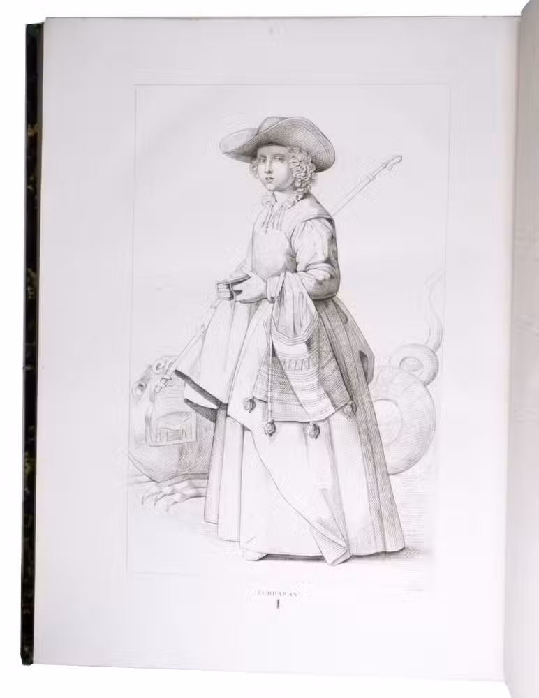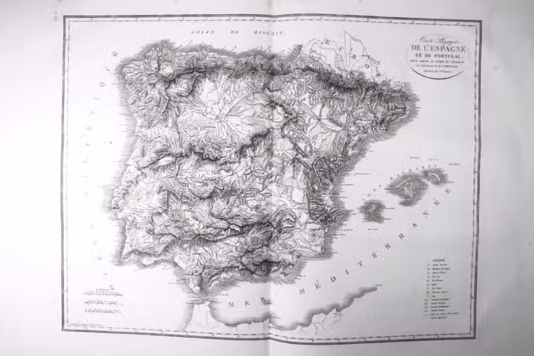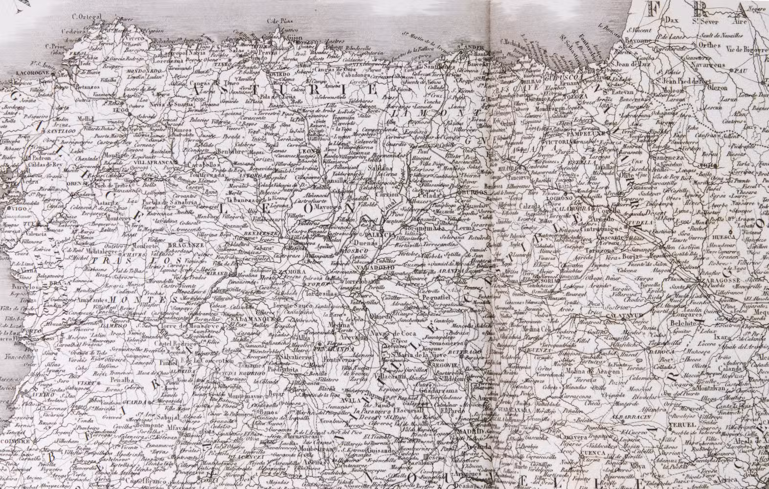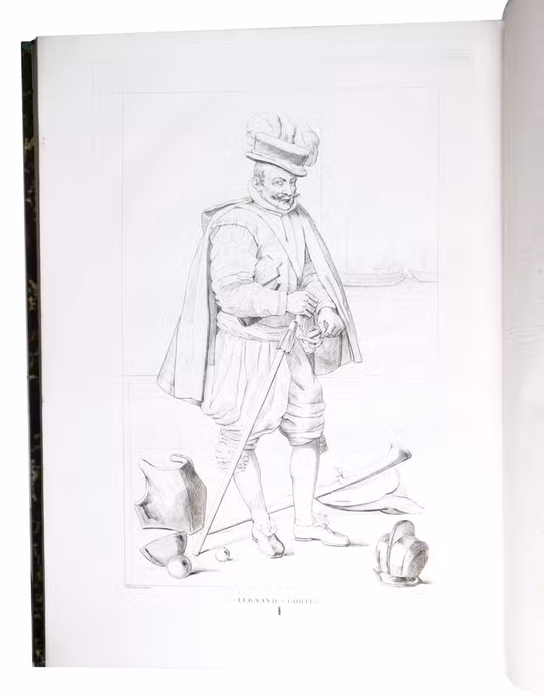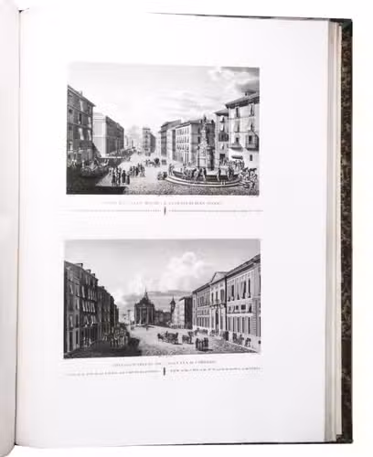 Many towns and cities are depicted, in vol. I: Barcelona, S. Michel del Fay, Martorel, Mont-Serrat, Olerdola, Tarragone, Tartose, Lérida, Poblet, Belpuch, Cardona, Manresa, and Girone; vol. II: Valence, Murviedro, Almenara, Cabanes, Villafames, Chulilla, Chelves, San Felippe, Montesa, Dayemus, Denia, Calp, Villa-Joyosa, Alicante, Elche, Badajoz, Merida, Alconeta, Alcantare, Caceras, Caria, Caperra Talavero, and Guadalupe; vol. III: Belmes, Espiel, Sierra Morena, Cordova, Grenada, Alhambra, Loxa, Sevilla, Italica, Malaga, Gibraltar, and Cadix; vol. IV: Pampelune, Renceveaux, Saragossa, Burgos, Segovia, Talavera, Valladolid, Coca, Saint-Ildephonse, l'Escurial, Tolede, Aranjuez, Madrid, Ocana, Grenada, and some plates depicting paintings by famous Spanish artists like Velasquez, Fernand-Cortès, Claude Coello, Ribera, and Murillo.