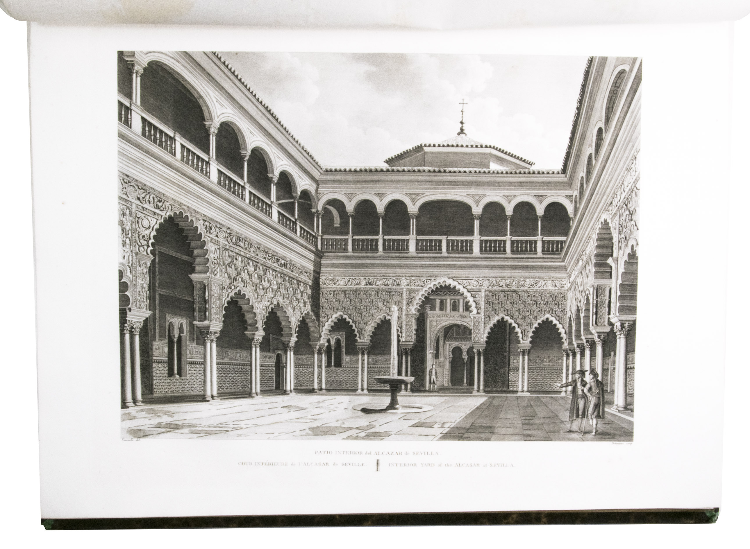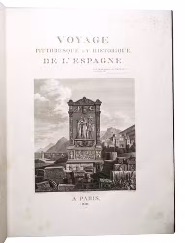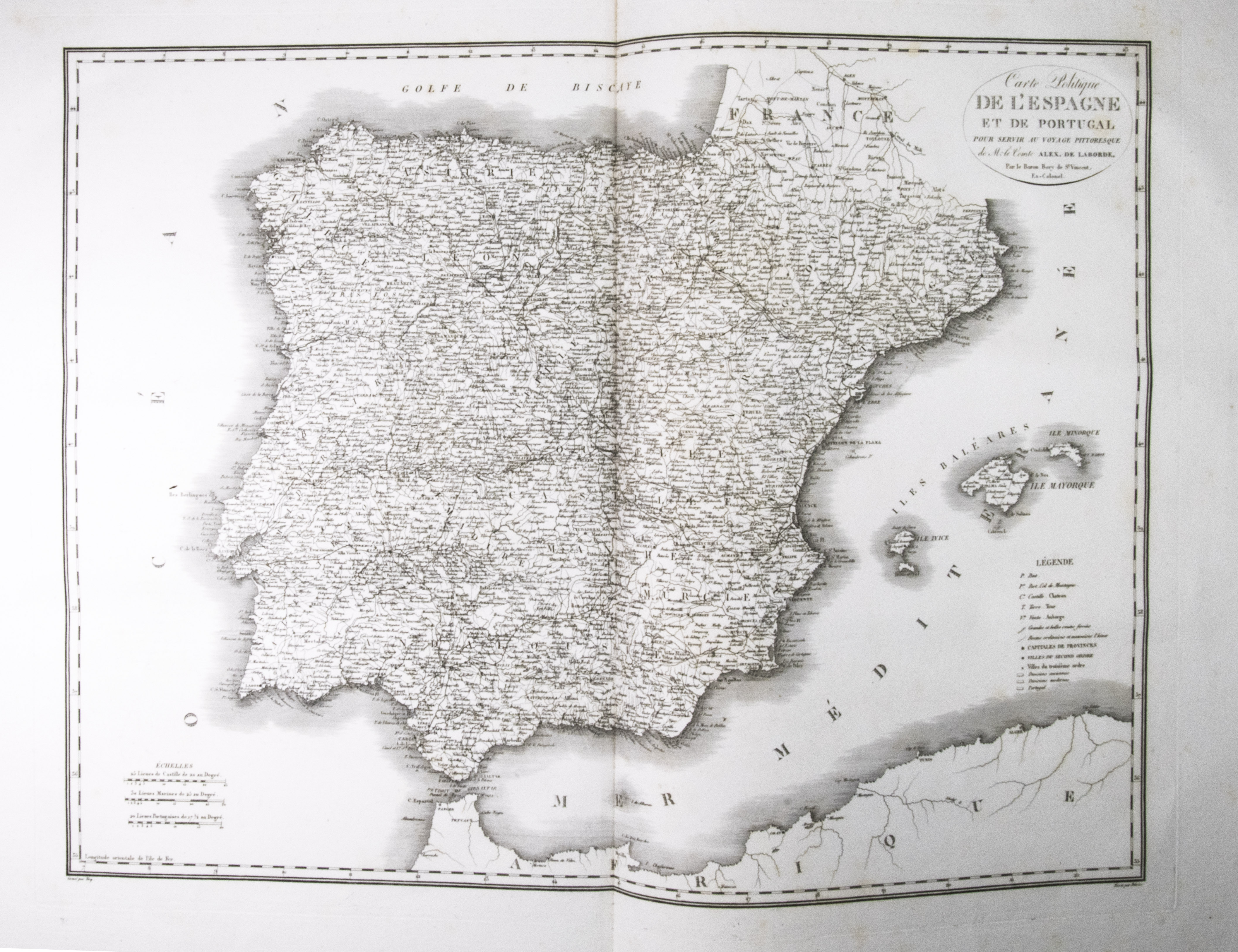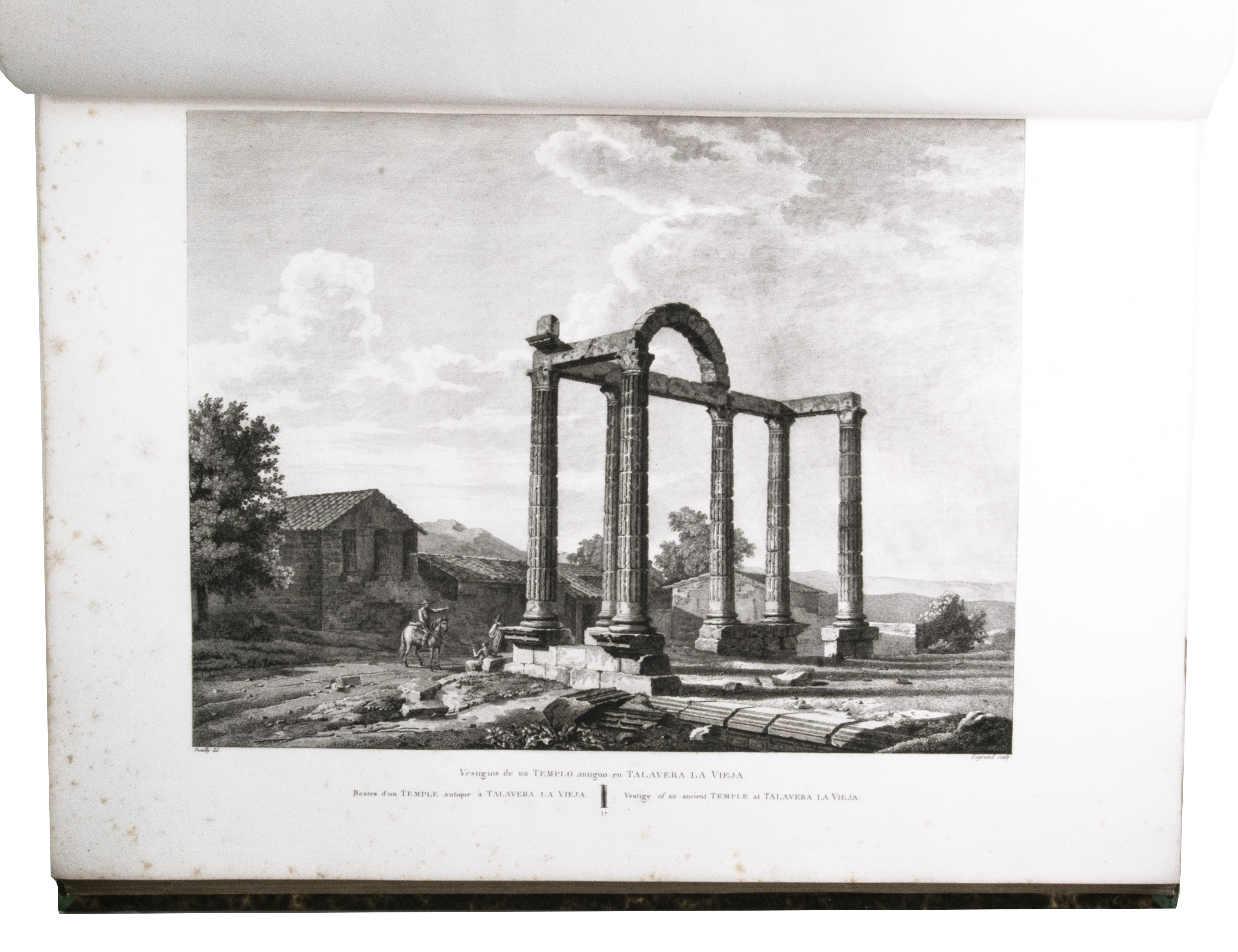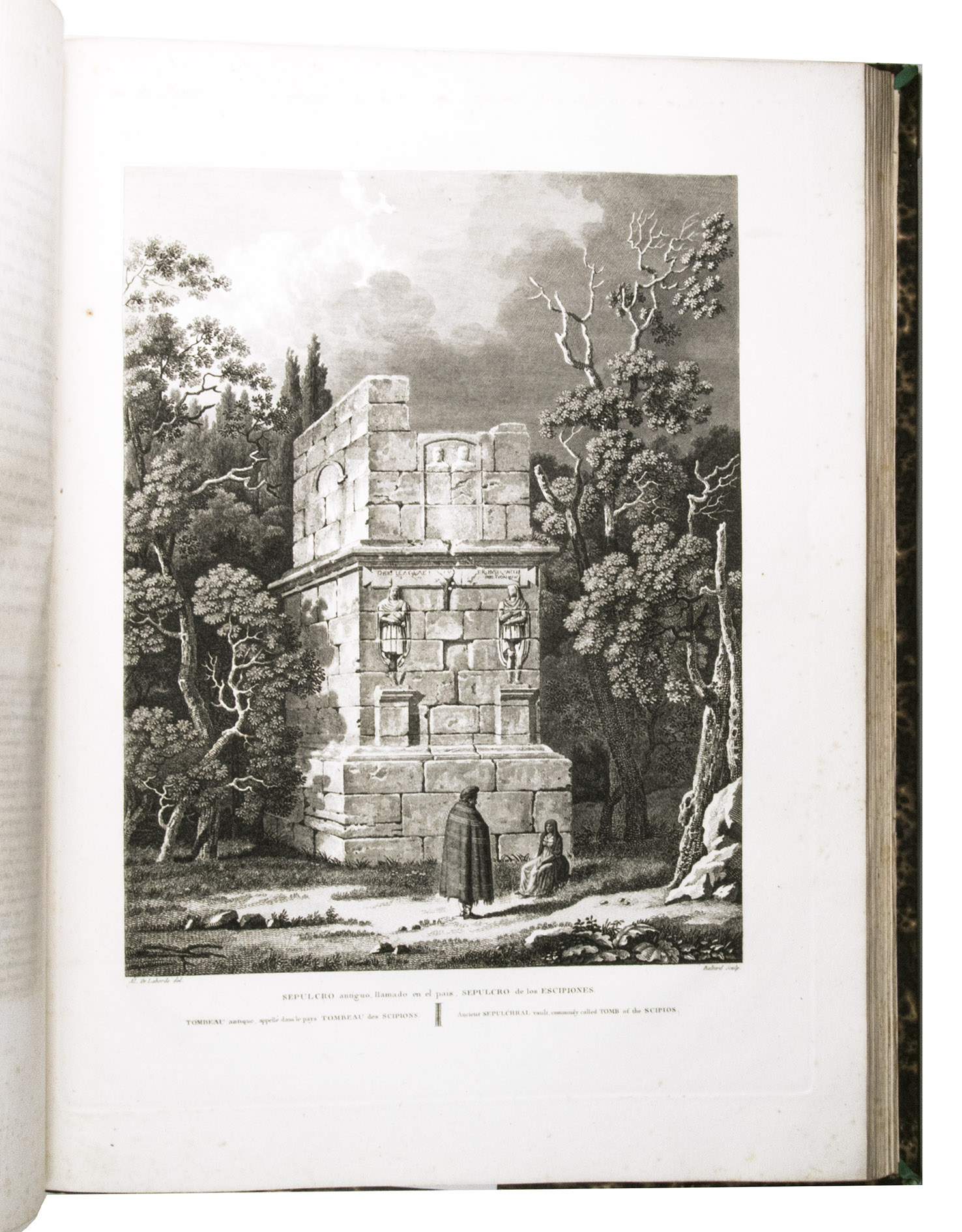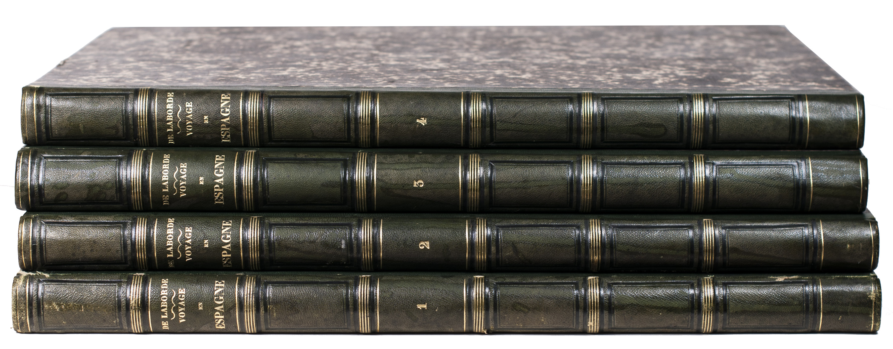First edition of Laborde's splendid 4-volume work on Spain and Portugal, abundantly illustrated with engraved views, by Alexandre Louis Joseph Laborde (1774-1842). The work is divided in four parts, arranged chronologically. Laborde starts describing monuments from the Roman civilization, continues with Arab sites from the Middle Ages, and at the end he pays attention to the present. Every part is preceded by an extensive historical explanation, and the plates themselves are also accompanied by short texts.