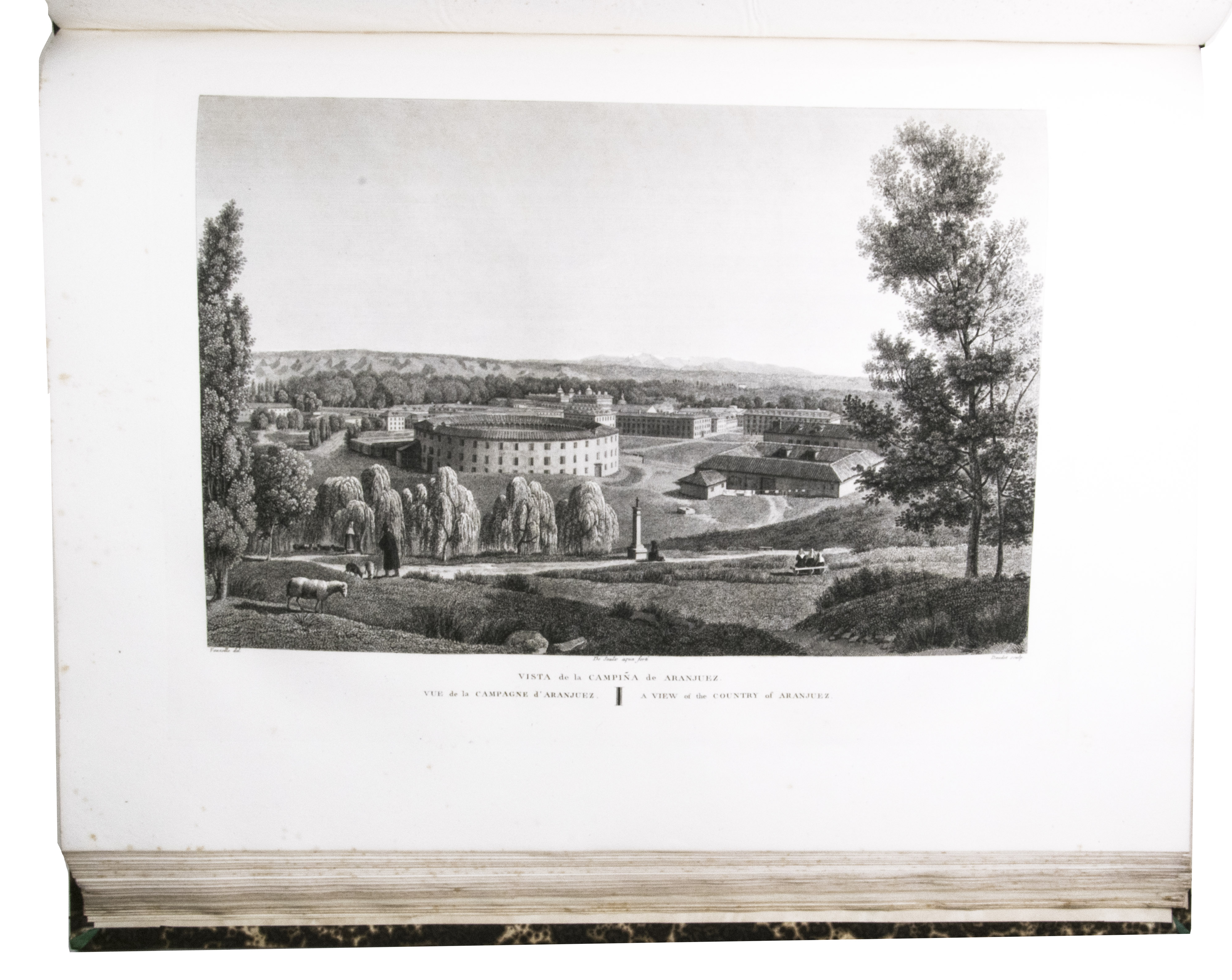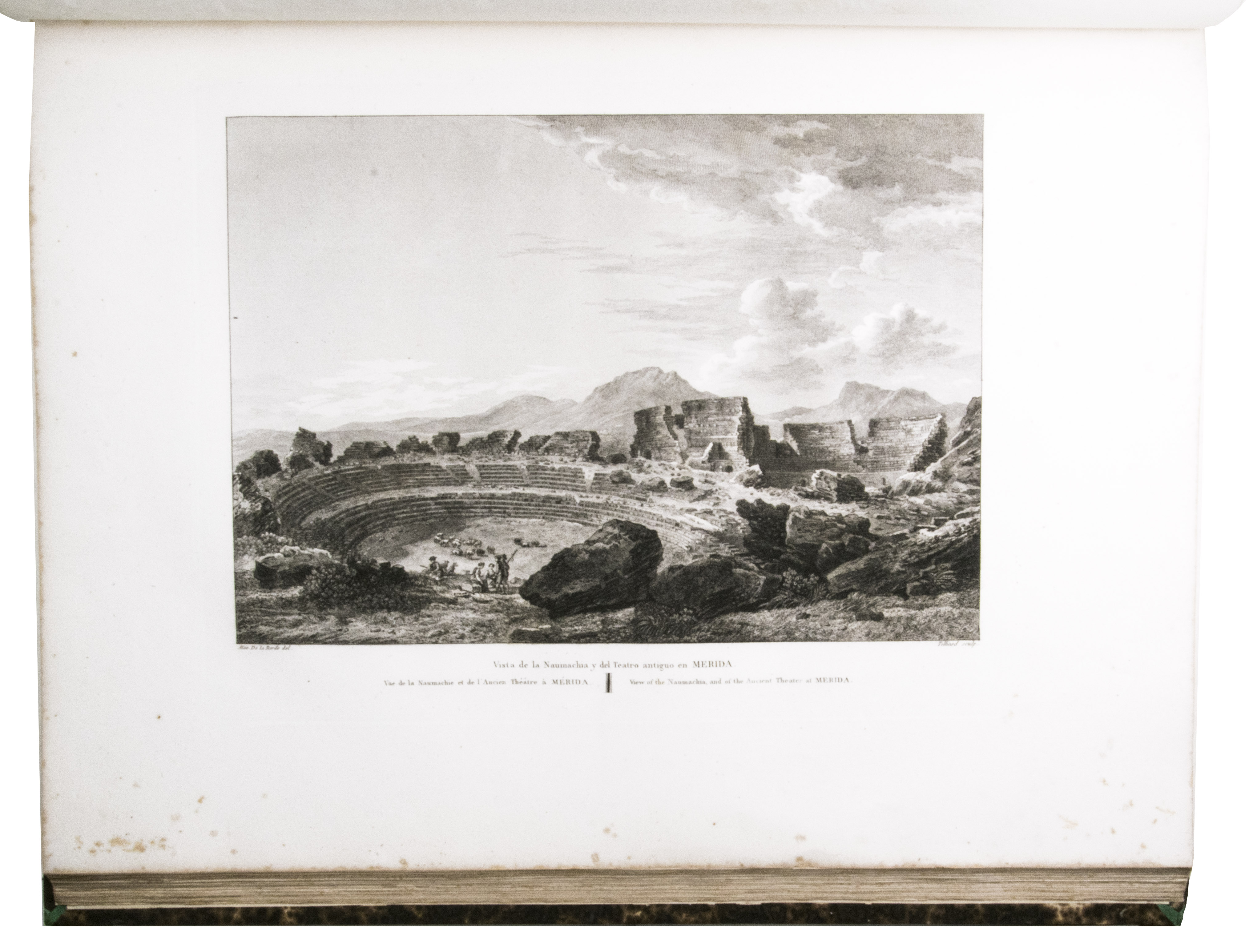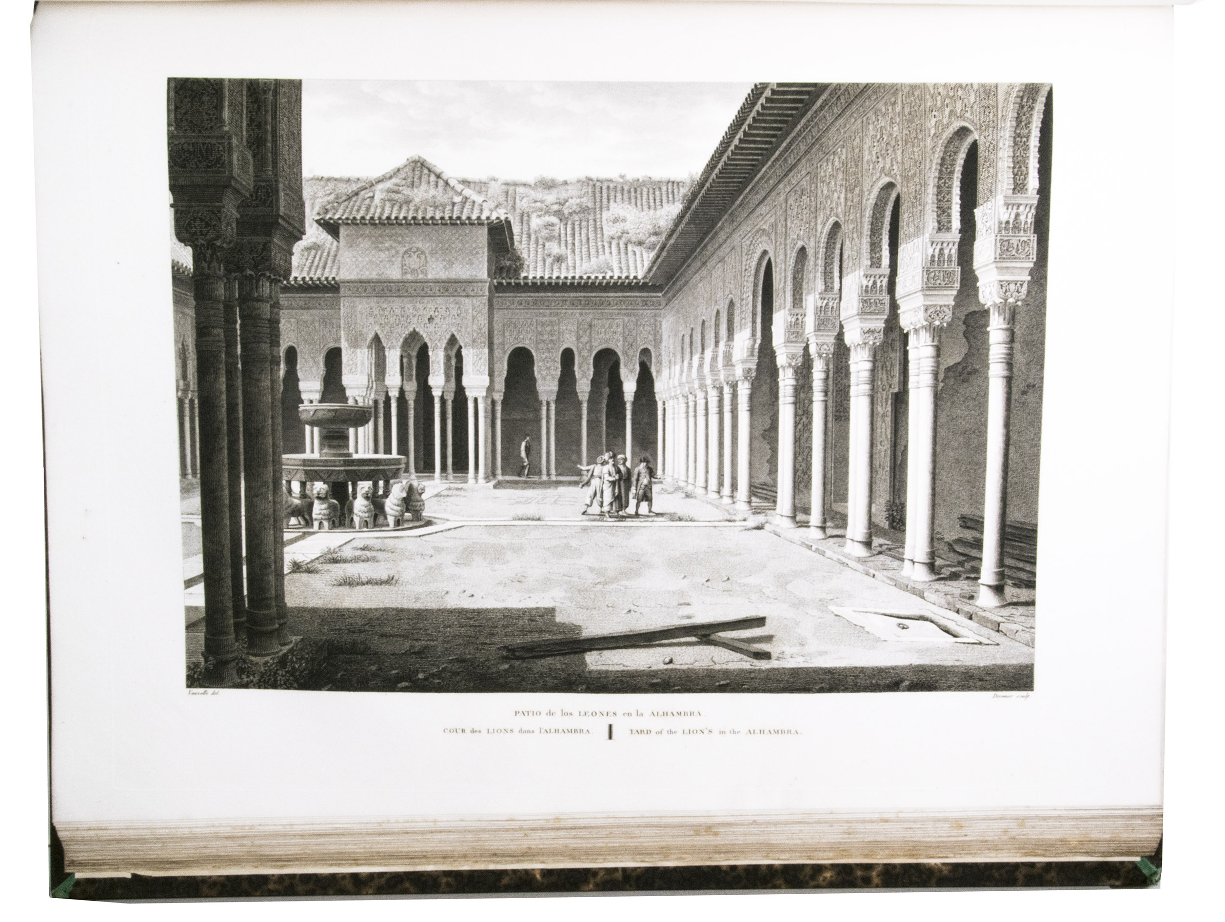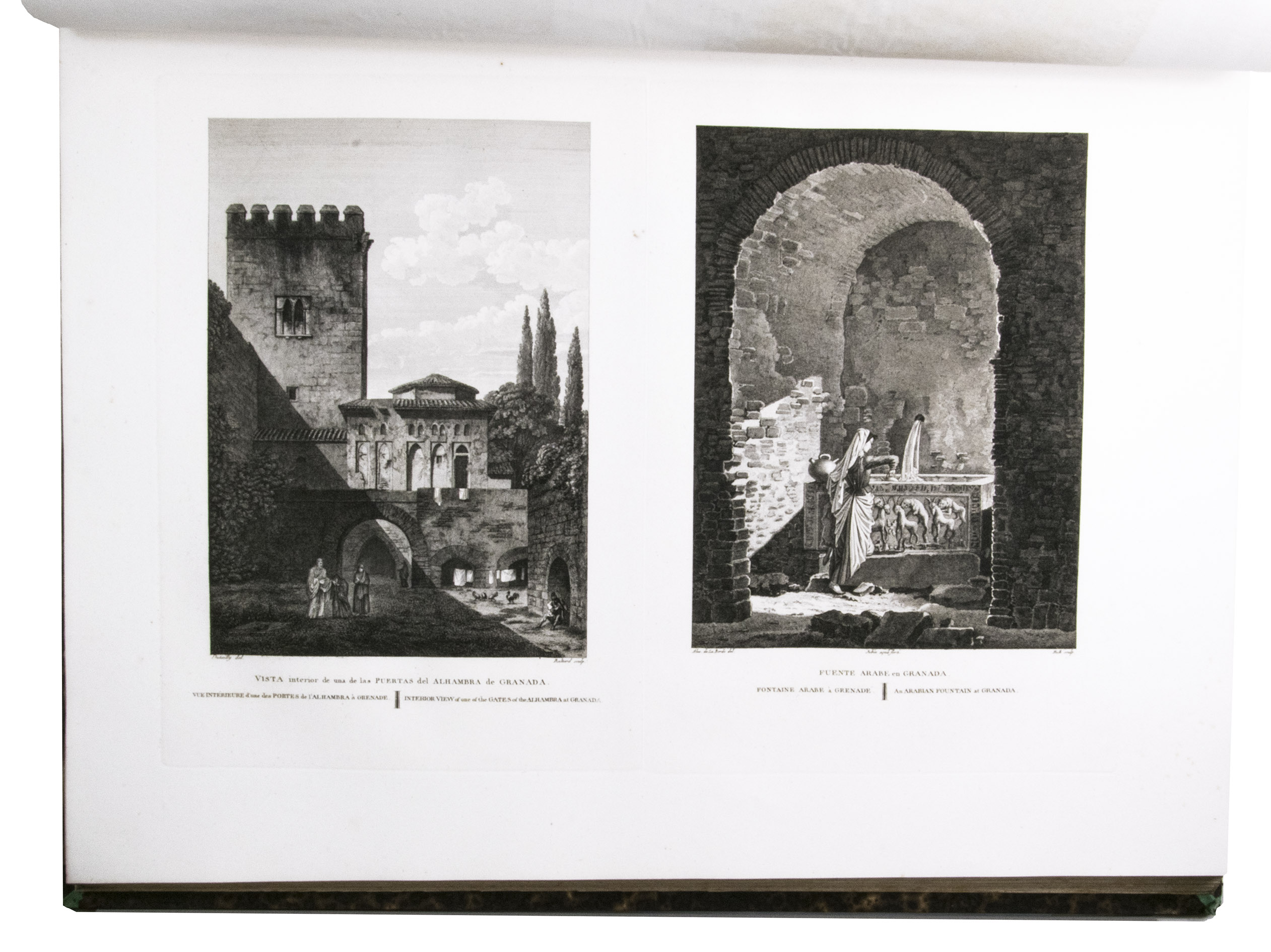 First edition of Laborde's splendid 4-volume work on Spain and Portugal, abundantly illustrated with engraved views, by Alexandre Louis Joseph Laborde (1774-1842). The work is divided in four parts, arranged chronologically. Laborde starts describing monuments from the Roman civilization, continues with Arab sites from the Middle Ages, and at the end he pays attention to the present. Every part is preceded by an extensive historical explanation, and the plates themselves are also accompanied by short texts.