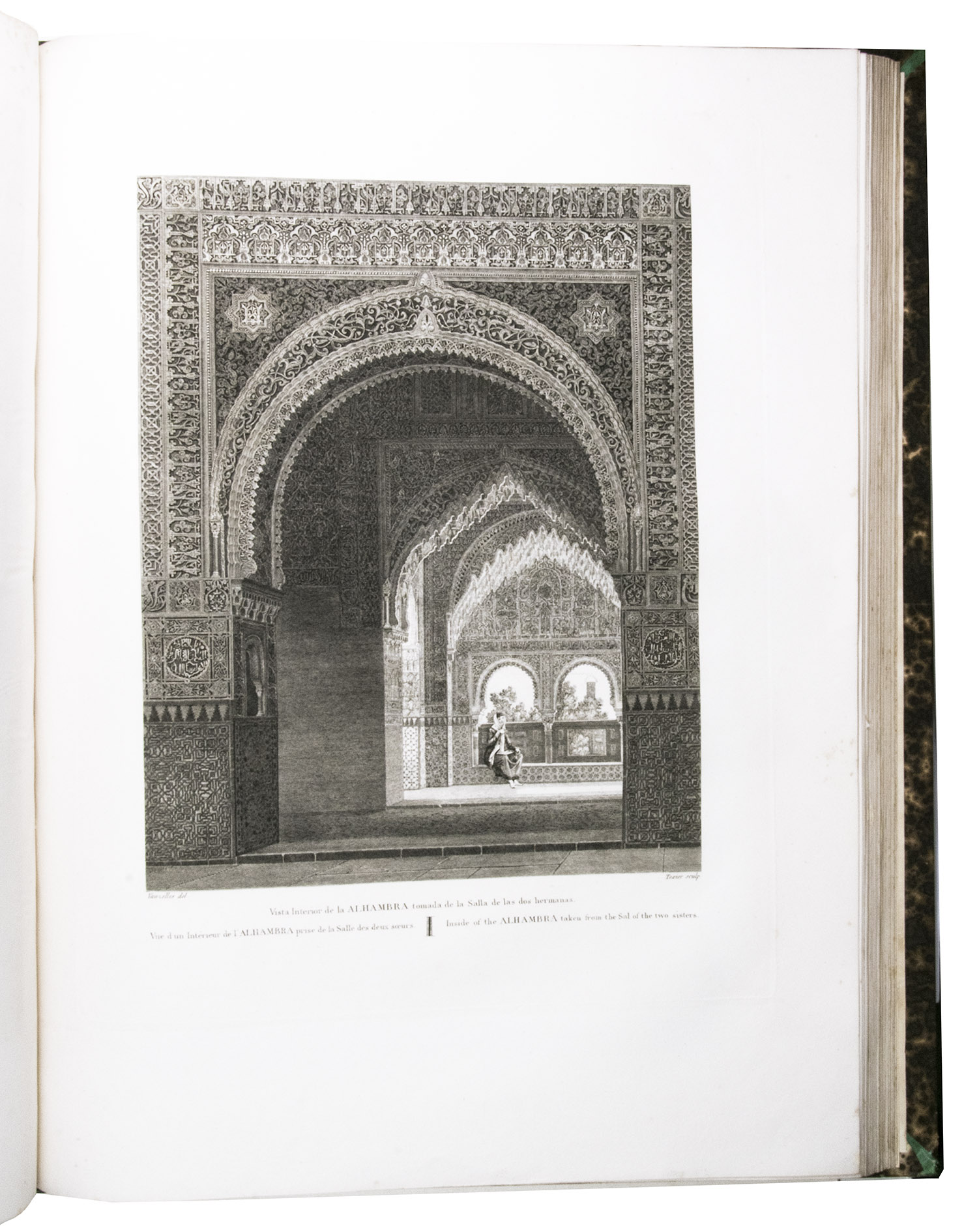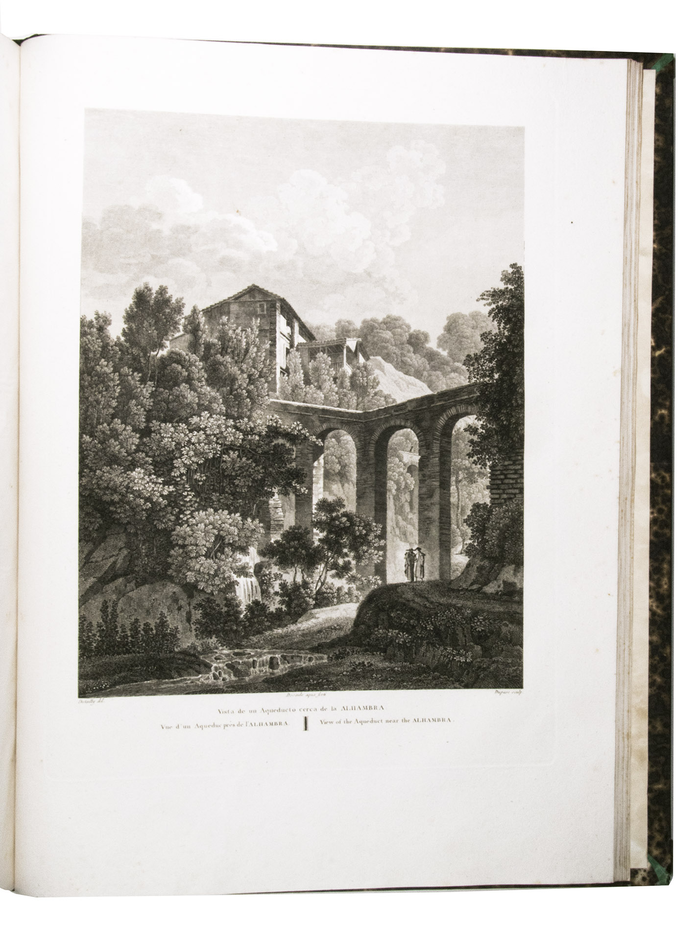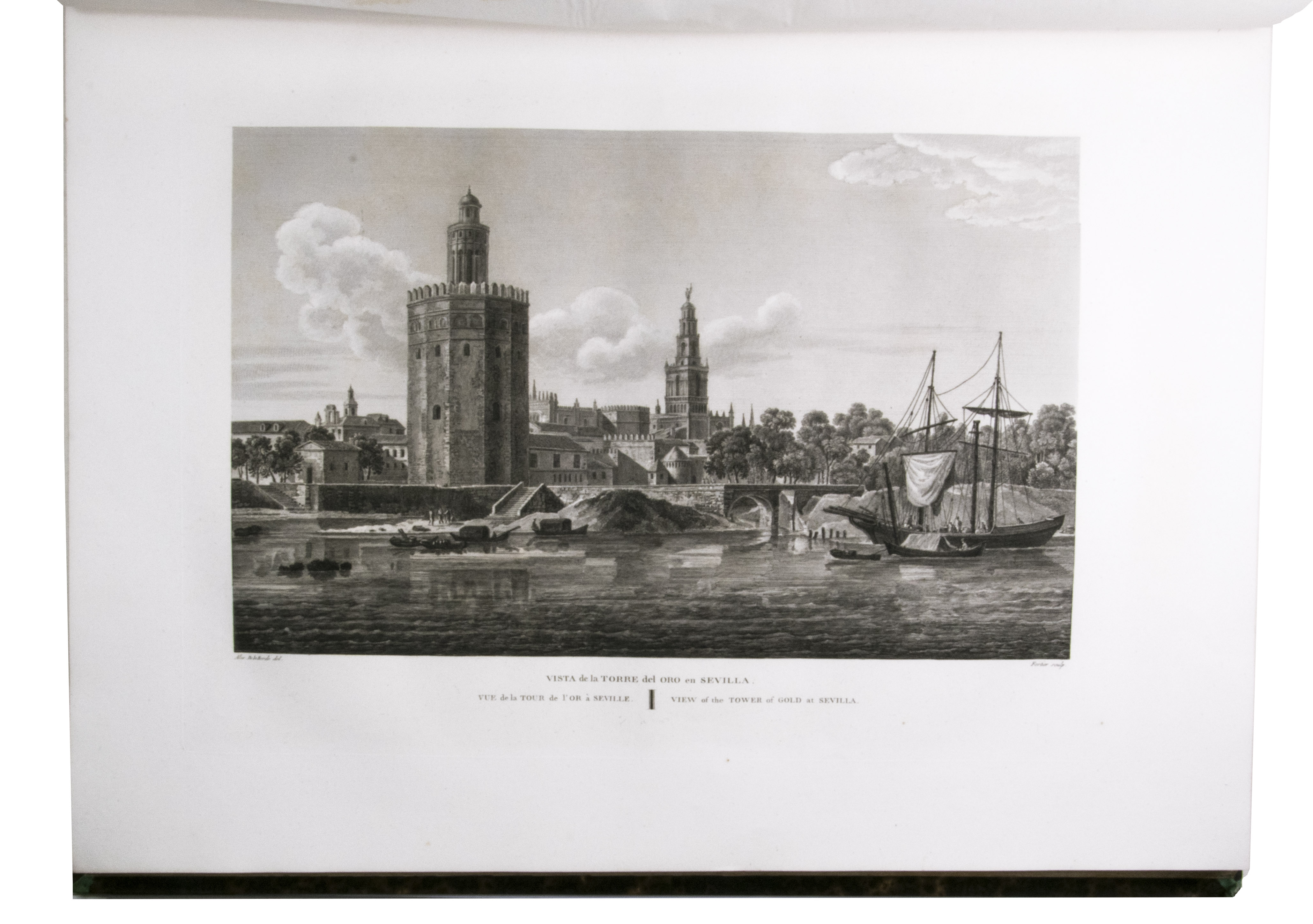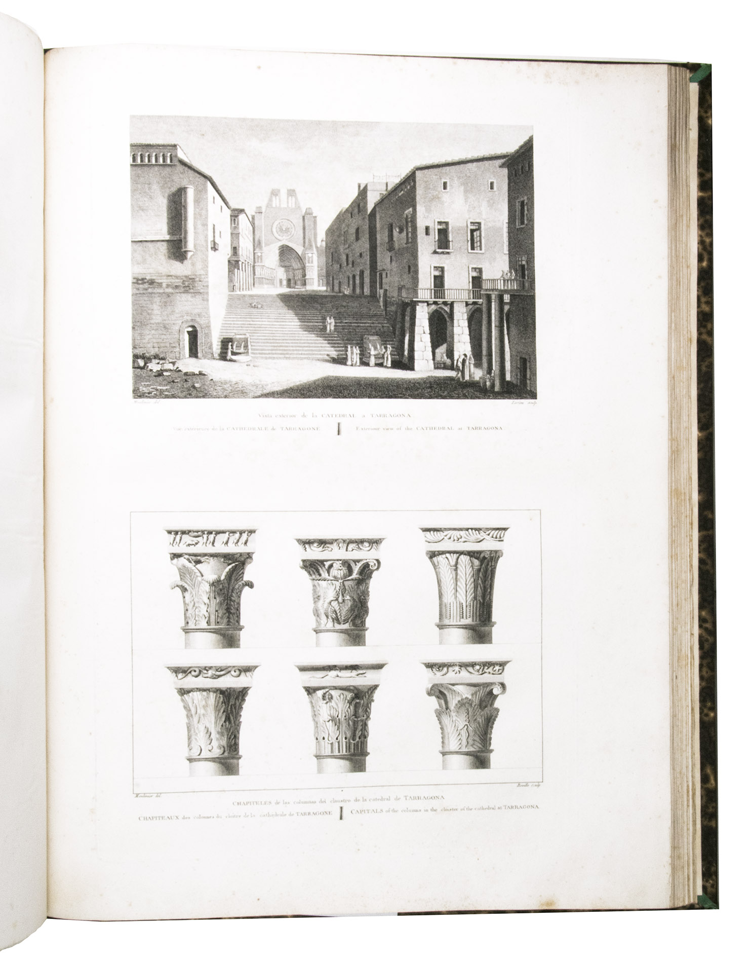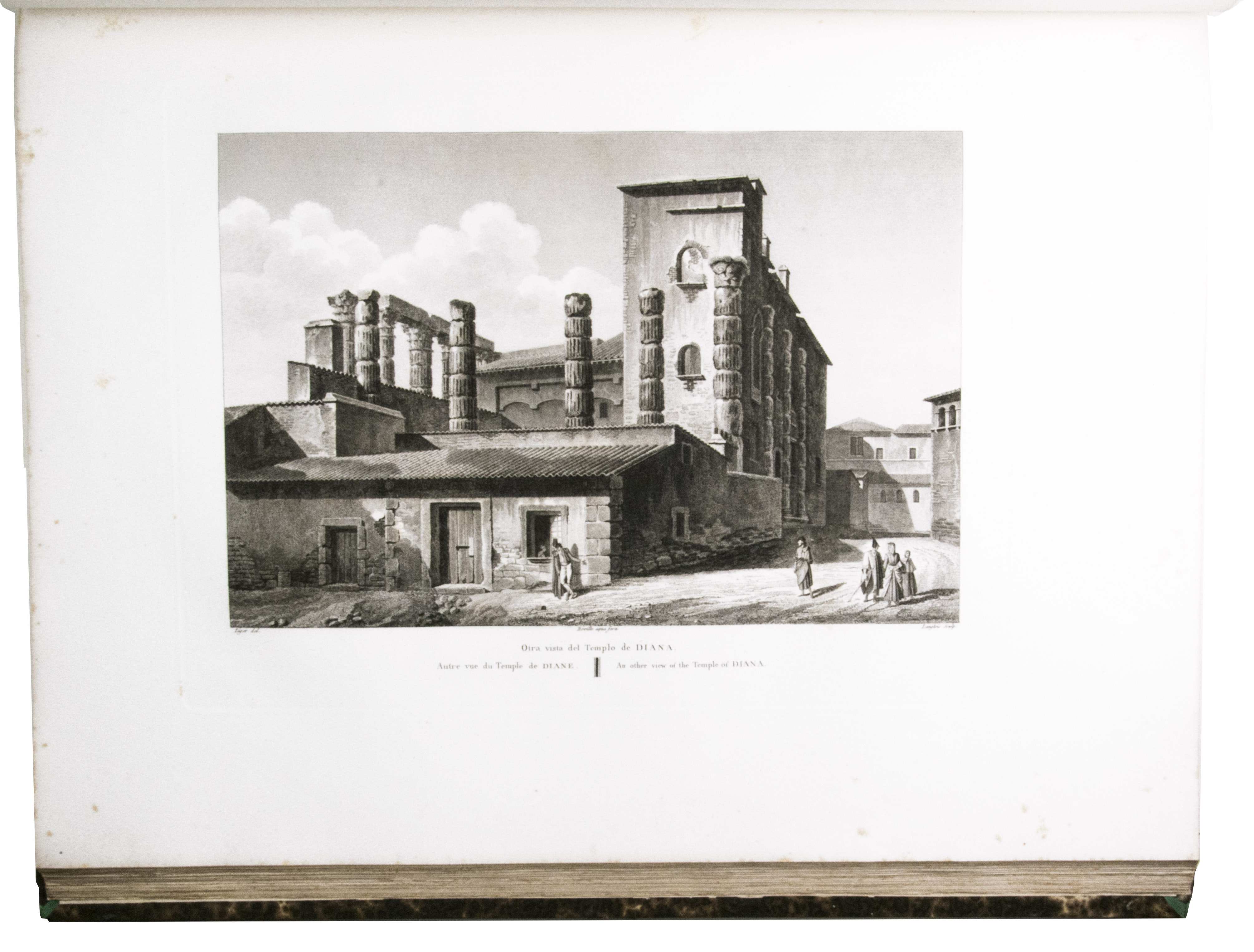 First edition of Laborde's splendid 4-volume work on Spain and Portugal, abundantly illustrated with engraved views, by Alexandre Louis Joseph Laborde (1774-1842). The work is divided in four parts, arranged chronologically. Laborde starts describing monuments from the Roman civilization, continues with Arab sites from the Middle Ages, and at the end he pays attention to the present. Every part is preceded by an extensive historical explanation, and the plates themselves are also accompanied by short texts.