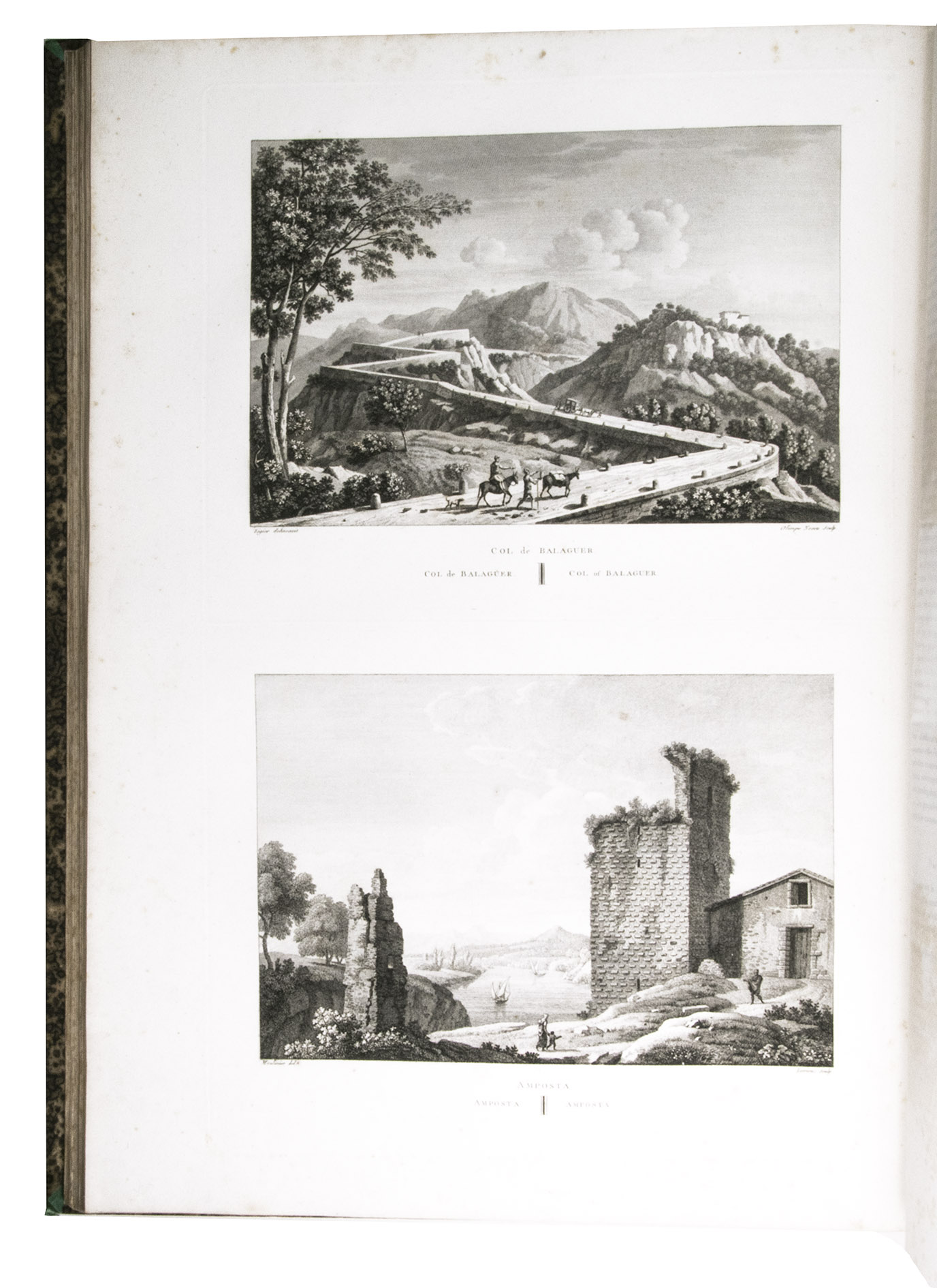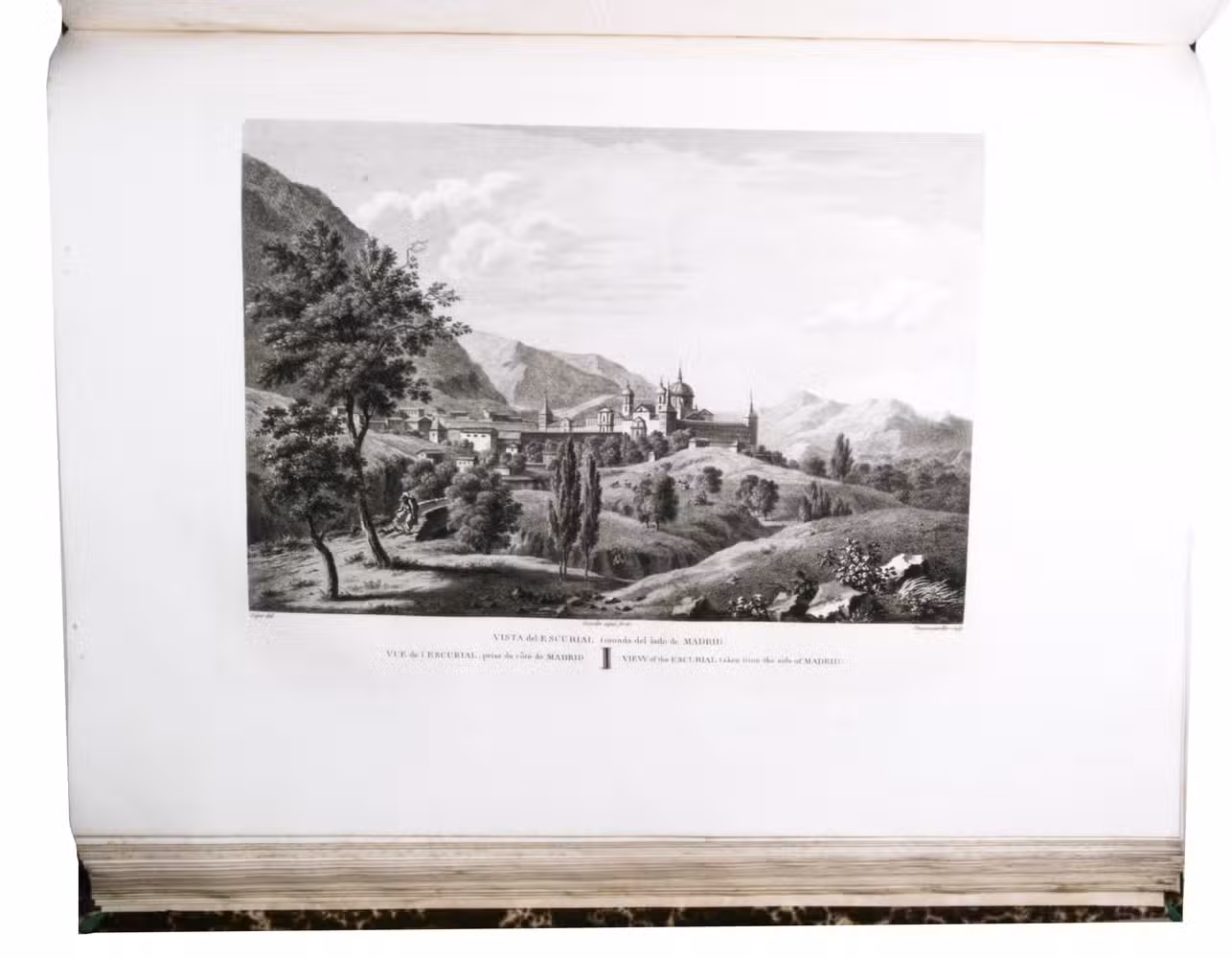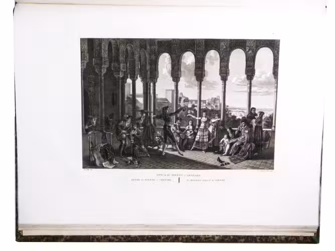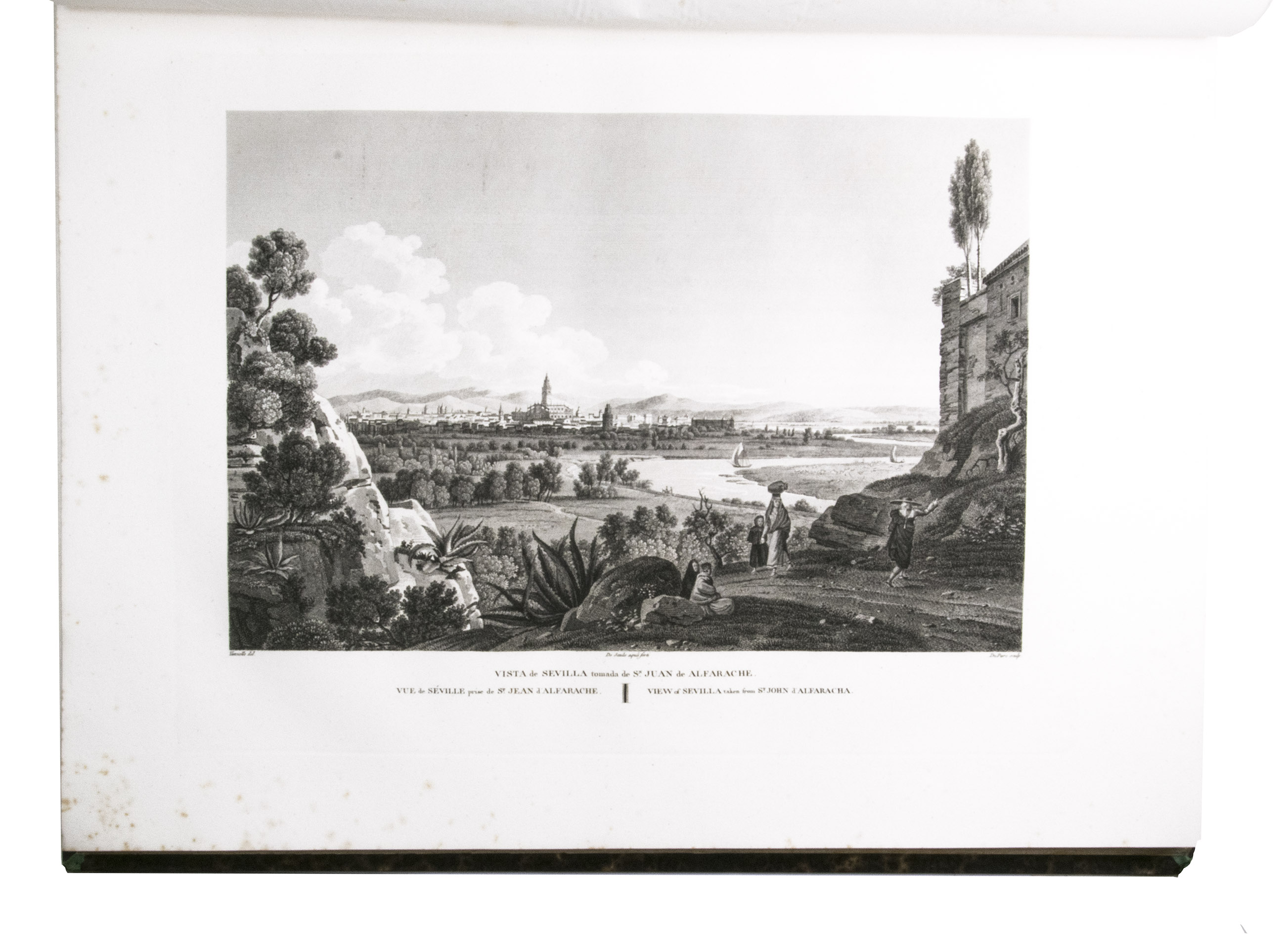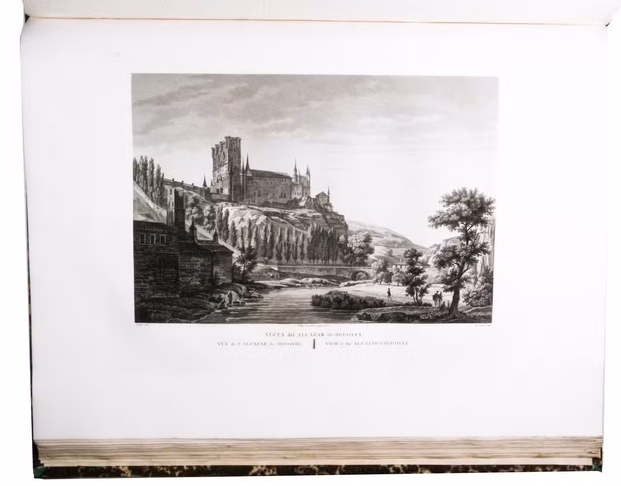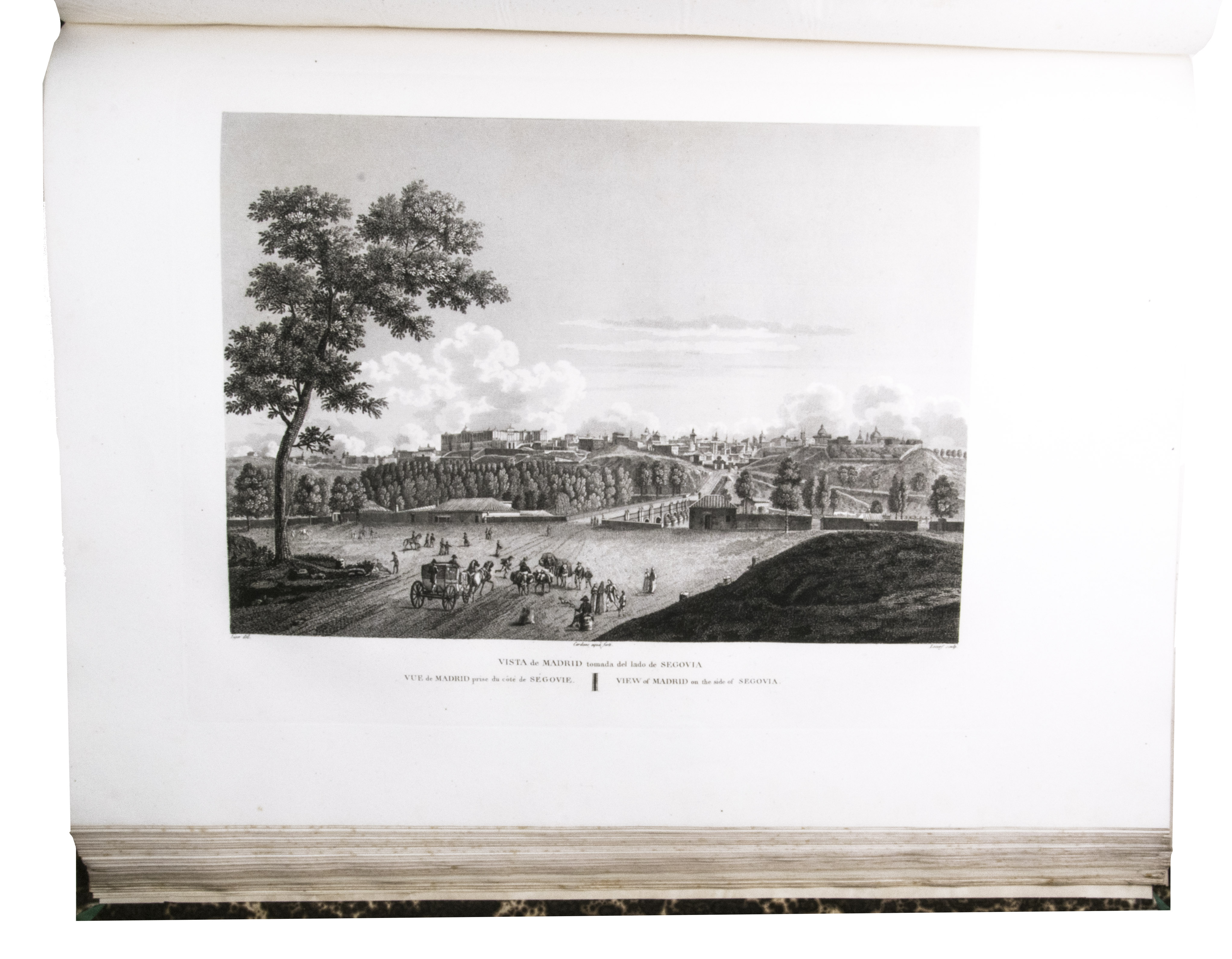 First edition of Laborde's splendid 4-volume work on Spain and Portugal, abundantly illustrated with engraved views, by Alexandre Louis Joseph Laborde (1774-1842). The work is divided in four parts, arranged chronologically. Laborde starts describing monuments from the Roman civilization, continues with Arab sites from the Middle Ages, and at the end he pays attention to the present. Every part is preceded by an extensive historical explanation, and the plates themselves are also accompanied by short texts.
