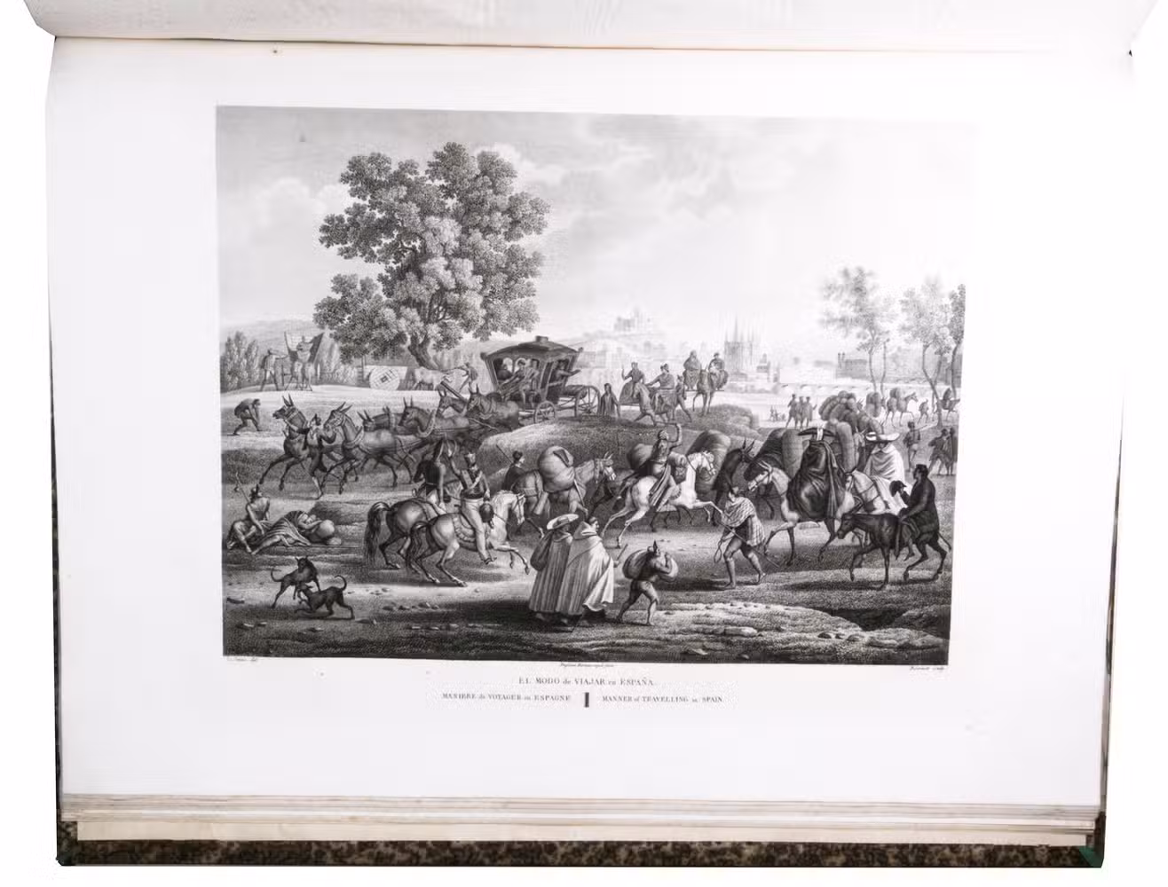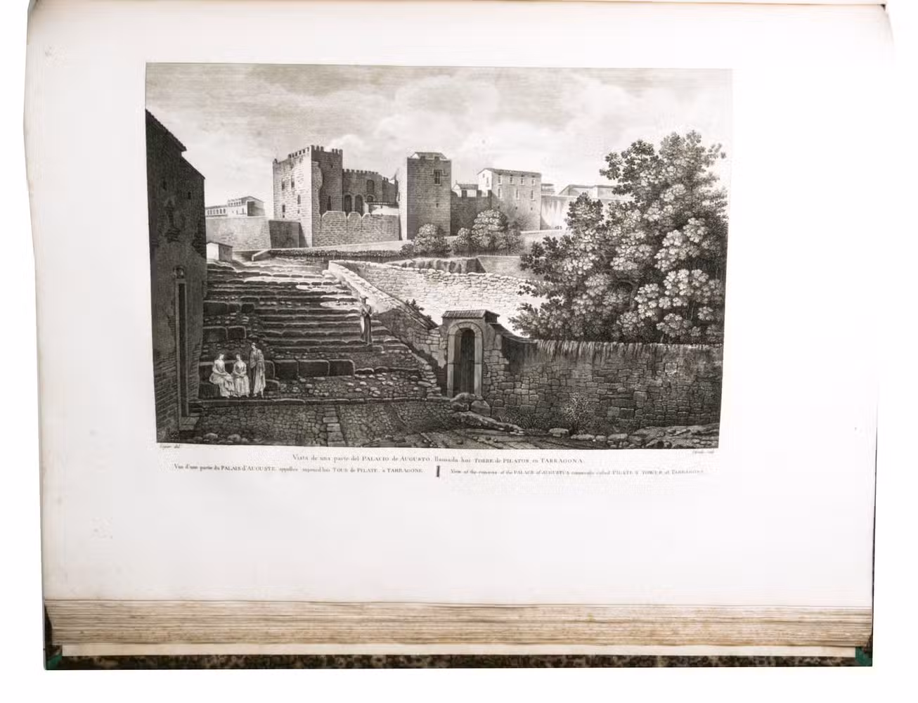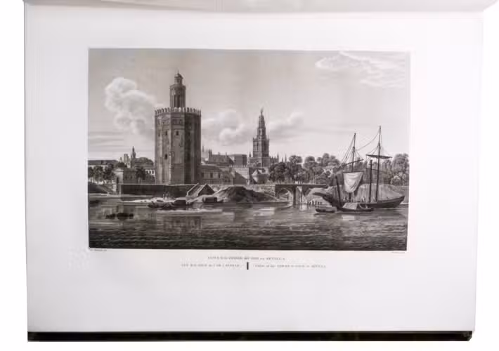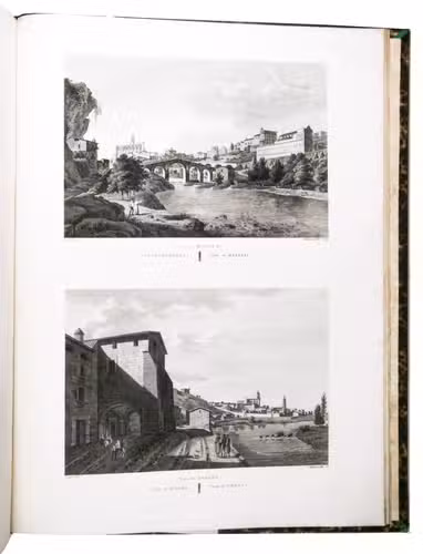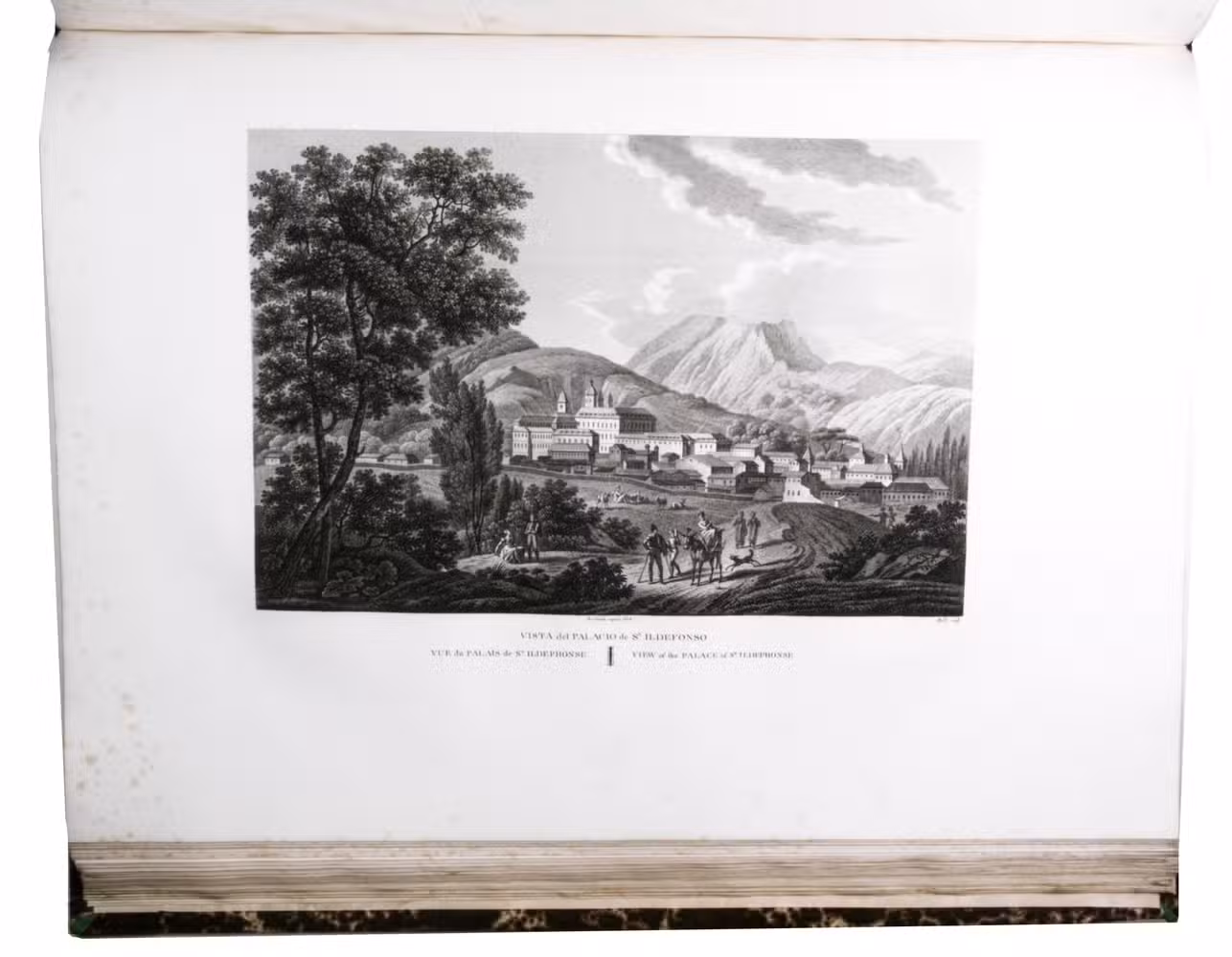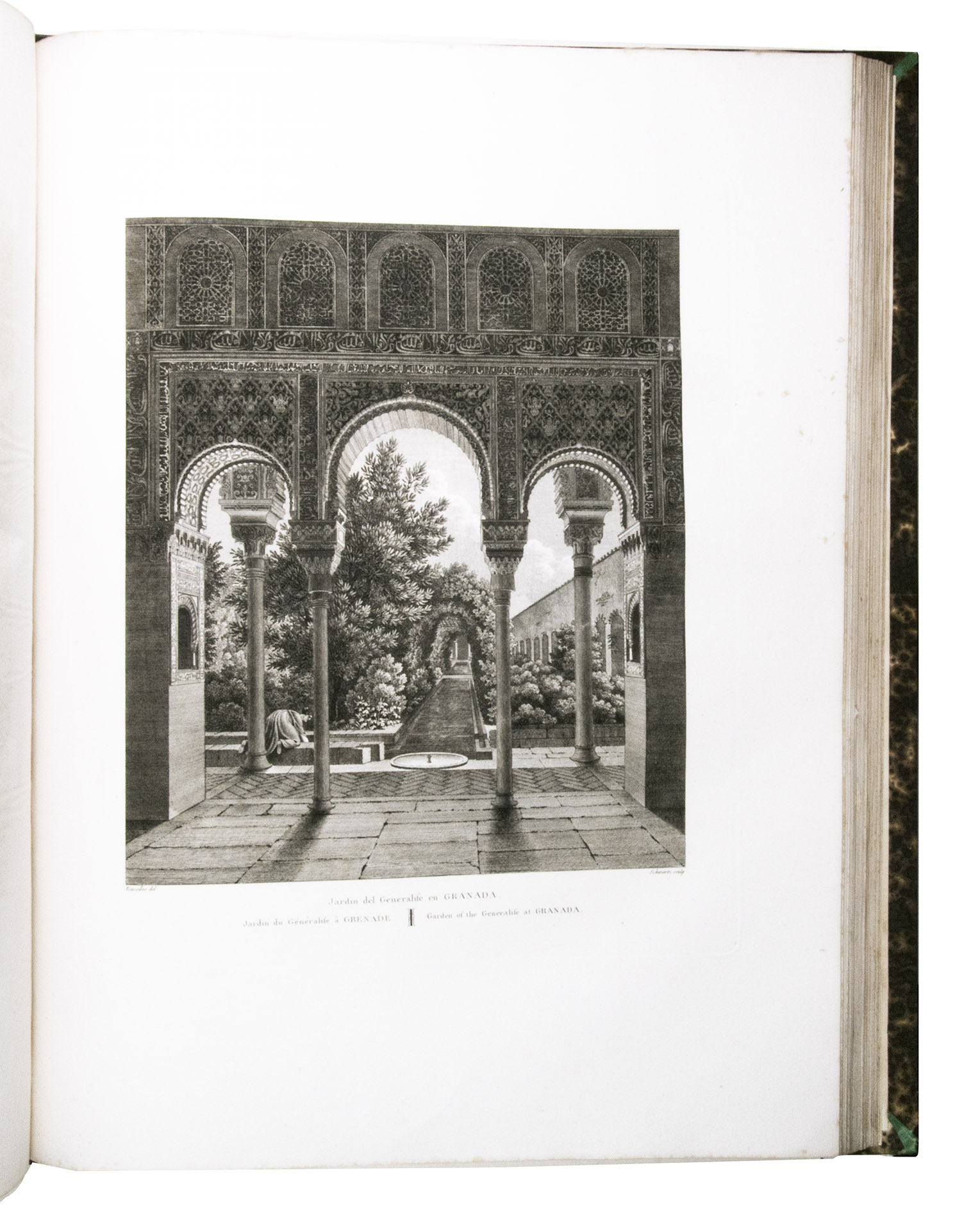 First edition of Laborde's splendid 4-volume work on Spain and Portugal, abundantly illustrated with engraved views, by Alexandre Louis Joseph Laborde (1774-1842). The work is divided in four parts, arranged chronologically. Laborde starts describing monuments from the Roman civilization, continues with Arab sites from the Middle Ages, and at the end he pays attention to the present. Every part is preceded by an extensive historical explanation, and the plates themselves are also accompanied by short texts.