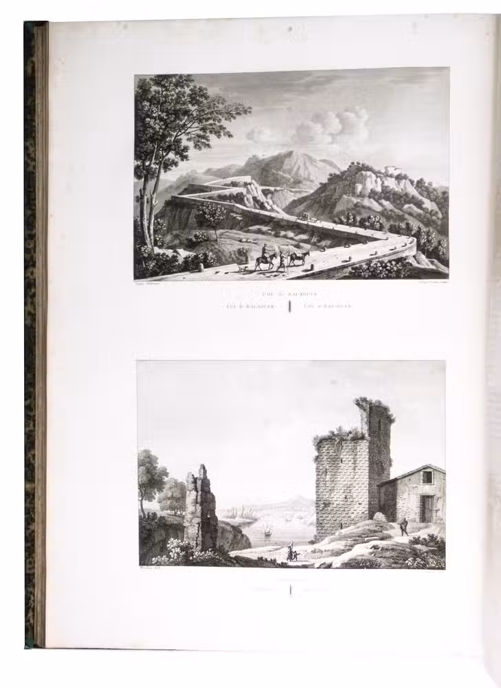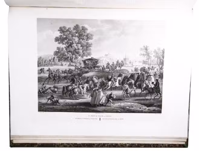 After having served the emperor Joseph II in Vienna, and having distinguished himself in the imperial army, Alexandre Laborde returned to his fatherland and started to develop a taste for the arts. He travelled to the United Kingdom, Holland, Italy and Spain. His travels and his studies earned him a special place in the world of archeology and literature. Especially Spain made a great, wonderful, and mysterious impression on him. Here he found the remains of Roman civilization, and of two peoples and religions, the Arabs and the Spaniards. Moreover, the peninsula was virtually unknown in Europe, and Laborde aspired to do for Spain what Choiseul-Gouffier did for Greece. He was part of Lucien Bonaparte's ambassy in 1800 and 1801, and his intimate relations with the minister provided him the means to achieve his goal. He travelled around the country with several artists, himself drawing what he thought were the most interesting sights. All of this resulted in the publication of Itinéraire de l'Espagne, followed by the present Voyage pittoresque et historique en Espagne.