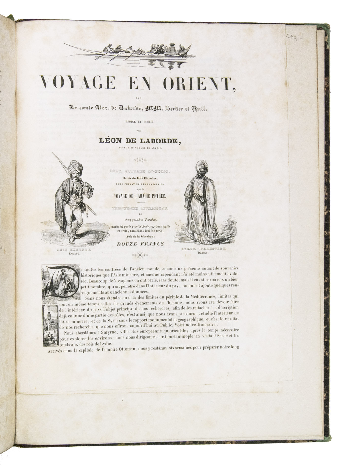 (3) [A richly illustrated advert for two other works by Laborde (Voyage en Orient and Voyage de l'Arabie pétrée)].
