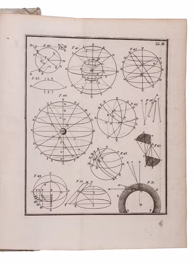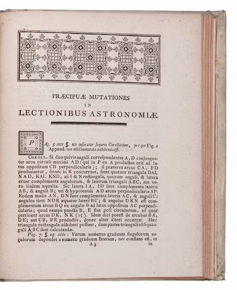 First Latin edition of a popular school book on astronomy, geometry and natural science, translated from the second French edition published at Paris in 1755, together with an Appendix, containing a Latin translation of the corrections and additions of the latest Paris edition of 1761.