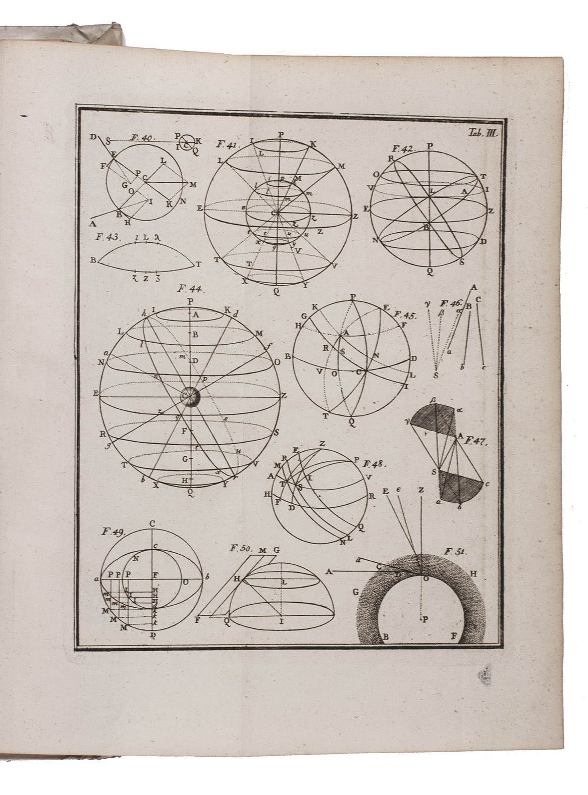 Nicolas Louis de La Caille (1713-1762), was a famous French astronomer and mathematician, professor at the College Mazarin. The present work, first published at Paris in 1741, contains his lectures to pupils at the College, used in Schefer's Latin translation by the Latin Schools in Vienna and Prague. It covers applied mathematics, cosmography, map making, horology, perspective, surveying, etc. With 10 folding engraved plates with arithmetical exercises and tables in text and geometrical and perspectival figures and illustrations.