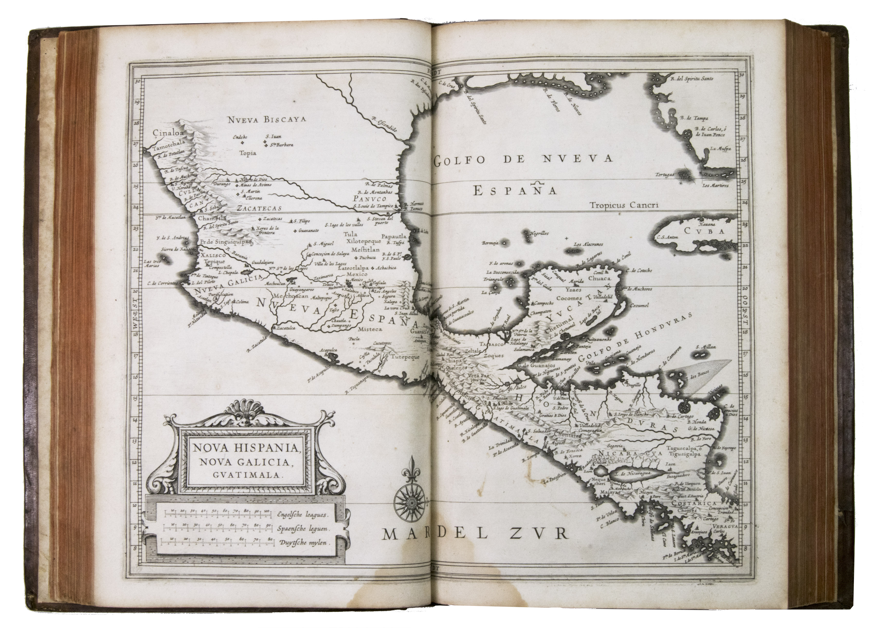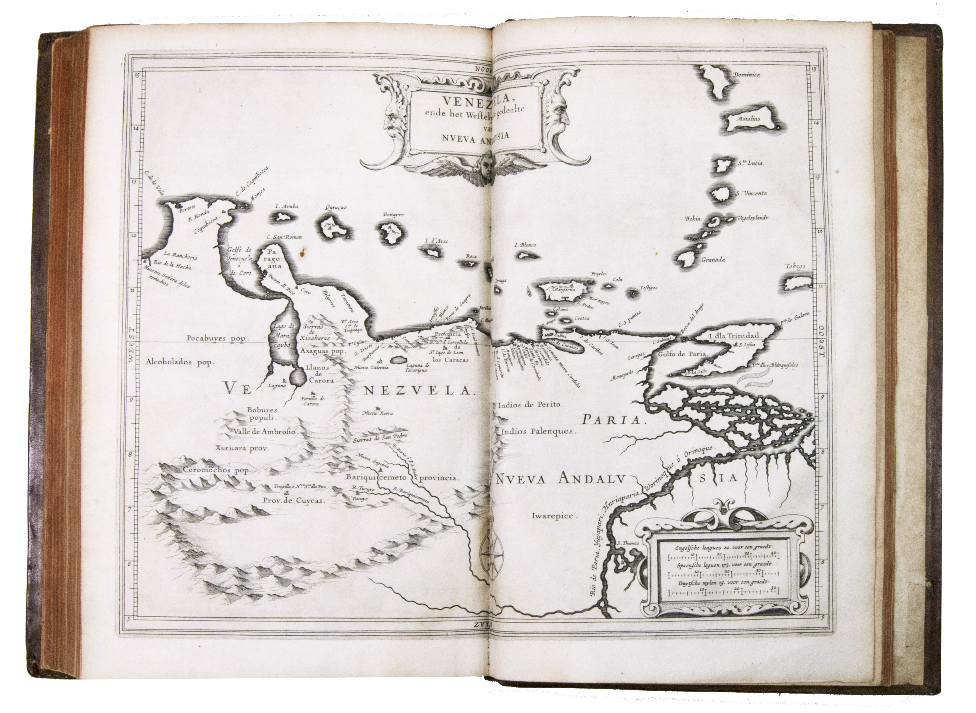 First edition of a 17th-century standard work on North and South America, including the West Indies, with 10 maps covering the whole of Mexico, the West Indies, and Central & South America. De Laets book remains an important source for the New World in the 16th and early 17th centuries, and covers its discovery, geography, topography, natural history, ethnology, and linguistics in 15 books. One book covers the West Indies, 3 the modern United States & Canada, 3 Mexico and Central America, and 8 South America. Included are 2 chapters devoted primarily to Brazil, 1 to Venezuela, and 1 to Guatamala.