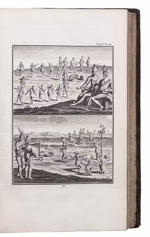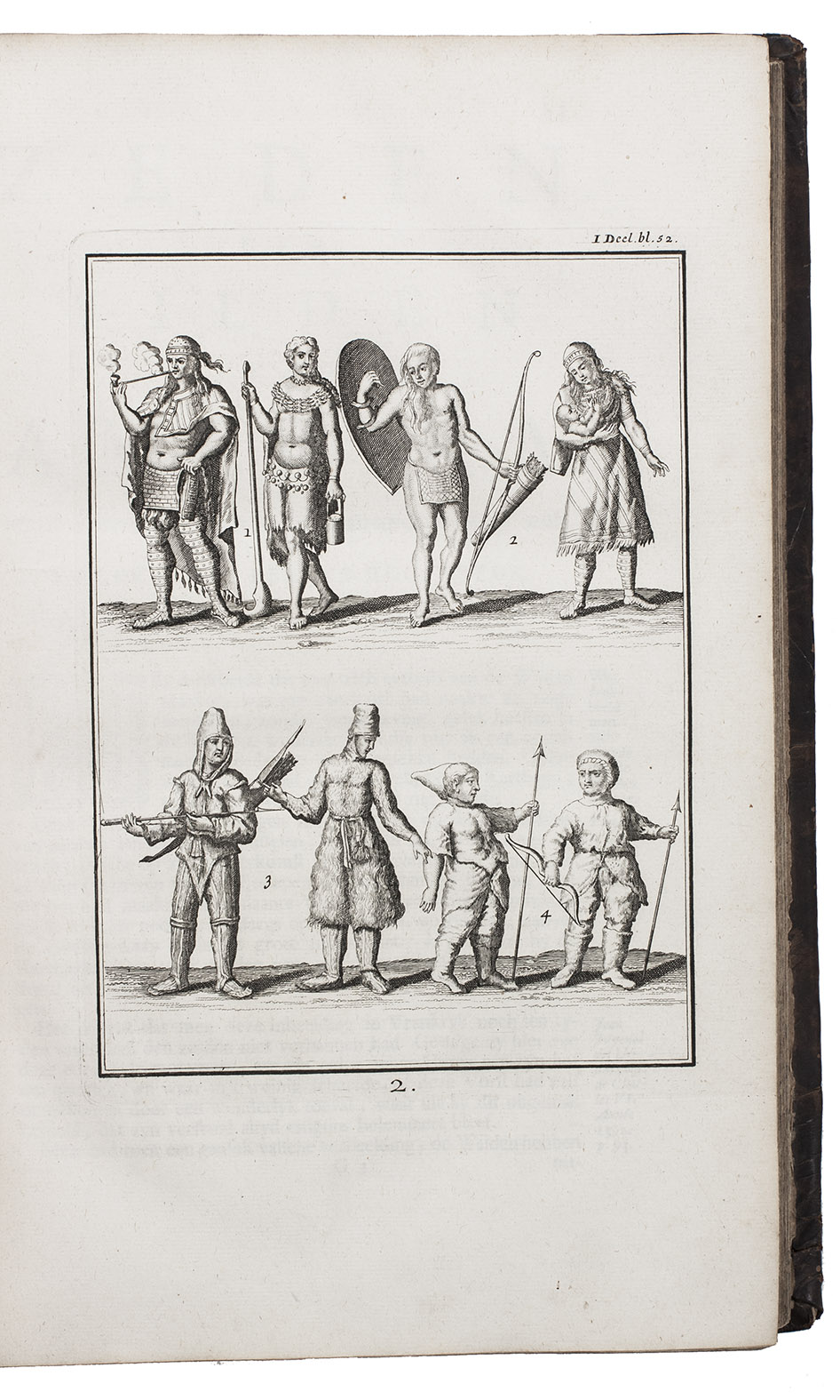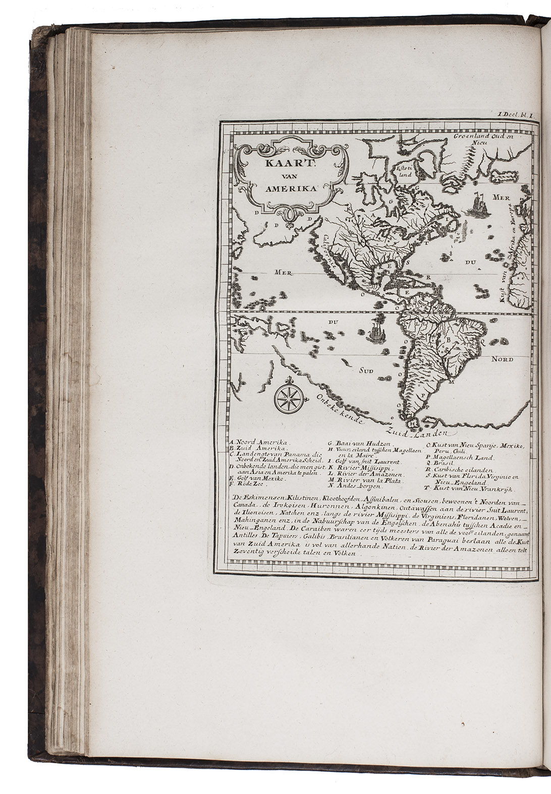 The Hague, Gerard vander Poel, 1731. 2 volumes bound as 1. Folio. With engraved frontispiece, engraved map of North and South America and 41 engraved plates. Contemporary calf, richly gold-tooled spine. [6], 36, [18], 300; [4], 301-555 [= 560] pp.