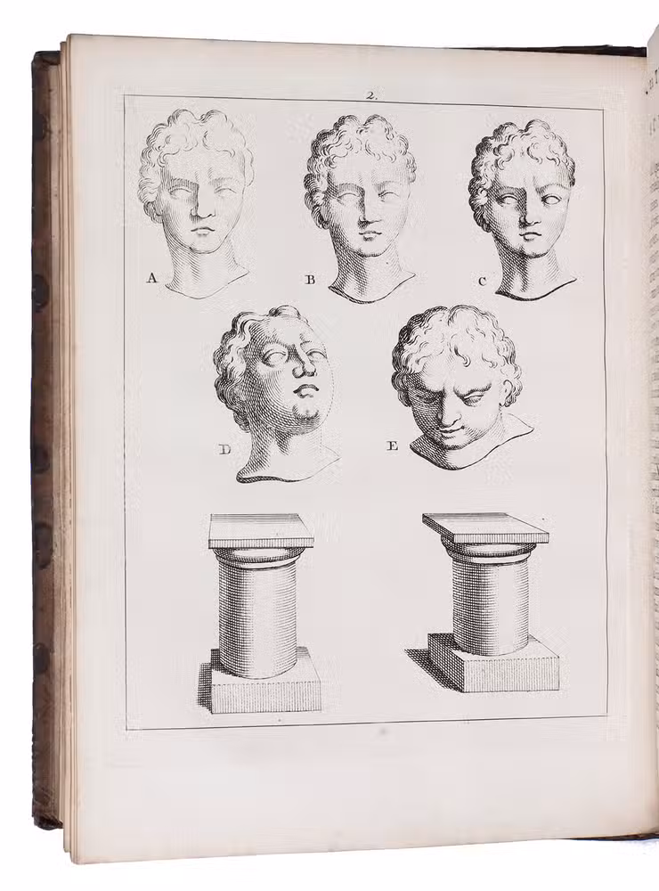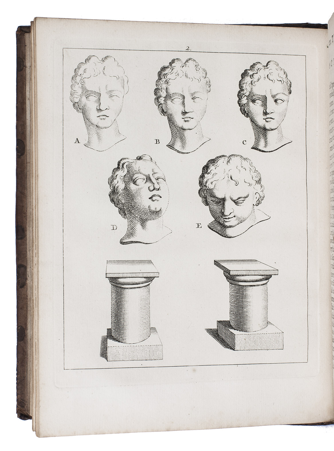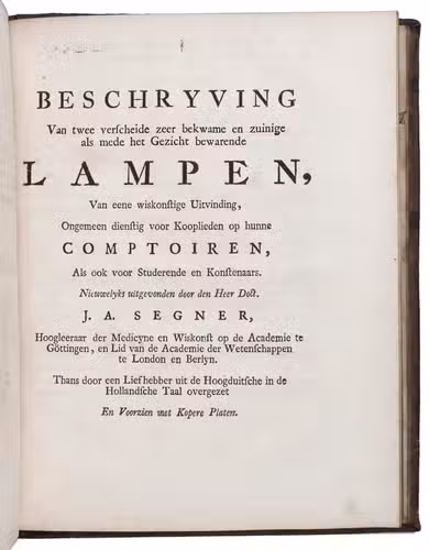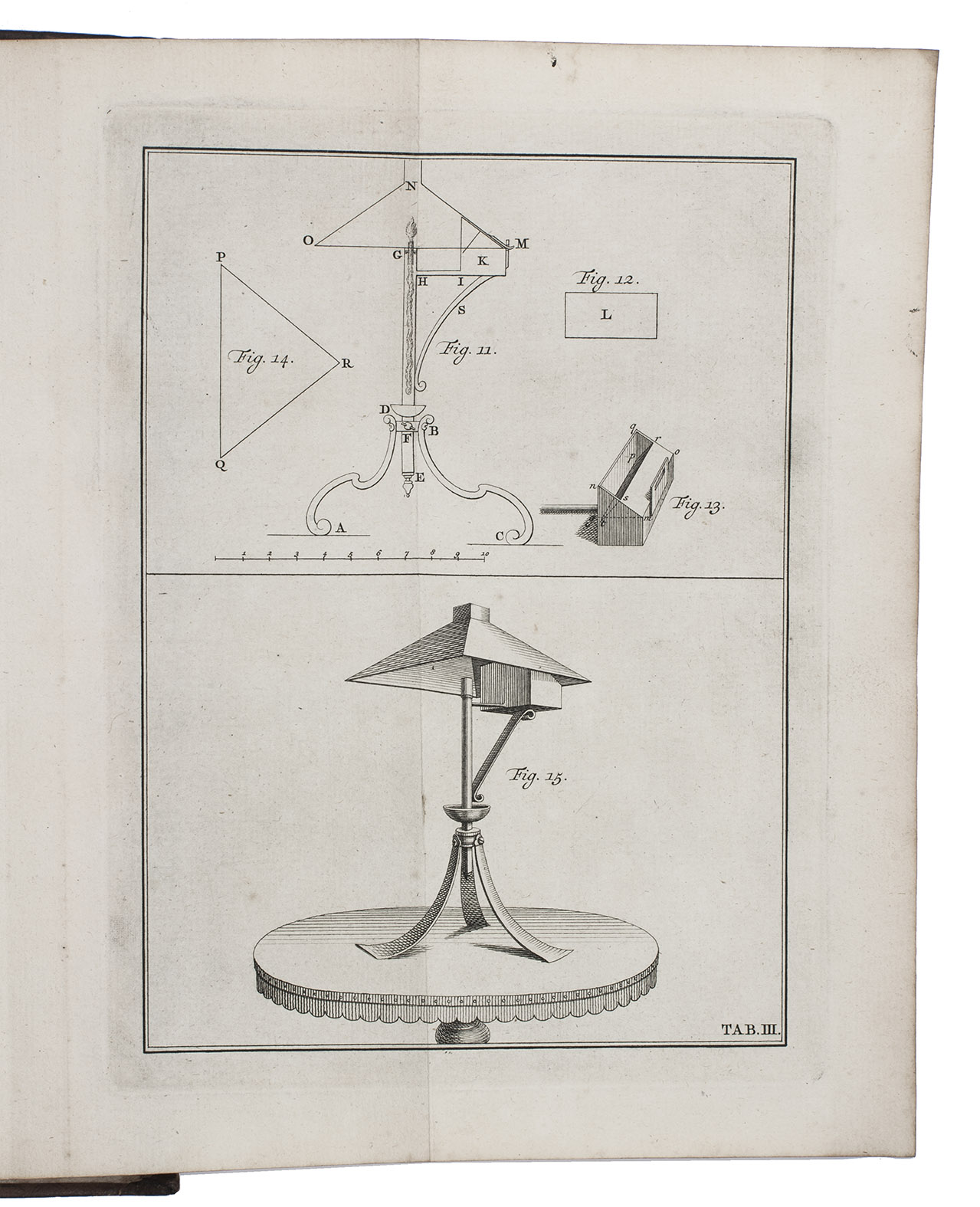 Second edition of a popular practical manual teaching the art of drawing by the famous Dutch painter Gerard de Lairesse (1640-1711). The book is divided into two parts, the first part teaching young children in 12 lessons the principles of drawing based on geometry, and in the second part a more advanced course is given in 10 so-called "propositions" for professional art students, including a detailed plan for the installation of an Art Academy. Gerard de Lairesse, sometimes called the Dutch Poussin, devoted himself to teaching after he became blind in 1690. Being a classicist, his theories were mainly based on Junius's De pictura Veterum, and on Charles Dufresnoy's De arte graphica, but the practical side of his teaching, based on his own lifelong experience, gives his text books their special interest and importance.The treatise by Segner teaches how to construct lamps which were economic and efficient and also spared the artist's eye-sight. The plates extensively show how to construct such lamps as well as their oil-reservoirs.