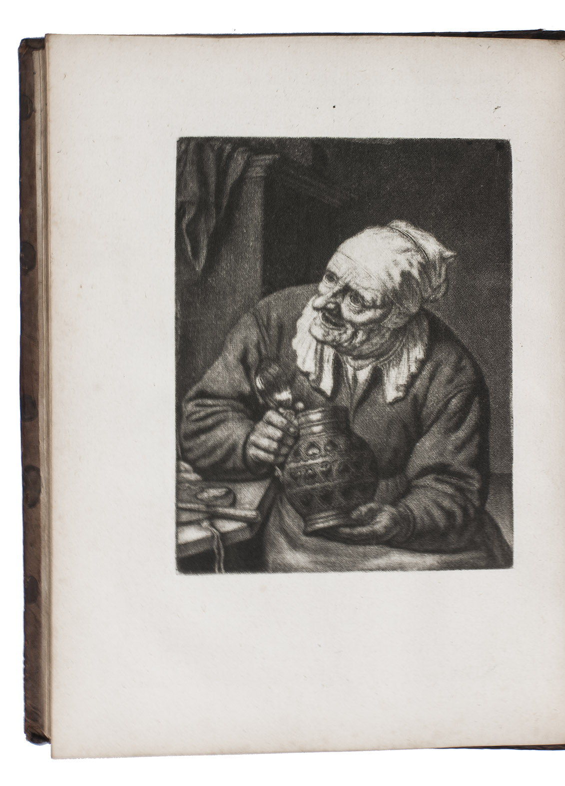 Amsterdam, Gerrit Tielenburg, 1766. 4to. With a engraved illustration on title-page, 8 engraved plates (including one mezzotint) and 6 engravings in text, mostly after designs by the author, and ad 2 with 3 folding engraved plates. Contemporary richly gold-tooled calf, gilt edges. [16], 115, [1 blank]; [4], 16 pp.